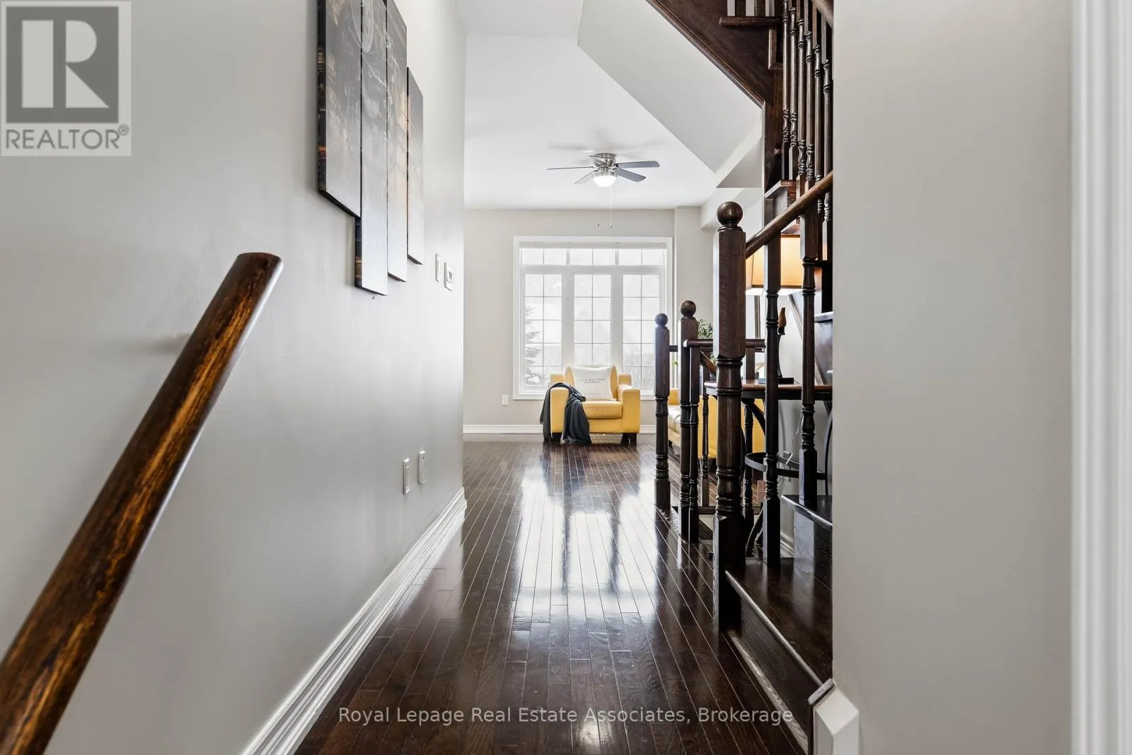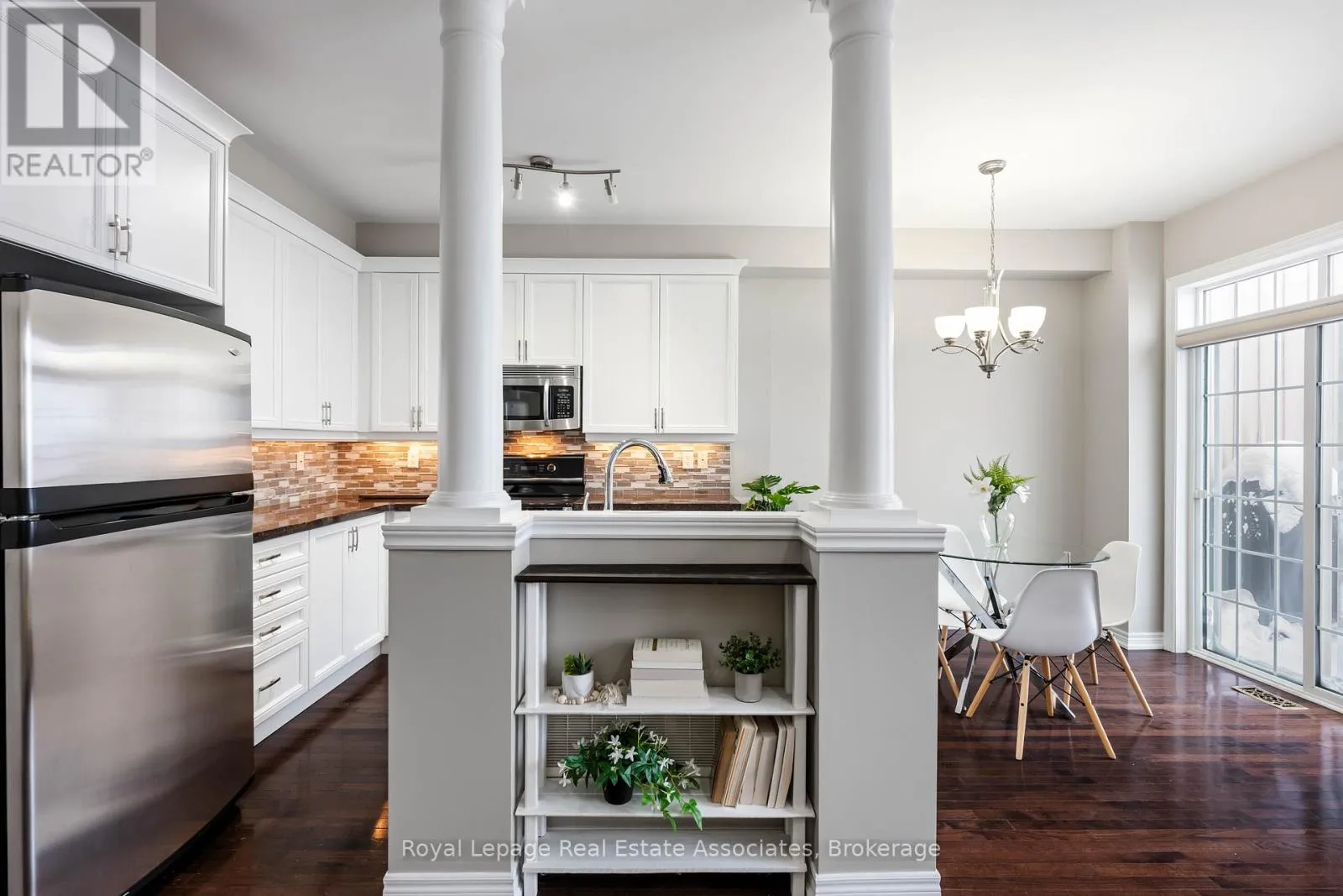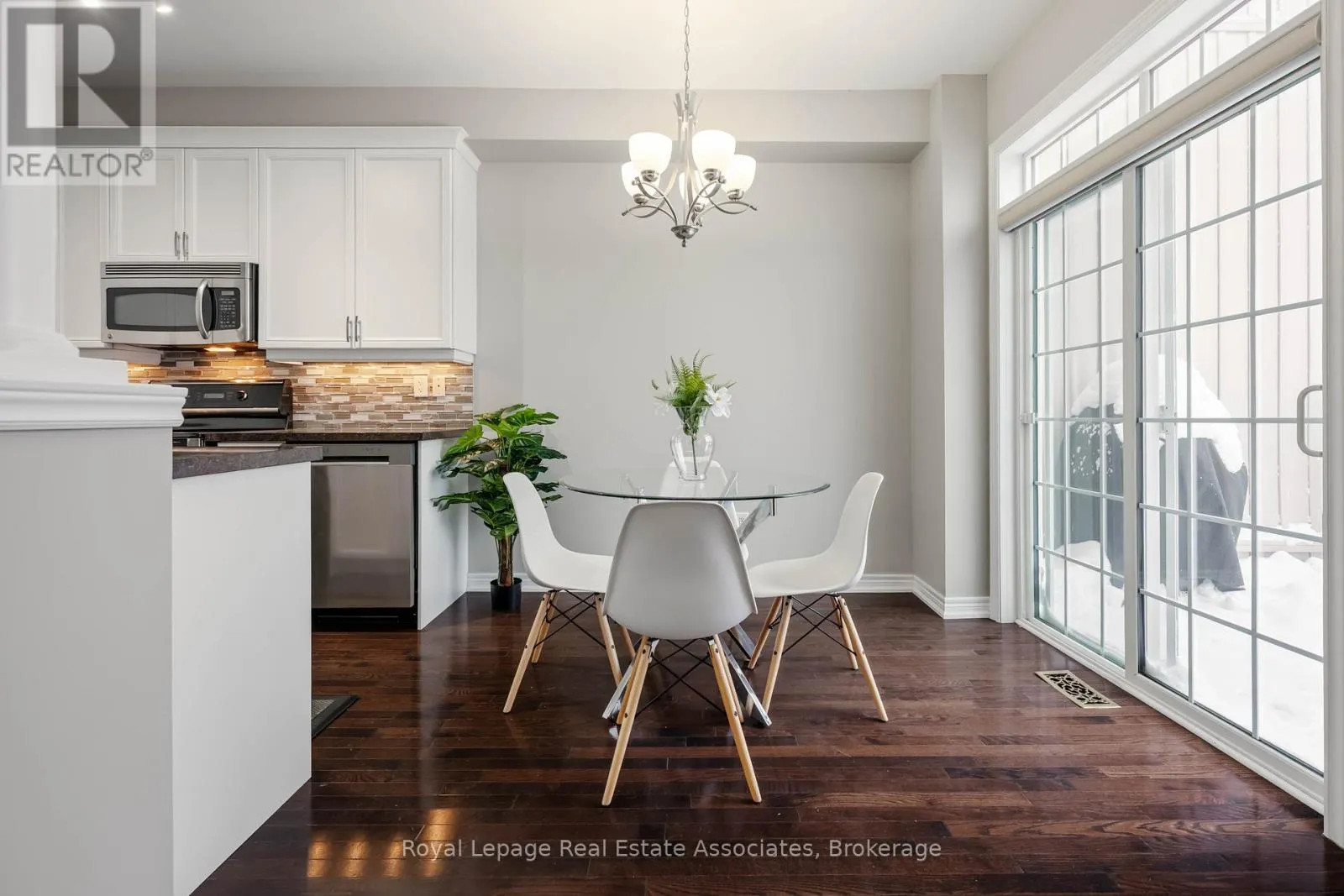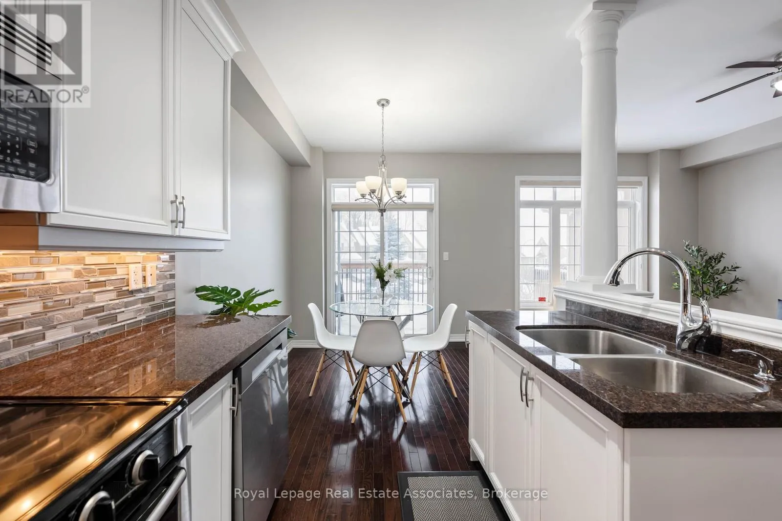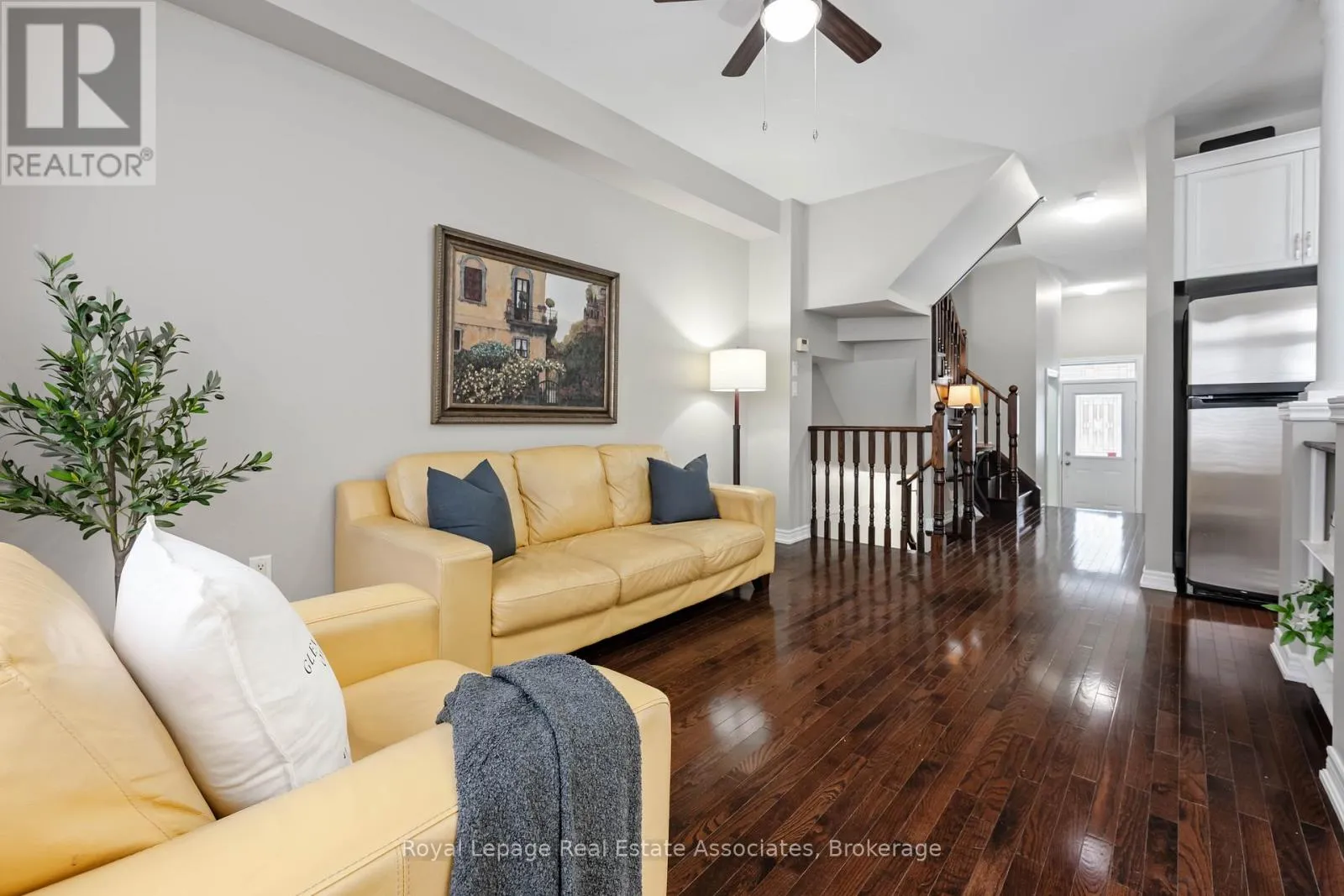 Meadowglen Boulevard to Sutcliff Lane Welcome Home! This beautifully maintained 3-bedroom, 3-bathroom townhome is nestled within a small, close-knit community that offers the charm of town living with the ease of modern convenience. Located in the sought-after Meadowglen neighbourhood near Glen Williams, this home is ideal for families and professionals alike. Enjoy a short walk to the GO Station, making commuting effortless and stress-free. Just steps away, Downtown Georgetown invites you to explore local shops, cafés, and boutiques, perfect for weekend strolls, coffee dates, and supporting local businesses. Inside, large windows throughout the home flood the interior with natural light, beautifully highlighting the rich hardwood floors and creating a warm, inviting atmosphere. The bright, updated eat-in kitchen is designed for both busy mornings and relaxed family meals, offering a space where everyone gathers. Step out onto your private balcony, an ideal spot to enjoy morning coffee or unwind in the evening. Upstairs, the primary bedroom welcomes you through elegant double doors into a sun-filled space, perfect for bright mornings and cozy evenings. Two additional bedrooms offer flexibility for growing families, guest rooms, or a comfortable work-from-home office. Downstairs, you're welcomed by a light-filled space anchored by a cozy fireplace, offering valuable additional living space ideal for a family room, play area, or media lounge. The generously sized laundry room adds everyday practicality and convenience, while the walkout to the backyard creates a natural connection to the outdoors. From the backyard, enjoy direct access to an exclusive parkette with a charming gazebo, a wonderful extension of your living space for family gatherings and summer celebrations. Thoughtfully laid out and located in a family-friendly community, this home offers a lifestyle where convenience, comfort, and charm come together to create a place you'll love coming home to every day. (id:27476)