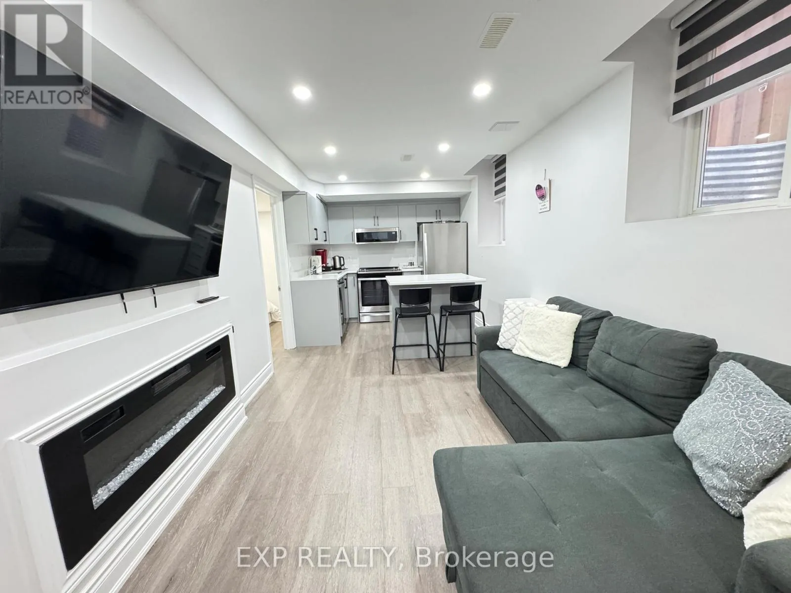 Cross Streets: Danby Road. ** Directions: Danby Rd to Morningside Dr. Beautifully renovated and well-maintained two-bedroom, two-bathroom basement apartment available for lease. This modern unit features large above-grade windows that provide plenty of natural light, along with room-darkening blinds for added privacy. The open living area includes an electric fireplace and offers comfortable space for relaxing or entertaining. The suite includes a full kitchen equipped with a refrigerator, electric stove/oven, and dishwasher. Each bedroom features its own private ensuite bathroom with a standing shower, providing added convenience and privacy. The unit also offers a private side entrance and access to a small outdoor patio seating area. Ideally located just minutes from Highway 401 with easy access to Mississauga, Brampton, Milton, Oakville, and Toronto, and close to shopping plazas, grocery stores, gas stations, medical and dental clinics, and public transit, many of which are within walking distance. (id:27476)