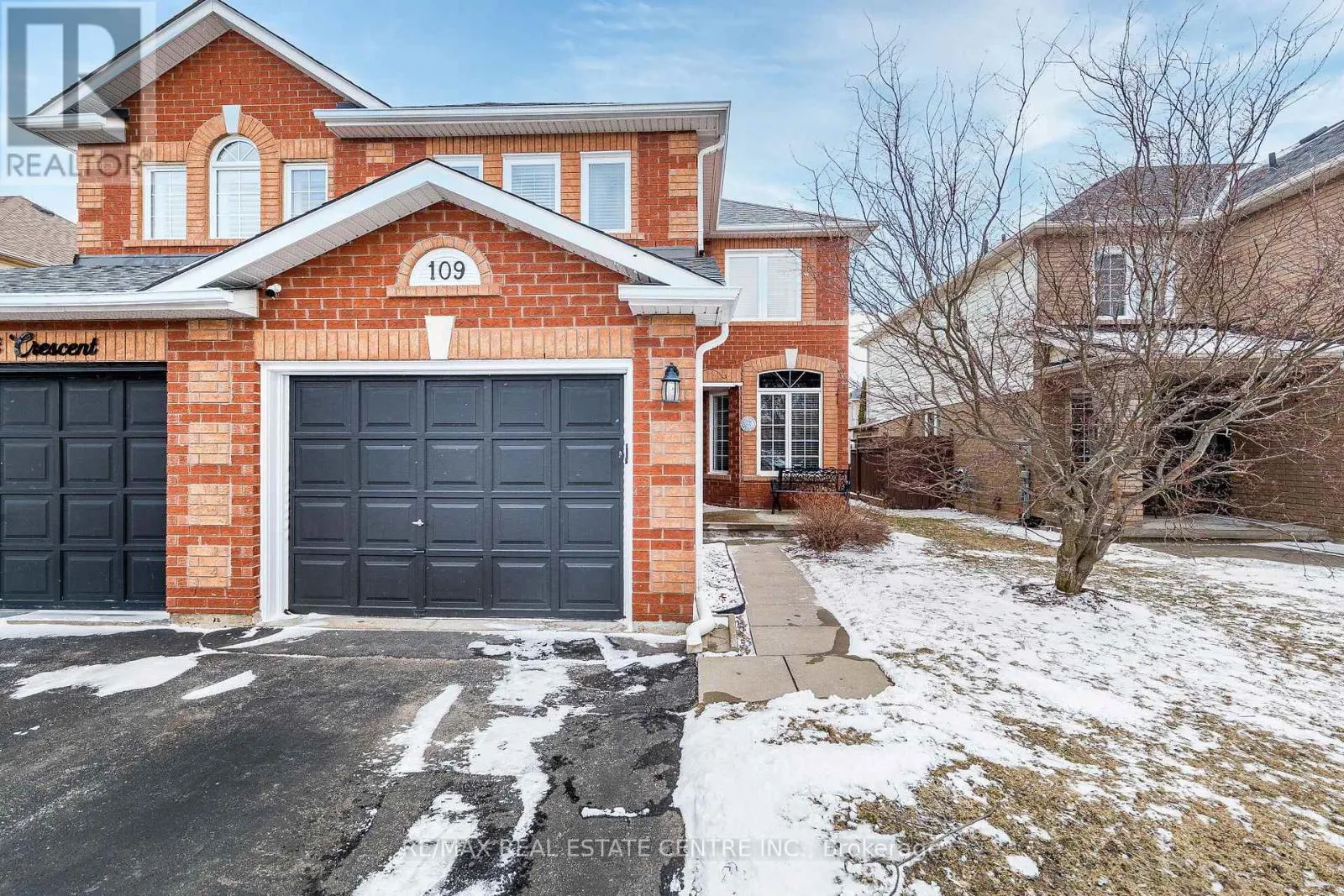 Trafalger Rd & Berton Blvd Welcome to 109 Mowat Cres!! This well-maintained 2-storey semi-detached home in the highly sought-after Georgetown North community. Offering approximately 1,750 sq ft of living space (excluding the basement), this home features 3 generously sized bedrooms and 2 full bathrooms on the second floor, along with a convenient powder room on the main level. Enjoy a functional and stylish interior with laminate flooring throughout (carpet on stairs and second floor landing only), a freshly painted interior, and a bright kitchen equipped with stainless steel appliances. The open-concept layout leads to a walkout backyard complete with a deck, gazebo, and shed-perfect for relaxing or entertaining during the warmer months. Situated on a 28.38 x 104.99 ft lot with no sidewalk, this property offers a double driveway with parking for 2 vehicles plus a garage space for 1. Major updates include windows (2020 & 2022), roof (2017), vinyl siding and upgraded insulation (2022), and a water softener (2024), providing peace of mind for years to come. A fantastic opportunity to own a move-in ready home in a family-friendly neighbourhood close to the hospital, parks, library, schools, and all essential amenities. (id:27476)