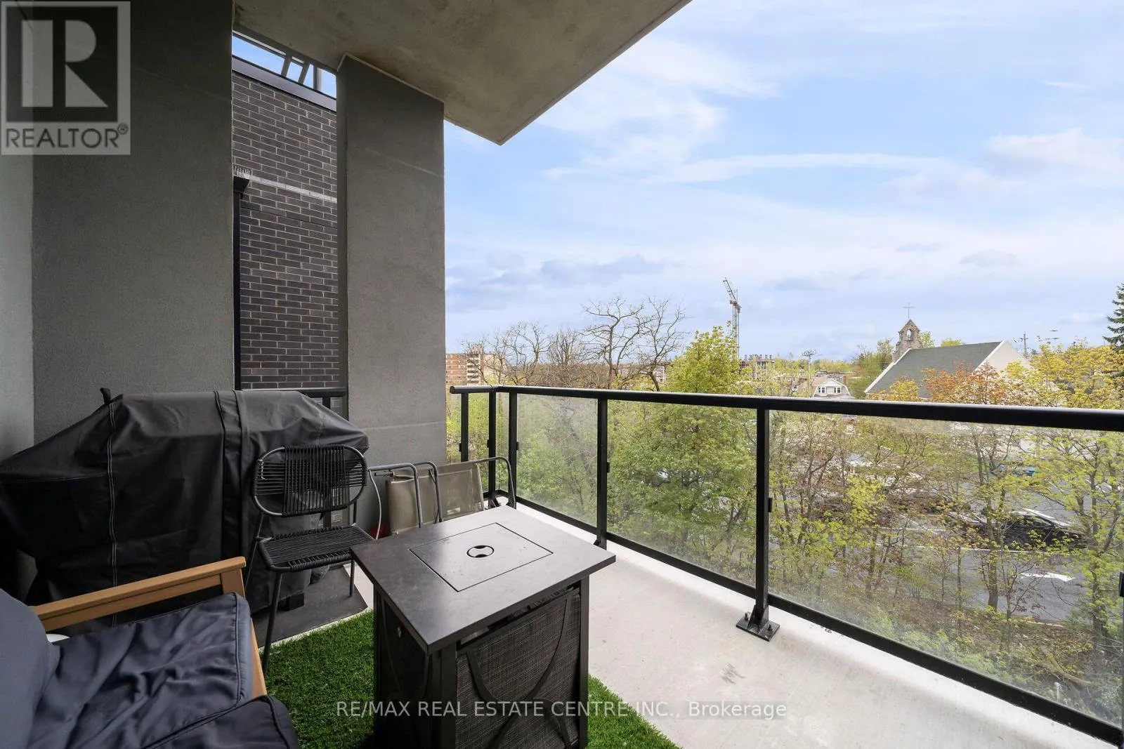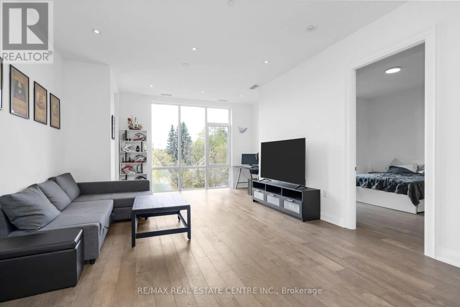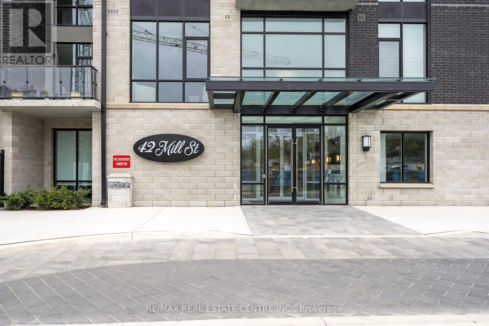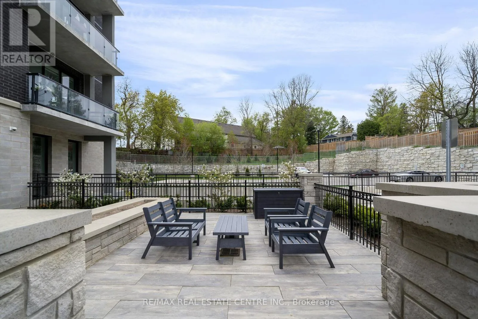 Cross Streets: Guelph Street & Mill St. ** Directions: North on Mill St. from Guelph St. Welcome to The Mill Landing, where sophisticated design meets effortless, lock-and-leave living in the heart of downtown Georgetown. Perfect for downsizers and professionals, this residence offers comfort, convenience, and a strong sense of community.From the elegant lobby to premium amenities-including a fitness centre, party lounge, pet spa, and landscaped terrace-every detail is designed to enhance your lifestyle with minimal upkeep.Inside, the suite impresses with 10.5-foot ceilings and floor-to-ceiling windows that flood the space with natural light. The open-concept layout is finished with hardwood and ceramic flooring, creating a refined yet welcoming atmosphere.The modern kitchen features two-tone cabinetry, integrated appliances, quartz countertops, pot lighting, and an oversized island with seating-ideal for everyday living or entertaining with ease.The primary bedroom offers a peaceful retreat with a walk-in closet and a stylish 3-piece ensuite. A second bedroom provides flexibility for guests or a home office, with convenient access to a full bathroom.Enjoy the rare benefit of two owned underground parking spaces and a private locker-perfect for a low-maintenance, travel-friendly lifestyle. Step outside and find yourself within walking distance to the GO Station, shops, restaurants, and the Farmers' Market. Georgetown Hospital is just minutes away, with nearby access to the Bruce Trail, Credit River, and Toronto Premium Outlets.A seamless blend of luxury, location, and lifestyle-designed for those ready to simplify without compromise. (id:27476)