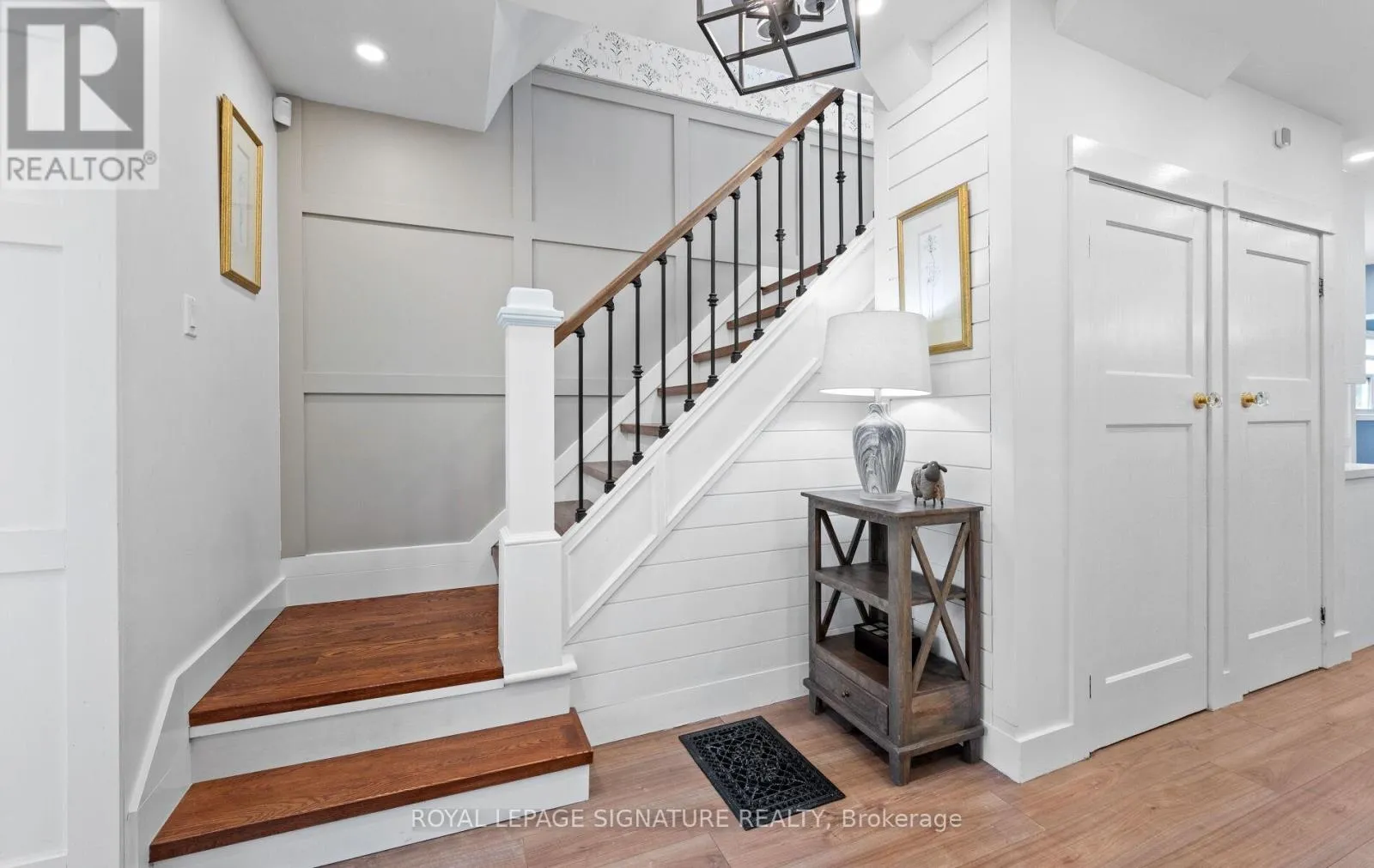 Arthur & Wellington A Home That Truly Has It All! Step inside this beautifully upgraded home where comfort meets style. From the wood staircase with wrought iron spindles and elegant wainscoting, to the thoughtfully designed finishes throughout, every detail has been carefully considered.The primary bedroom retreat offers a feature wall, walk-in closet, and a spa-like 4-piece ensuite. Convenience is key with a second-floor laundry complete with stacked front-load washer/dryer and built-in storage.Main level highlights include 9 ceilings, a renovated powder room, upgraded baseboards, stylish light fixtures, and energy-efficient LED lighting. The home also boasts modern upgrades such as a new roof (2022), new siding (2025), and a striking stone & vinyl exterior.Upstairs, the third-floor bathroom impresses with a glass shower and skylight, adding light and luxury. Partially finished basement (drywalled) with pot lights & great potential for kids rec room! The exterior is just as impressive with parking for 7 cars, a large enclosed deck plus a two-tiered deck, a 10x12 powered shed, exterior cameras, and a huge fully fenced backyard perfect for entertaining, kids, or pets.This home blends modern updates with functional design, offering everything todays family could want and more! Move-in ready and waiting for its next owners to call it home. (id:27476)