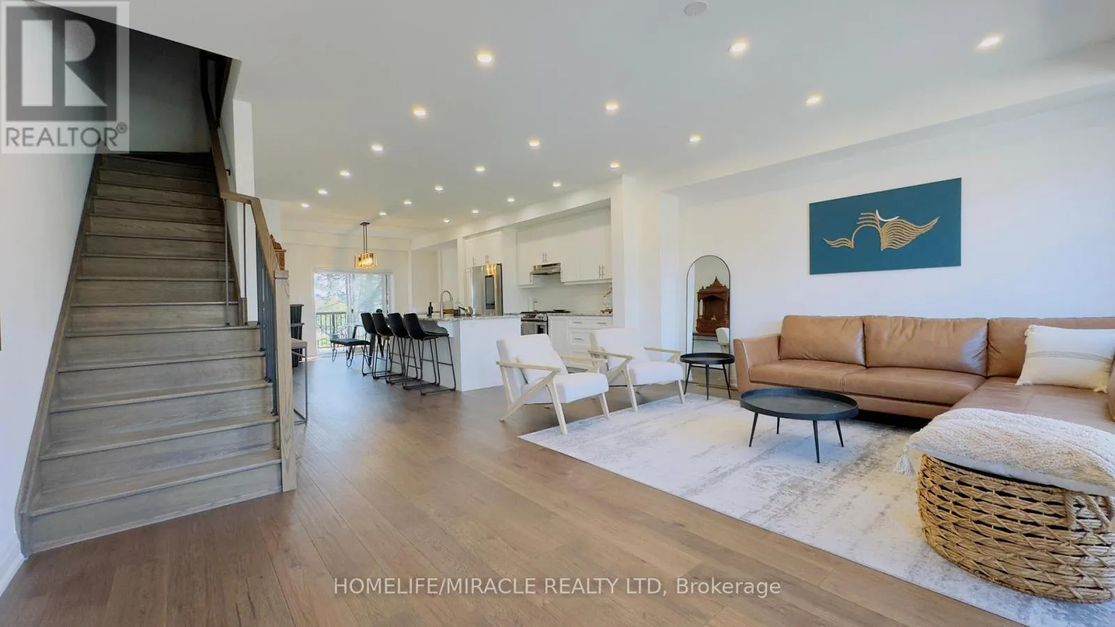 Cross Streets: Maple and Trafalgar. ** Directions: Maple To Halton Hills Dr, Left In Humberstone Dr. Left On Briar Ct. Discover your dream home in the prestigious Trafalgar Square development of Georgetown! This nearly new (1.5 years old) luxury freehold townhome blends contemporary sophistication with practical design, offering the best in comfort & style offering nearly 2000sqft. Ideally located in a highly desirable neighbourhood steps from the golf course, city hall, and backing onto peaceful green space, this home promises both convenience and tranquillity. The "Wildwood" model is the largest interior unit available, featuring an open-concept layout that's bathed in natural light. Enjoy high ceilings, large windows, & an effortless flow from the spacious living area to the gourmet kitchen & dining area-perfect for both everyday living and entertaining. With over $50,000 in premium upgrades, this home includes 3 spacious bedrms, 3 elegant bathrms, and a walk-out den/family rm on the main level that leads to your private backyard. Whether you're unwinding or hosting guests, this home has it all. Don't miss out-schedule your private tour today! Upgrades include: 1. Large Plank Hardwood Flooring throughout the main floor 2. Large upgraded natural stone Island with electrical outlets on both sides & a Large one-compartment stainless steel sink with a premium chrome faucet 3. Premium soft closing hydraulic Kitchen Cabinets with large 4" chrome handles 4. Stone countertops in washrooms with premium Moen Faucets 5. Pot lights (5CT conditions) 2700k to 6000k colour-changing Pot lights as per your mood & weather 6. All Wi-Fi-enabled latest Smart Samsung Appliances for seamless connectivity through smartphone 7. Smart Ecobee Thermostats with Sensors. 8. Brand New Water Softener 9. Hardwired front and back cameras from Defender Guard Security, in addition to the Ecobee Front Doorbell Camera. 10. 4" Large Blackout Zebra Blinds for added privacy throughout 11. Gas hookup for BBQ on the deck 12. Occupancy-activated front passage lights 13. Full motion (Swivel/Tilt) TV wall mount up to 85\ (id:27476)