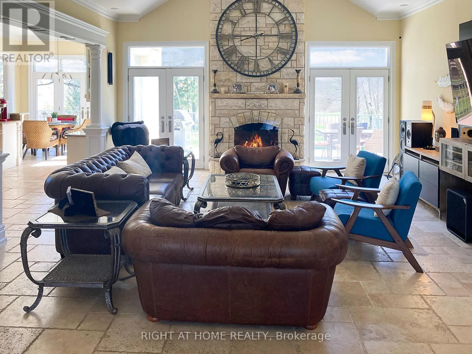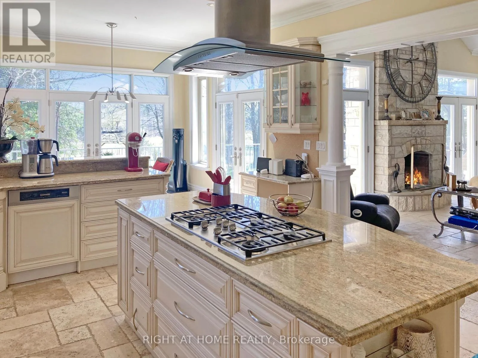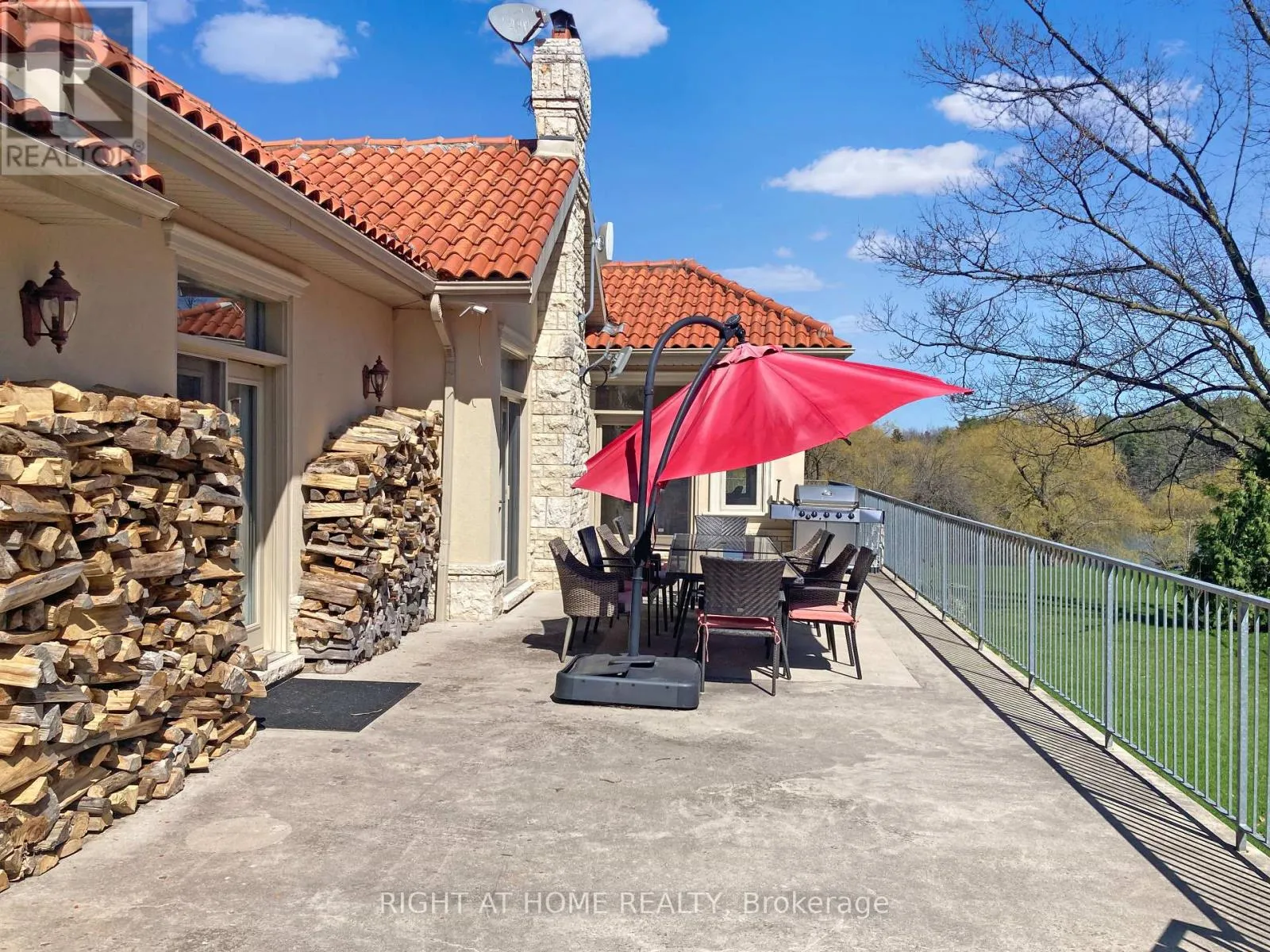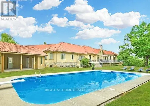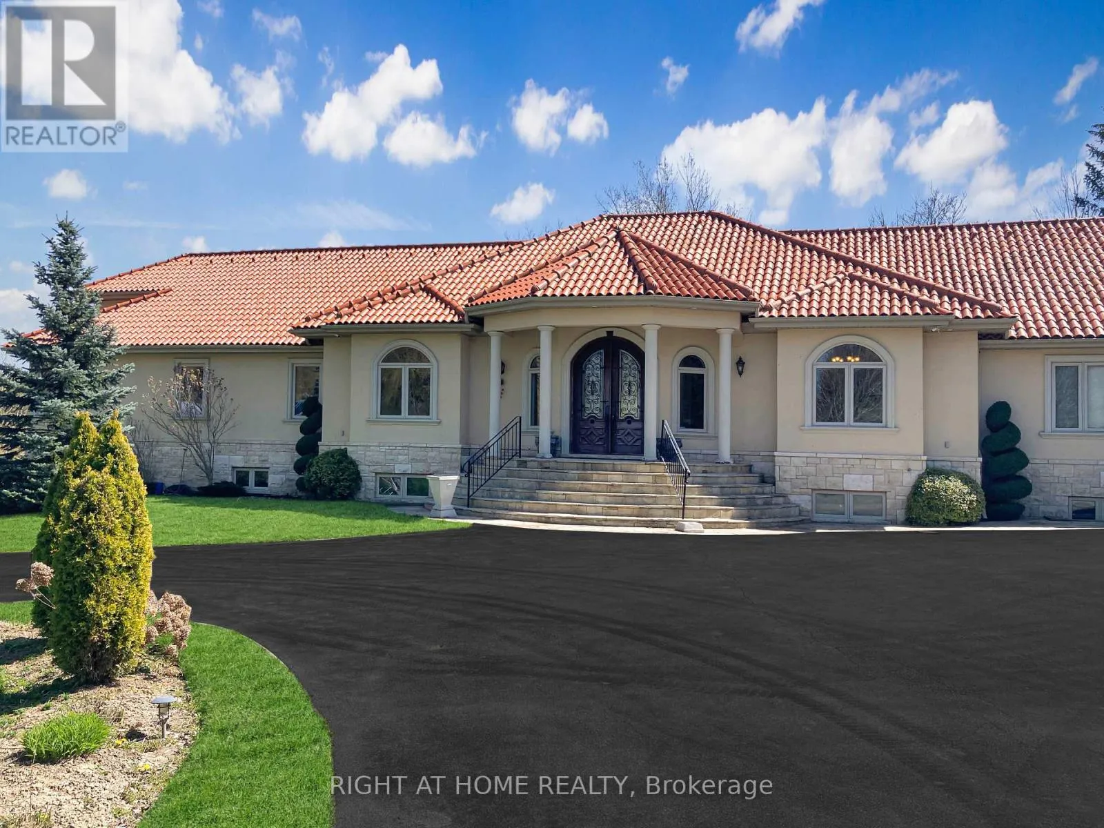Side Rd 27 and 10th Line Your personal paradise tucked away amidst the beauty of Terra Cotta - a stunning 11-acre parcel enhanced by a nearly-2-acre spring-fed private lake and 1,400 ft of shoreline teeming with wildlife. How fitting that this Spanish-style raised-ranch also boasts a beautiful terra cotta tile roof. Step into luxury as you enter the large open concept foyer with adjoining family room with 12' ceilings and a floor-to-ceiling stone fireplace, perfect for cozy evenings. This expansive home offers 12 rooms on the main floor, including 4 large bedrooms, 3 with spacious ensuites, for a total of 5 baths. Classic travertine flooring throughout the main level, complemented by hardwood flooring in the living room, dining room, and study, exuding elegance at every turn. Multiple walkouts on the main level take you to a large deck overlooking an expansive lawn gently sloping down to the private lake, creating a picturesque setting for relaxation and entertainment. A brightly lit basement bedroom with an ensuite and a private walkout to the backyard, provides a peaceful retreat for guests, family members or as a nanny suite. Experience comfort and efficiency with a high-end, dual-redundant in-floor radiant heating system that heats the entire home and the 4-car garage. Enjoy top to bottom warmth even on the coldest days while reducing costs and promoting an eco-conscious lifestyle. Unwind with family and friends by the freshwater pool, equipped with everything needed for conversion to saltwater. The partially finished basement with 10' ceilings offers endless possibilities for customization to suit your lifestyle and preferences. Welcome to your dream home and to rural serenity. Welcome to luxury meeting tranquillity. And all this is just 10 minutes away from key amenities in downtown Georgetown, 8 minutes from Northwest Brampton and 30 minutes from Pearson Airport. (id:27476)