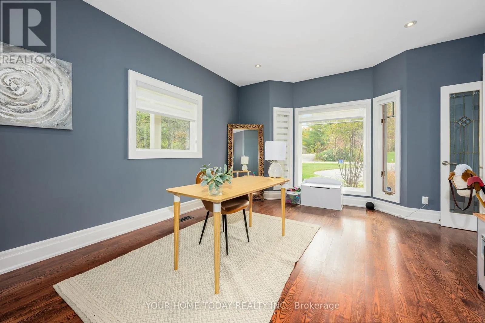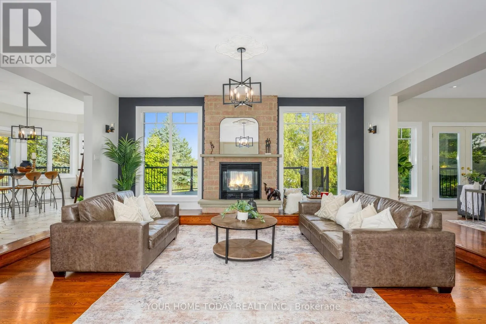 Cross Streets: Hwy 7 and Dublin Line. ** Directions: HWY 7, Dublin Line, Turtle Lake. Magnificent is the only way to describe this home & property! Situated on a beautiful 1.05-acre lot in a small enclave of executive homes & backing onto the prestigious Blue Springs Golf Course offering million-dollar views & great golf! Set up for multi-generational/blended family living w/ potential for 3 separate, privately accessed, living areas - perfect for in-laws, children, nanny, home office & more! A circular drive & inviting covered porch welcome you into this immaculate home featuring ~6,000 sq. ft. of beautifully finished living space, multiple W/O's, plus an ~900 sq. ft. unfinished loft (sep access). A grand foyer sets the stage for this outstanding home w/impressive 2-story ceiling & sweeping staircase to both the upper & lower level. The main level features an O/C kitchen/living/family room, the heart of the home, across the back to take advantage of the amazing views! The gourmet kitchen offers all the bells and whistles - large island w/seating, granite counter, W/I pantry, SS appliances & W/O to a party-sized composite deck O/L the breathtaking yard. The adjoining sunken family w/gas f/p & huge windows & living room with another W/O make entertaining a pleasure. A formal dining room w/coffered ceiling complimented by accent lighting adds to the enjoyment. A bdrm/office, service entrance, powder room, laundry room & mudroom w/a 2nd staircase to the basement along w/access to the garage & loft complete the main level. The upper level offers 4 spacious bdrms, the primary w/2 Juliette balconies, W/I closet & luxurious 6-pc ensuite. The remaining 3 bdrms share an elegant 5-pc bthrm. The lower level featuring a separate entrance enhances the home w/a spacious O/C area, full kitchen, rec room, W/O to a covered patio, 5th bedroom, 3-pc, huge cantina/cold cellar & plenty of storage/utility space. A 3.5 car garage & parking for 12 cars complete the package. Great location. Close to Fairy Lake & Prospect Park w/easy access to 401 for commuters. (id:27476)