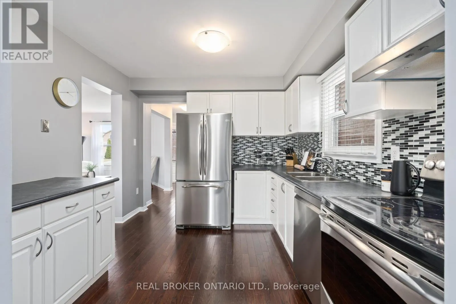 Cross Streets: Barber Dr and Mountainview Rd South. ** Directions: Mountainview Rd S to Barber Dr., to Smith. Move-In Ready 3-Bedroom Family Home! Pride of ownership shines in this beautifully maintained 3-bedroom, 2.5-bath all-brick home on a quiet street in Georgetown South. The main floor features hardwood throughout, a spacious living/dining room, updated kitchen with stainless steel appliances, and a family room with fireplace and walkout to deck and fully fenced backyard. The primary suite offers his & hers closets and an updated 3-pc ensuite with glass shower. Two more bedrooms, brand new carpet with upgraded under pad, and a stunning 5-pc main bath complete the upper level. The finished basement adds versatile space for a rec room, gym, or home office. Enjoy a private backyard with deck, garden area, and shed. Recent upgrades include AC (2023), 200-amp electrical panel with pot lights, generator link, and new front walkway & steps. Walking distance to schools, parks, shops, and restaurants. Easy access to 401 & 407. A must-see Georgetown South home! (id:27476)
