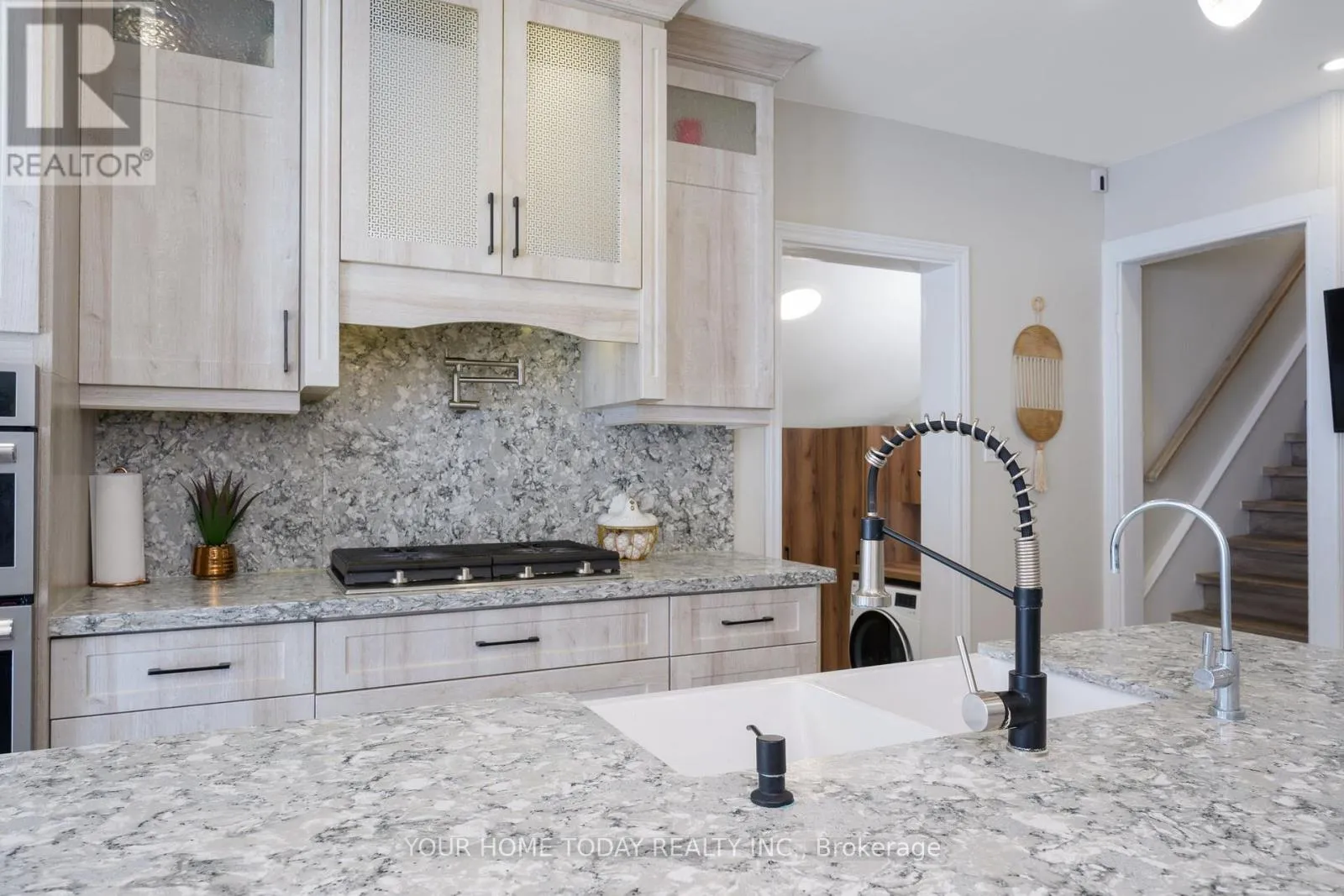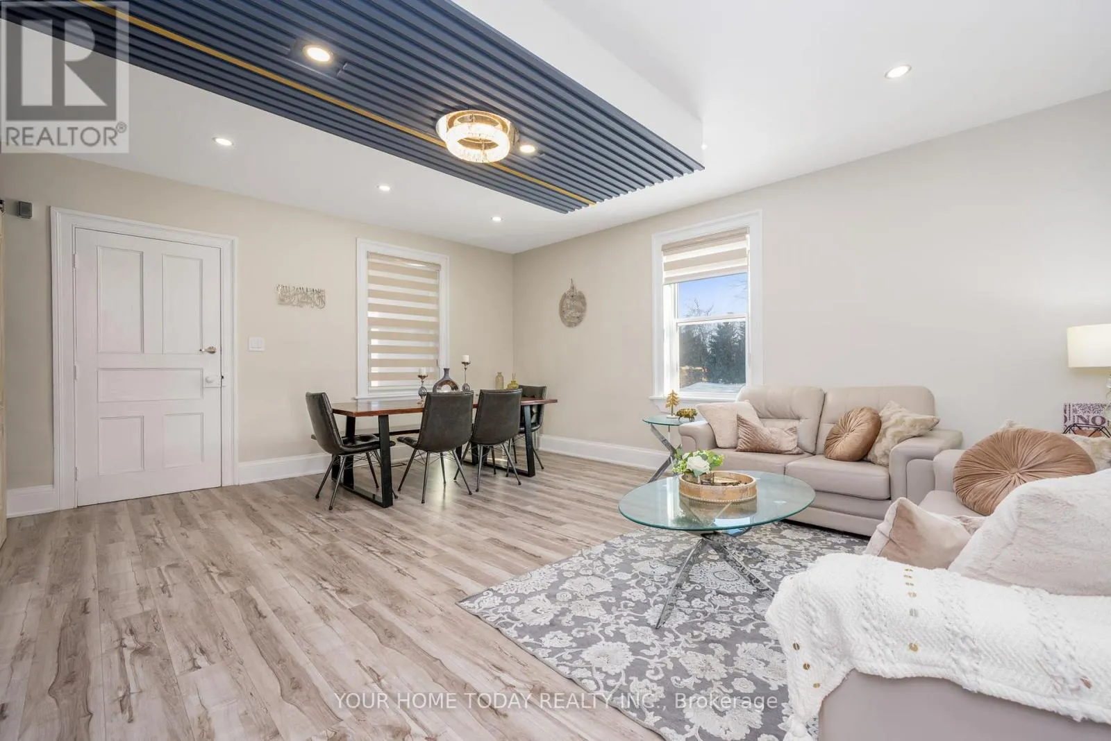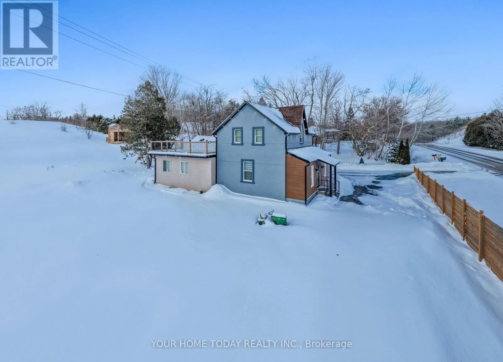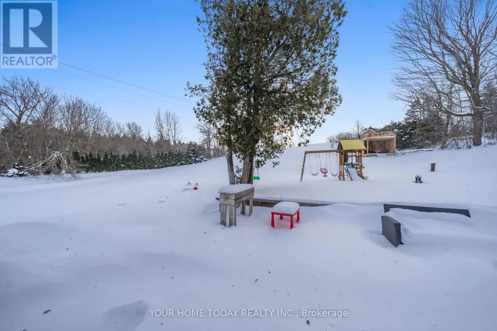 Cross Streets: 22nd Sideroad and 4th Line. ** Directions: Highway 7, 22nd Sideroad, 4th Line. Charming century home showcasing classic Gothic Revival architecture, complete with eye-catching lancet window. A convenient family friendly enclosed porch/mudroom welcomes you into this beautifully updated heritage residence where an open-concept living and dining area features stylish vinyl plank flooring, an electric fireplace set against a striking wood feature wall and a complementary wood-accented ceiling. Pot lights throughout create a bright, inviting ambiance. The chef-inspired kitchen is truly the heart of the home, offering a massive island with seating for five, quartz counters and backsplash, stainless steel appliances, double farmhouse sink, convenient pot filler above gas stovetop, generous pantry and a dedicated coffee centre. Step through the sliding door walkout to a large patio overlooking mature, private grounds, small Koi pond and a family-friendly retreat with a play structure and a charming gazebo/playhouse - ideal for outdoor fun and relaxation. The main level features a serene primary suite with an elegant 3-piece ensuite and walk-in closet, a second bedroom/office, a beautifully updated 3-piece main bath and a convenient laundry room with access to the driveway. Upstairs, two charming character bedrooms (one with walkout to a large balcony) and a sleek 3-piece bathroom provide comfortable space for family. The property also includes a huge driveway (parking for 12 cars) plus a separate detached double garage, offering terrific storage, hobby, or workshop space. Ideally located close to Limehouse Caves and trails, and just minutes to Acton, Georgetown, and Milton for everyday amenities. Commuters will appreciate easy access to major routes. (id:27476)