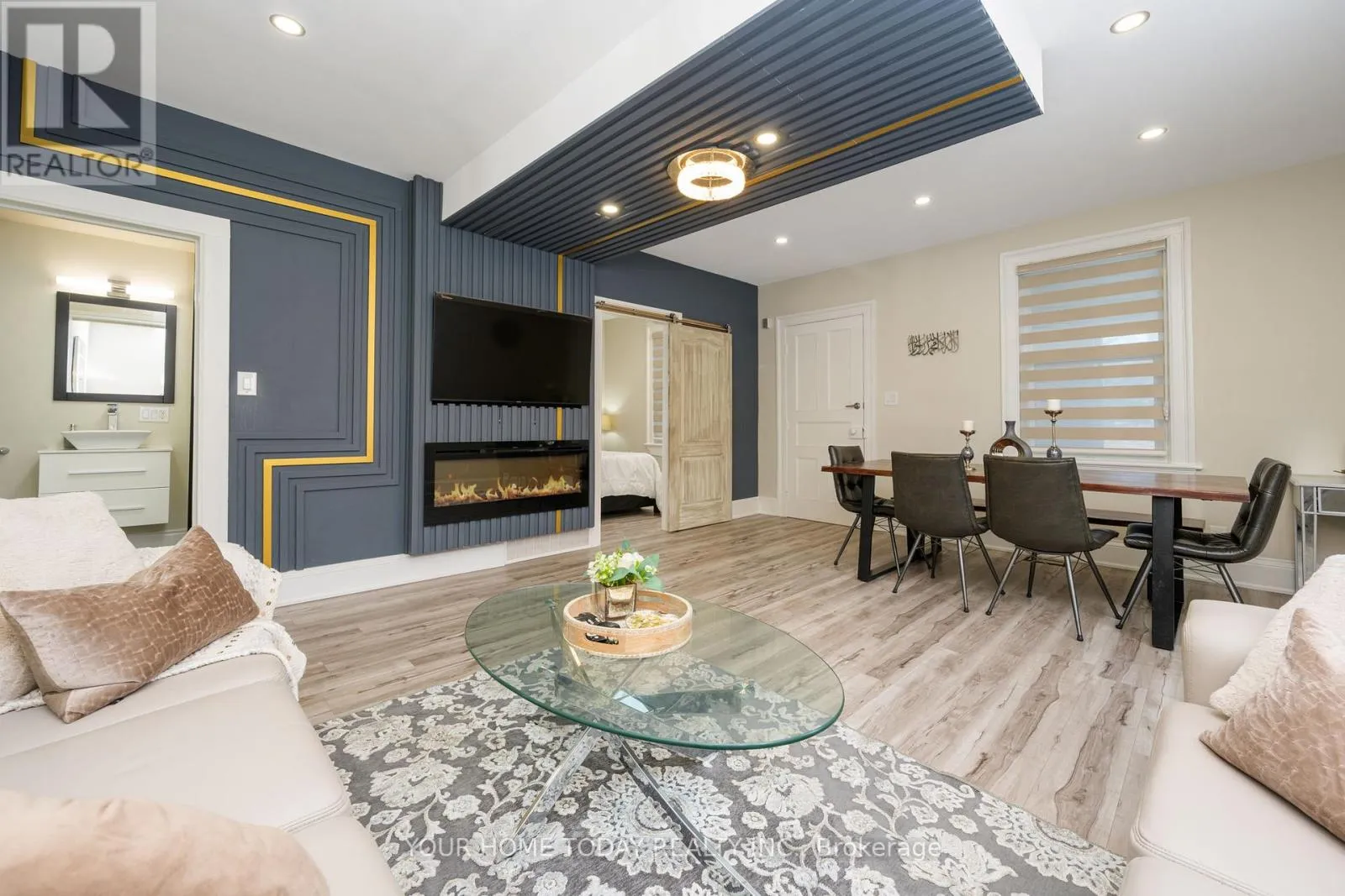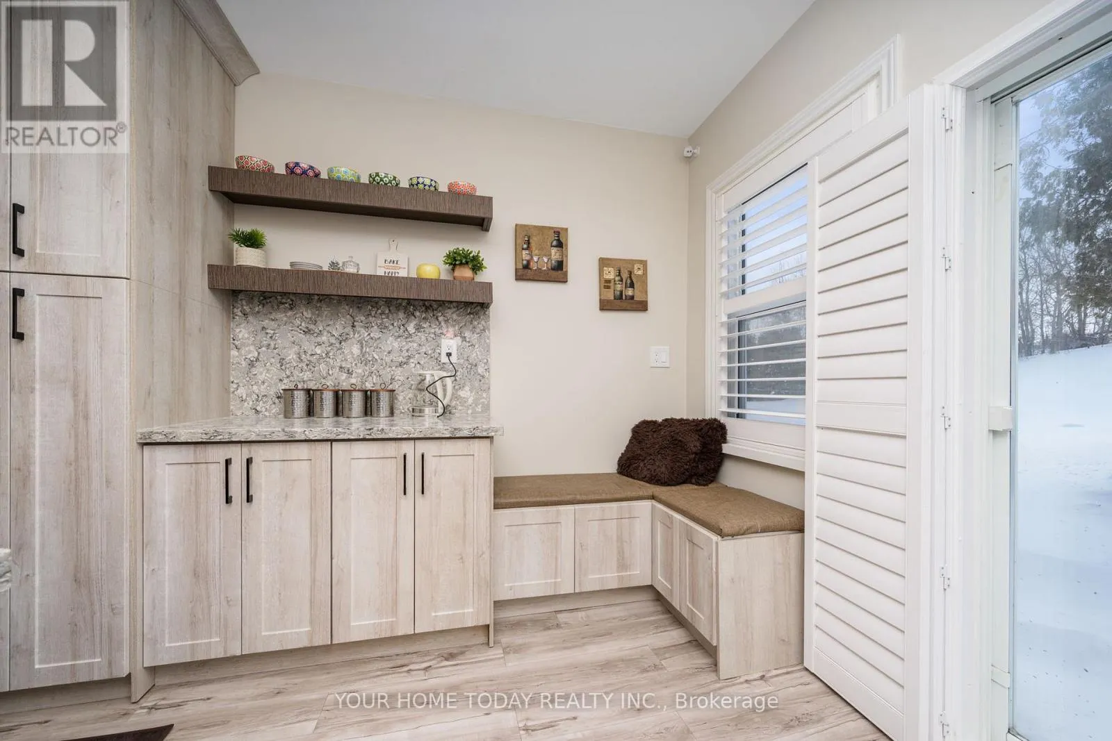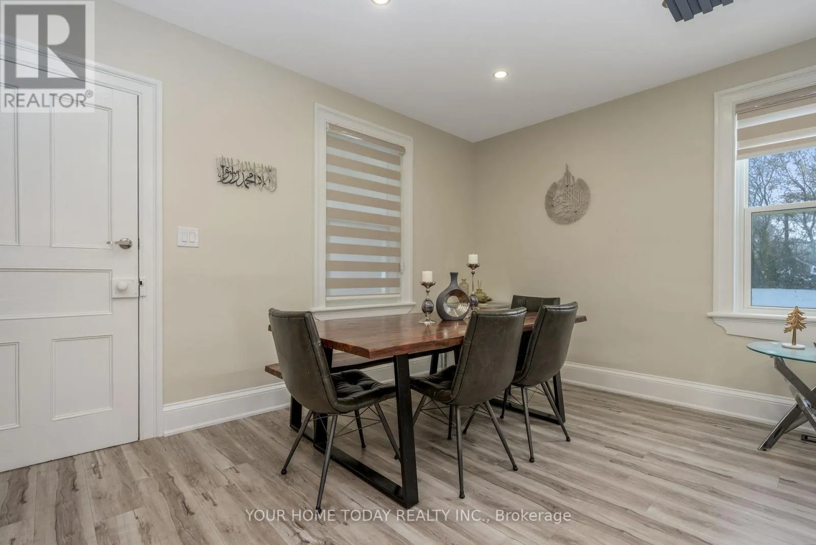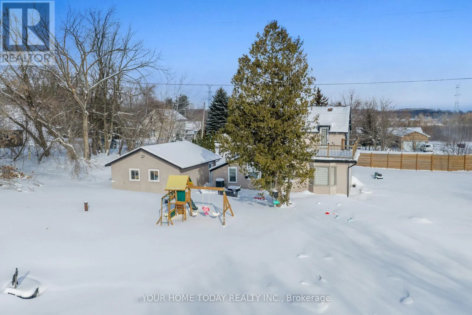 Cross Streets: 22nd Sideroad and 4th Line. ** Directions: Highway 7, 22nd Sideroad, 4th Line. Charming century home showcasing classic Gothic Revival architecture, complete with eye-catching lancet window. A convenient family friendly enclosed porch/mudroom welcomes you into this beautifully updated heritage residence where an open-concept living and dining area features stylish vinyl plank flooring, an electric fireplace set against a striking wood feature wall and a complementary wood-accented ceiling. Pot lights throughout create a bright, inviting ambiance. The chef-inspired kitchen is truly the heart of the home, offering a massive island with seating for five, quartz counters and backsplash, stainless steel appliances, double farmhouse sink, convenient pot filler above gas stovetop, generous pantry and a dedicated coffee centre. Step through the sliding door walkout to a large patio overlooking mature, private grounds, small Koi pond and a family-friendly retreat with a play structure and a charming gazebo/playhouse - ideal for outdoor fun and relaxation. The main level features a serene primary suite with an elegant 3-piece ensuite and walk-in closet, a second bedroom/office, a beautifully updated 3-piece main bath and a convenient laundry room with access to the driveway. Upstairs, two charming character bedrooms (one with walkout to a large balcony) and a sleek 3-piece bathroom provide comfortable space for family. The property also includes a huge driveway (parking for 12 cars) plus a separate detached double garage, offering terrific storage, hobby, or workshop space. Ideally located close to Limehouse Caves and trails, and just minutes to Acton, Georgetown, and Milton for everyday amenities. Commuters will appreciate easy access to major routes. (id:27476)