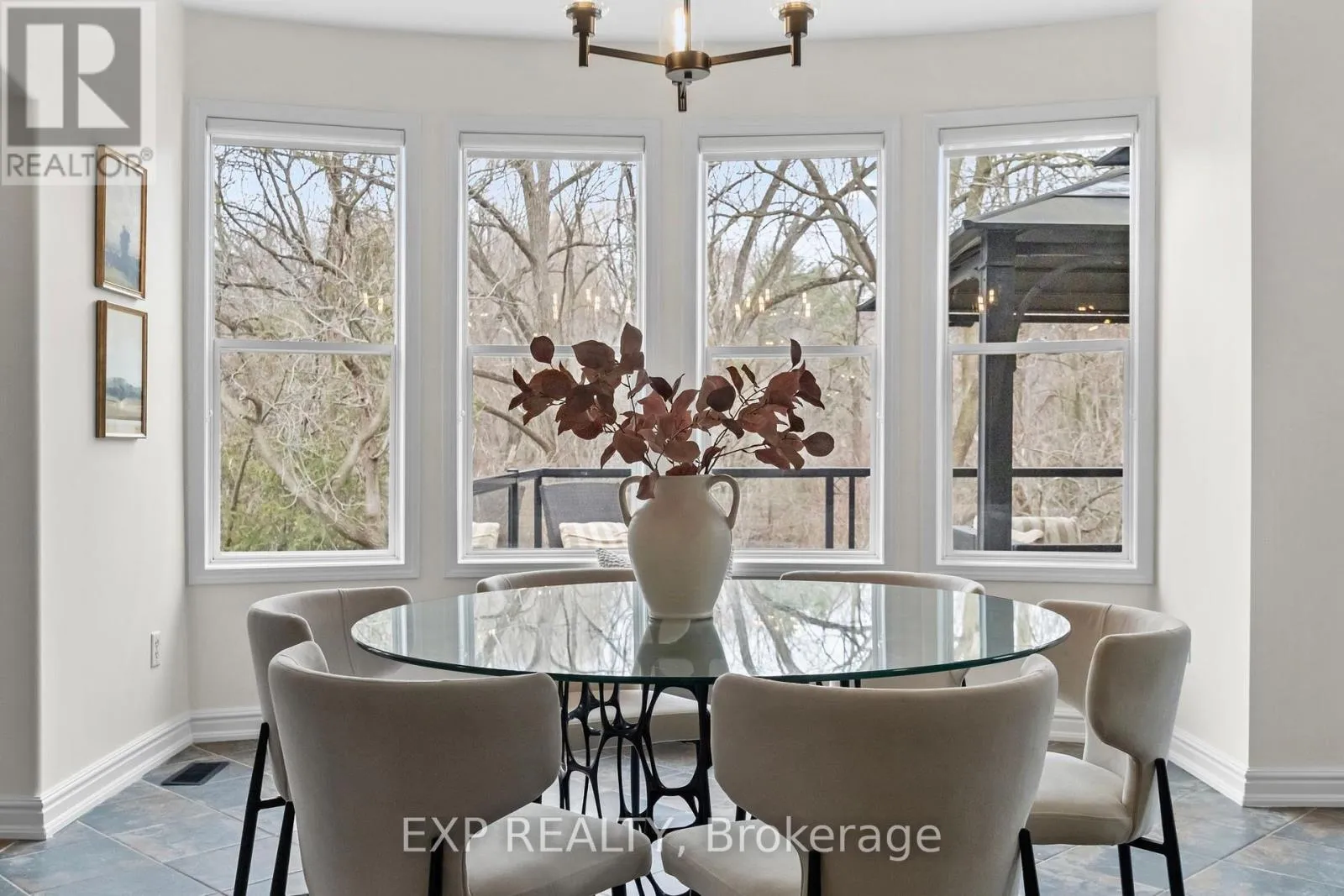 Cross Streets: Main St S & 17 Side Rd. ** Directions: as per maps. Have you been searching for a luxury home backing onto a ravine with a walk-out basement? This one checks all the boxes. Welcome to 106 Arborglen Drive. Located in the prestigious Arborglen neighbourhood, this beautifully upgraded 4+1 bedroom home offers over 4,000 sq ft above grade plus a fully finished walk-out basement, delivering exceptional space, comfort, and flexibility for growing families. Backing onto lush wooded greenspace with no rear neighbours, this home offers a private, serene setting with Muskoka-like surroundings. The backyard features an elevated deck, covered outdoor area, and direct walk-out access from the lower level, perfect for entertaining and everyday living.Inside, you'll find hardwood flooring, custom millwork, crown moulding, a main floor office ideal for working from home, and a stunning gas fireplace. The chef-inspired kitchen features quartz countertops, a large centre island, floor-to-ceiling cabinetry, soft-close drawers, and a walkout to the deck. Freshly painted and featuring a new front door and garage door, this home is truly move-in ready. Upstairs offers four spacious bedrooms, including a luxurious primary suite with a spa-like ensuite featuring a double vanity, soaker tub, and glass shower, plus a convenient Jack and Jill bedroom layout. The fully finished walk-out basement offers expansive additional living space with large above-grade windows, a separate kitchen, living area, bedroom, laundry and full bathroom, ideal for extended family or income potential. Steps to Cedarvale Park, Hungry Hollow Trail, downtown Georgetown, the Cultural Centre, Library, and The Club at North Halton. Not all homes in Arborglen are created equal. This one backs onto nature. (id:27476)