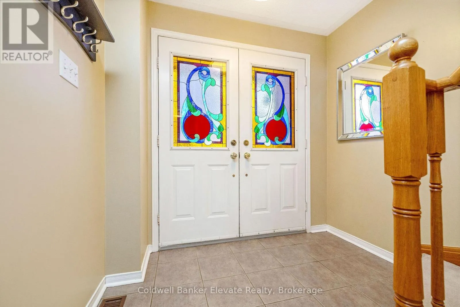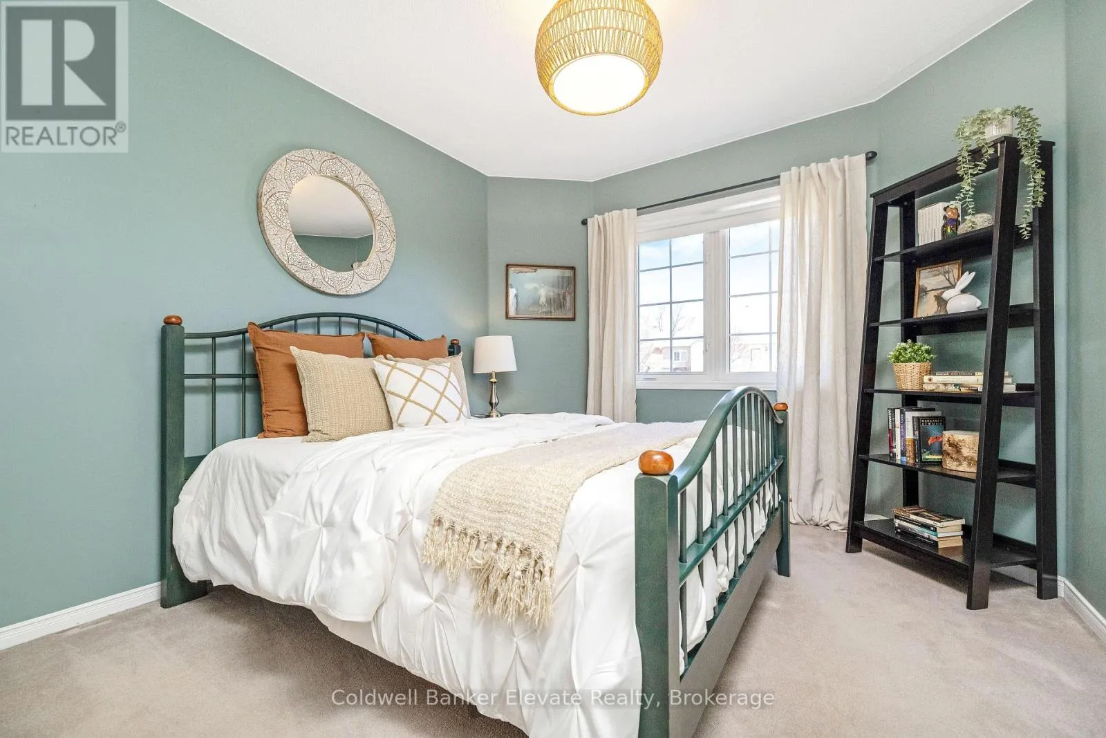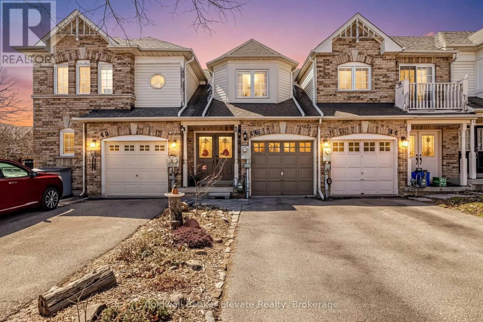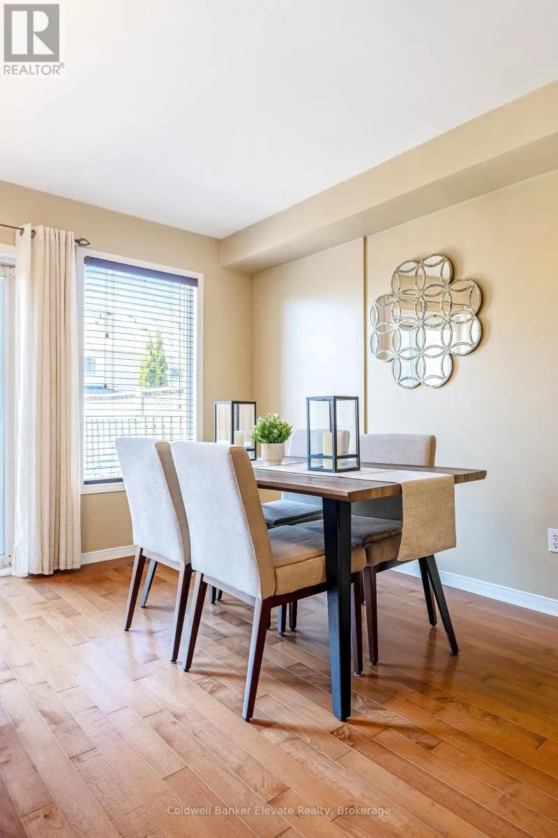 Cross Streets: Maple/Harding. ** Directions: Mountainview Rd N to Maple Ave or Dominion Gardens Dr to Harding Street. Welcome to this beautifully maintained freehold townhouse offering comfort, functionality, and thoughtful updates throughout. The landscaped front yard, stone walkway, and covered front porch create a warm and inviting first impression, complete with a private driveway with parking for two and an attached garage with overhead and hanging storage. Step inside to a bright and welcoming main level featuring solid 3/4 inch hardwood flooring through the hallway, living room, and breakfast area. The open concept layout is ideal for both everyday living and entertaining, with large windows and a double sliding glass door walkout that fills the space with natural light and provides seamless access to the backyard. The kitchen is both functional and inviting, offering warm brown cabinetry with curved panel detailing, a tile backsplash with multiple outlets, stainless steel appliances, and a breakfast bar with comfortable seating. Upstairs, the spacious primary bedroom offers a peaceful retreat with two windows overlooking the backyard, a chandelier, and two double closets for ample storage. The semi-ensuite 3 piece bathroom features a tub and shower combination, built-in vanity, and convenient access from both the bedroom and hallway. A second bedroom with front yard views, broadloom flooring, and a double closet completes this level. The unfinished basement presents excellent potential, with framing and electrical already completed, offering a great opportunity to create additional living space, a recreation area, or a home office. The private backyard is a true highlight, featuring a brand new spruce deck (2025), new fencing (2025), and beautifully landscaped gardens filled with mature perennials including hydrangeas, lilies, and magnolias, creating a peaceful outdoor setting to enjoy. A wonderful opportunity to own a move-in ready home in a family friendly neighbourhood with space to grow and make it your own. (id:27476)