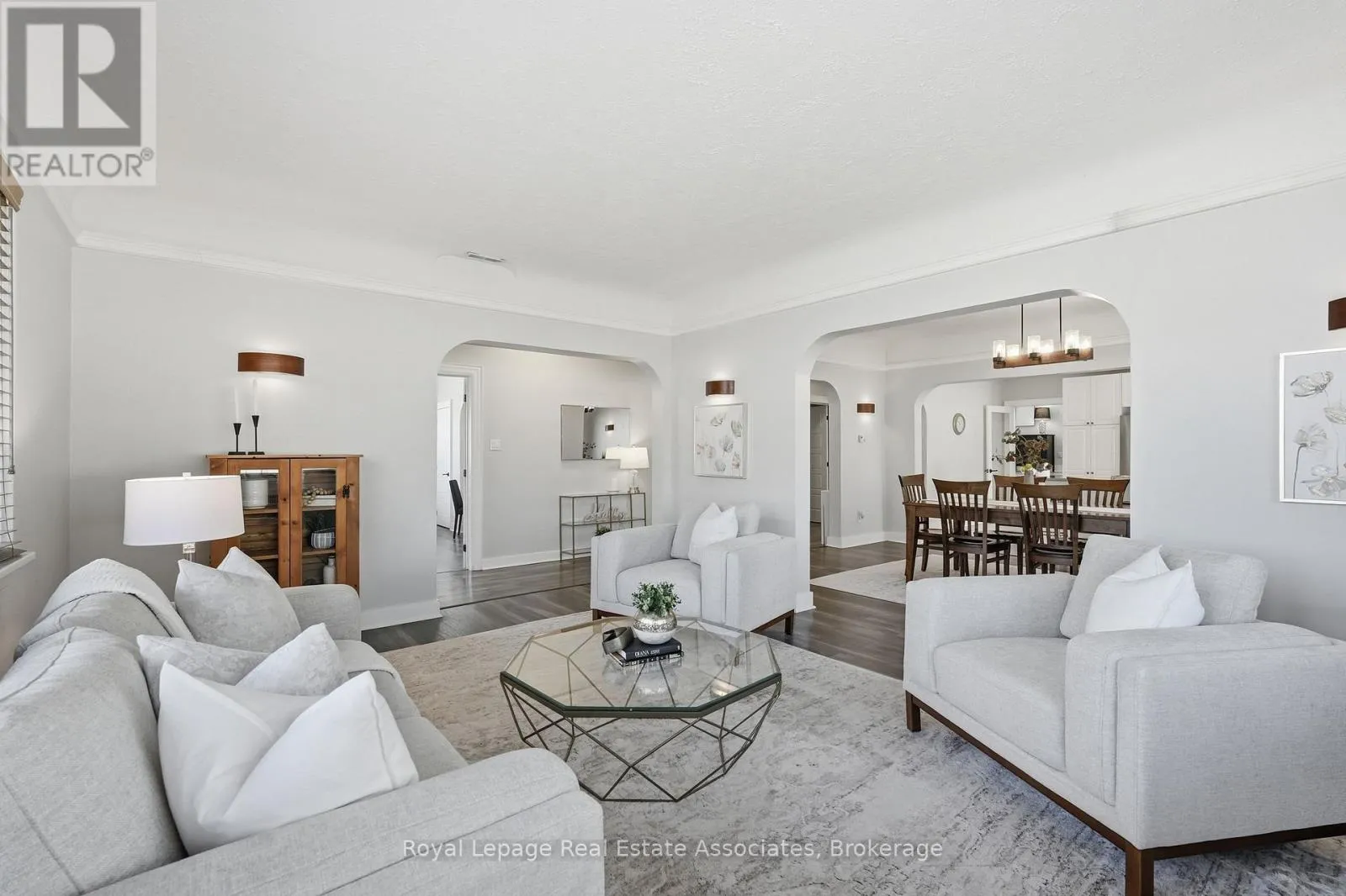 McNabb St / King St Uniquely designed and upgraded home in Georgetown's highly sought after neighbourhood. This stunning detached home sits on a massive 126x82 ft corner lot, this unique home design blends old charm with high-end modern renovations valued at over 100K. With nearly 2,500 sq ft of bright, open-concept living featuring soaring 9 ft ceilings, many windows, crown moulding, & pot lights throughout this one won't disappoint! The gourmet custom kitchen is a chef's dream with sleek quartz counters, modern backsplash, & premium stainless steel appliances and large island that is perfect to entertain. Retreat to the primary suite equipped with dedicated high-efficiency A/C. Spa-like bathrooms boast custom glass showers & refined finishes. High-end laminate flooring throughout. Prime location just steps from the Georgetown Fairgrounds, scenic trails, & vibrant Old Downtown Core's shops & theatre. An ideal retreat for the daily commuter, this residence is located just minutes from the GO Station. It offers a sophisticated blend of historic character, expansive living space, and modern luxury within one of Halton Hills' most prestigious heritage neighbourhoods. Turn-key and meticulously maintained, this home is ready for immediate enjoyment. (id:27476)