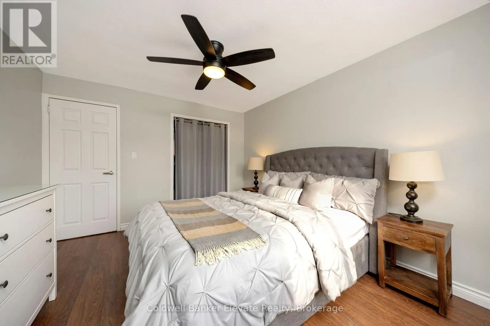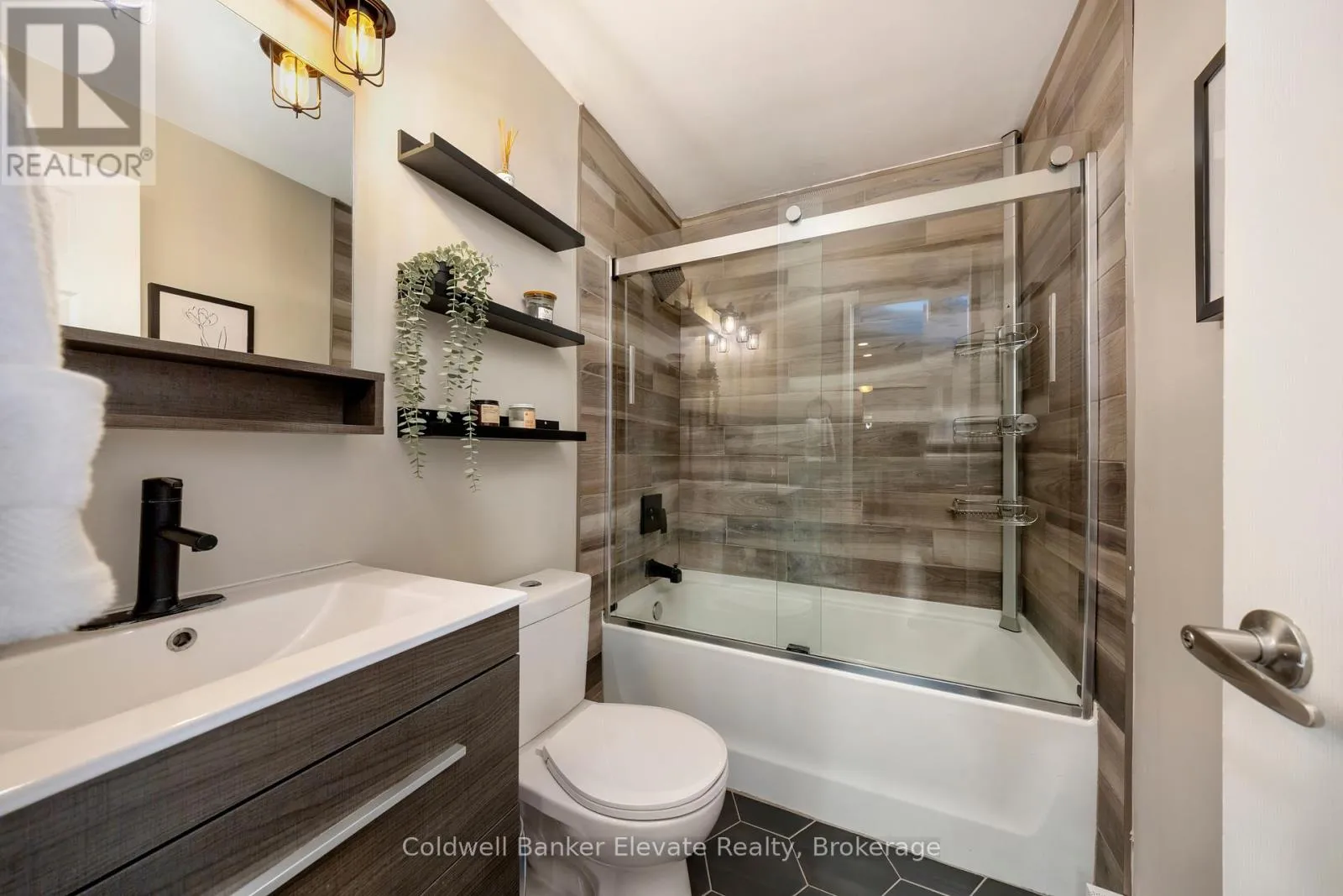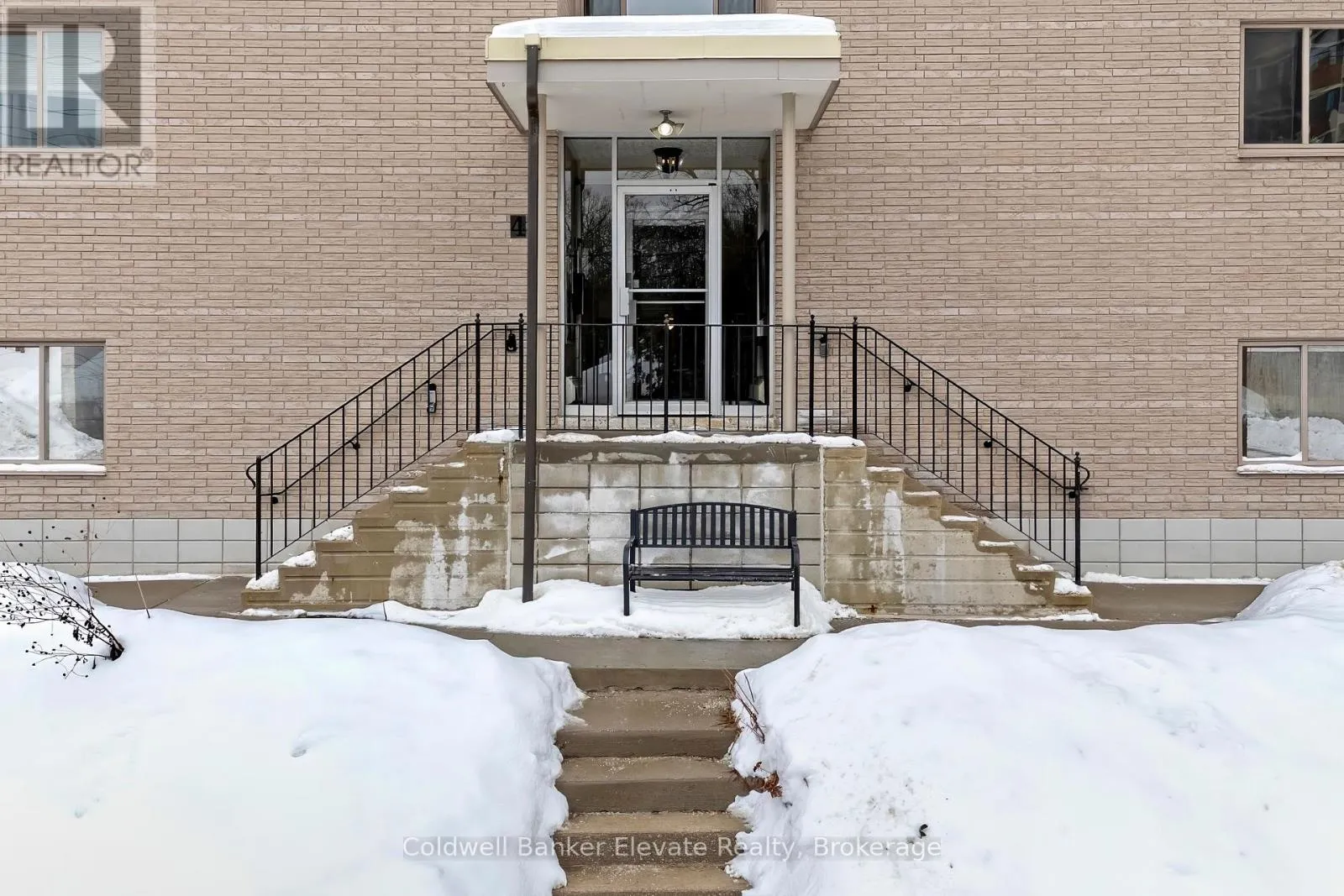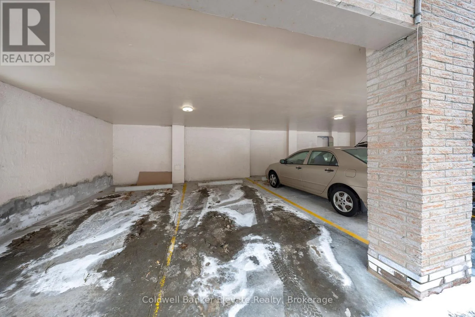 Mill & Main Street Cute as a button and completely move-in ready, this 1 bedroom, 1 bathroom condo is ideally located in one of the best spots in town, just steps to downtown Georgetown, shops, and the local Farmers' Market. The bright and functional layout begins with a welcoming front foyer featuring ceramic tile flooring, a flush mount light, and a double mirrored closet offering ample storage. The living room showcases laminate flooring, recessed pot lights, a sunny south facing window, and a walk out to the balcony with open south facing views. The open concept dining area continues the laminate flooring, features a ceiling fan with integrated light, and shares access to the balcony, creating a seamless indoor outdoor living experience. The kitchen offers ceramic flooring, a mosaic tile backsplash, laminate countertops, a double stainless-steel sink, track lighting, and an open concept design ideal for everyday living. The spacious primary bedroom includes laminate flooring and a south facing window that fills the room with natural light. The renovated four-piece bathroom features a modern vanity with sink, updated vanity lighting, and a tub and shower combination with sliding glass doors. Ensuite laundry adds everyday convenience with a Bosch front load washer and dryer included. Additional highlights include one exclusive parking space, visitor parking, bike storage and a private storage locker located in the building. Maintenance fees are all inclusive, covering hydro, heat, and water. Ideally located close to schools, parks, and minutes to GO, this is the perfect opportunity for first time home buyers. (id:27476)