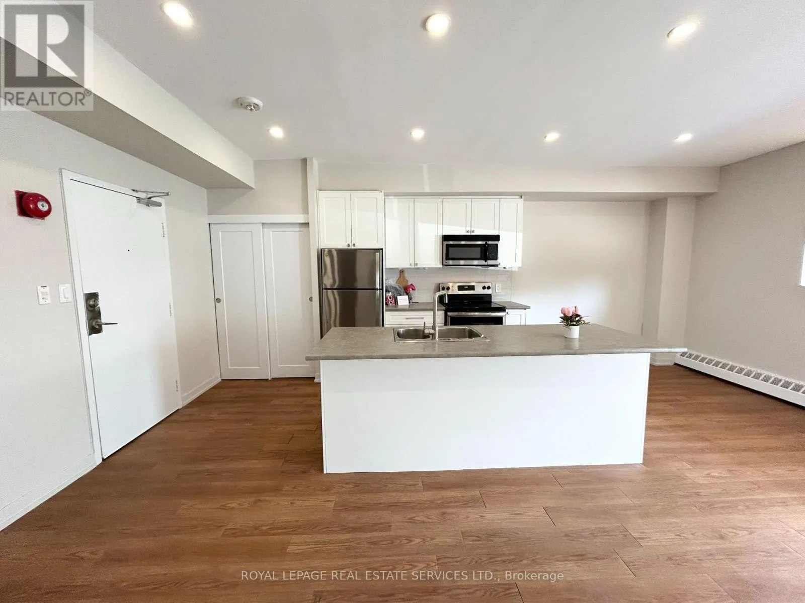 Cross Streets: Main St S and Park Ave. ** Directions: North on Main St S and turn right on Park Ave. **Welcome to Silvercreek Towers , Where Nature Meets Convenience** Nestled in a peaceful natural setting yet just minutes from the many amenities of Georgetown, Silvercreek Towers offers the perfect blend of tranquility and accessibility. This open concept ground floor suite boasts approximately 905 sqft of living space, featuring neutral paint throughout, updated flooring and high ceilings. The kitchen offers designer cabinetry with ample storage, 4 stainless steel appliances, modern backsplash, a double sink and generous breakfast island perfect for entertaining. Building Amenities Include: Fitness room, Community BBQ area, Gazebo with picnic space, Pet-friendly environment, Onsite laundry facilities, Covered parking available. With easy access to GO Train and GO Bus services, and within walking distance to downtown Georgetown, shops, restaurants, parks, and trails, Silvercreek Towers offers the best of both worlds: serene surroundings and urban convenience. This is more than just a suite, it's a place you will love to call home. (id:27476)