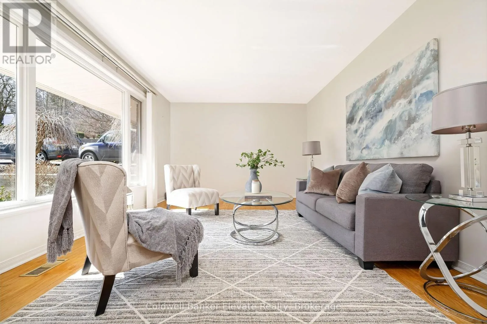 Cross Streets: Maintainview Rd N & John St. ** Directions: Mountainview Rd N to John Street. Welcome to this charming and well cared for bungalow offering a functional layout, warm finishes, and a beautifully landscaped backyard retreat. The main level features hardwood flooring throughout the living, dining, and all three bedrooms, creating a seamless and inviting flow that feels both comfortable and cohesive. A bright living room with a large picture window overlooks the front yard, filling the space with natural light, while the dining area offers a peaceful view of the backyard, making it ideal for both everyday meals and hosting family and friends. The eat in kitchen provides great functionality with ample cabinetry, laminate counters, and a convenient side door walk out to the yard for easy access. All three bedrooms are well sized and include closets and hardwood flooring, offering flexibility for families, guests, or a home office setup, with a full 3 piece family bathroom nearby. The lower level offers a mix of finished and unfinished space, adding flexibility to suit a variety of needs. Enjoy a finished rec room with exposed wood beams, a gas fireplace with brick surround, and above grade windows that bring in natural light. A finished 3 piece bathroom and laundry area add everyday convenience, while the unfinished workshop and additional storage space provide room for hobbies or future customization. Step into the bright 3 season sunroom with cedar wood ceilings and large windows, offering a beautiful transition to the outdoors and a space to enjoy year round in every season. The backyard is a true highlight, featuring a wood deck, interlock patio, greenhouse, mature trees, and established gardens, all within a fully fenced setting, ideal for relaxing, gardening, or entertaining. A double wide driveway with parking for four, plus a carport with tandem parking, provides ample space for vehicles and added everyday convenience. A wonderful opportunity to enjoy comfortable living both inside and out in a peaceful setting. (id:27476)