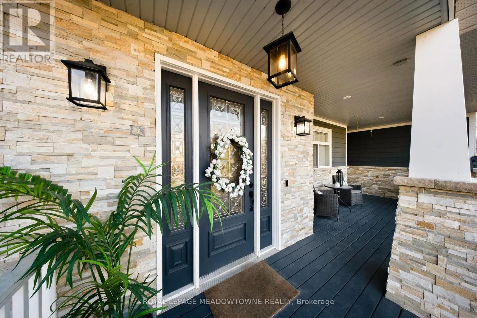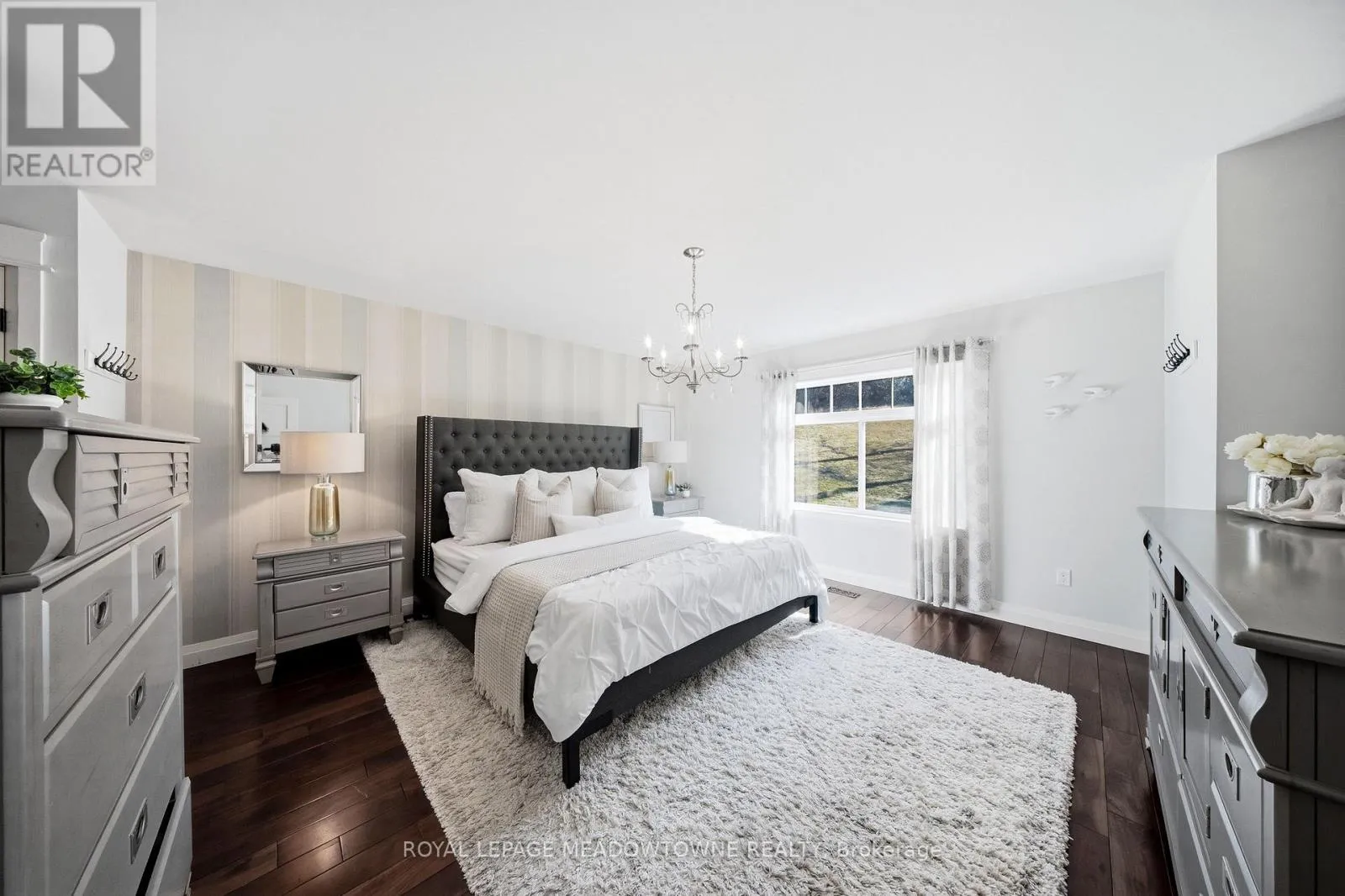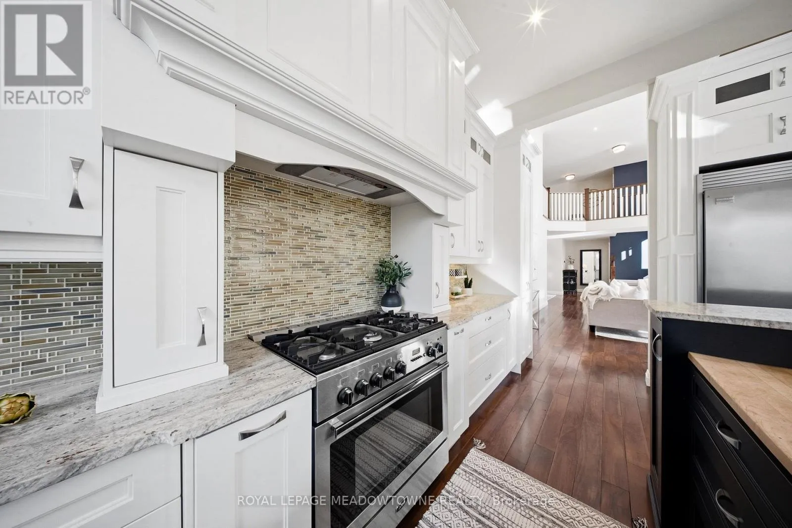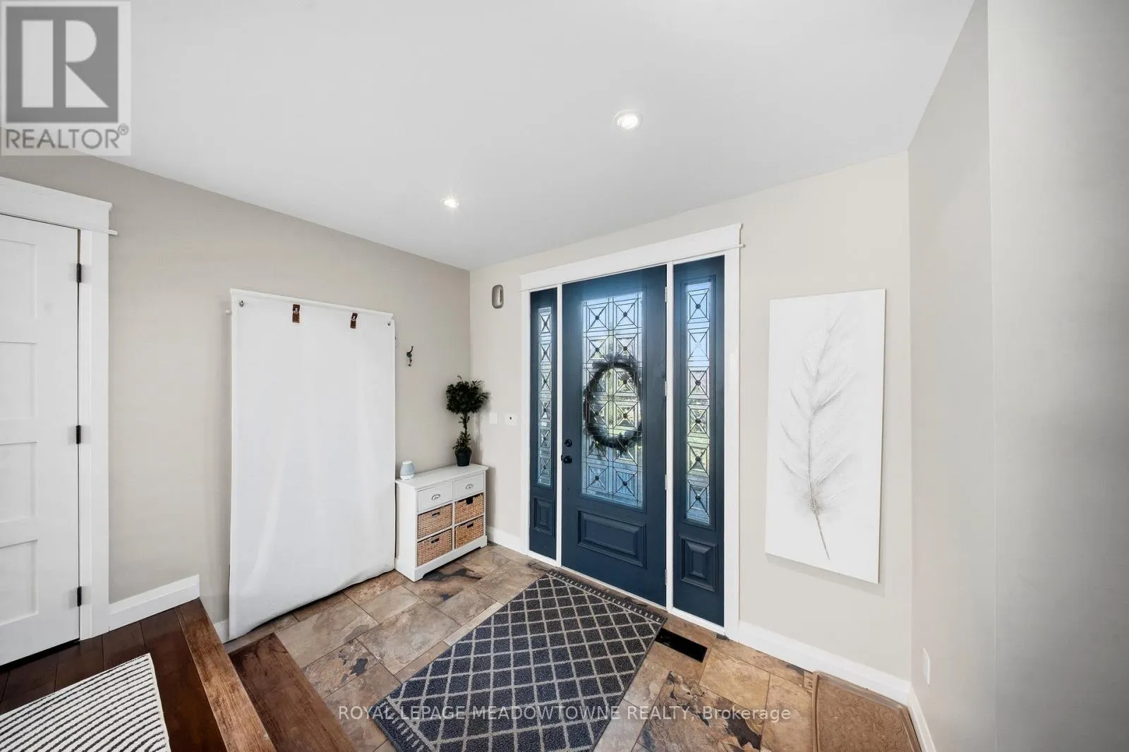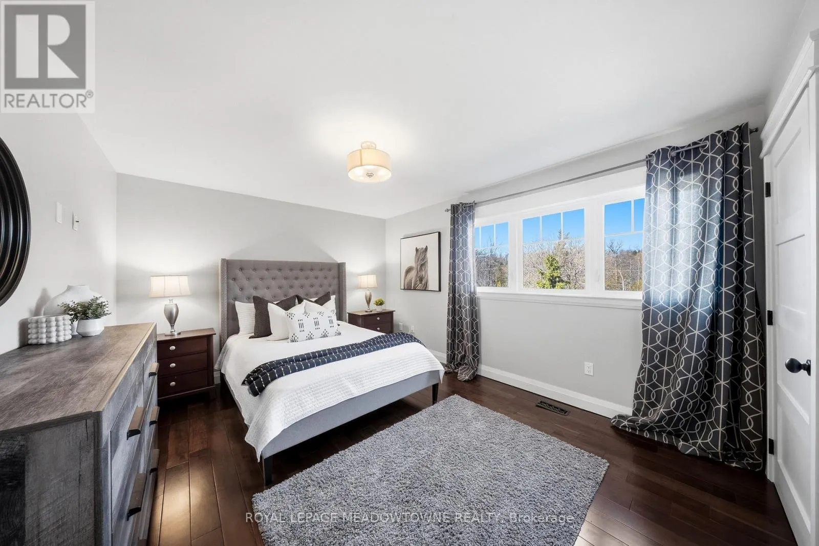 Main Street & Arborglen Drive Custom-built detached home set on a picturesque 1-acre lot backing onto conservation, offering exceptional privacy and natural views. A circular driveway provides ample parking and leads to a built-in two-car garage plus covered parking area. Welcoming covered front porch opens to a sunken foyer.The open-concept great room impresses with soaring 17-ft ceilings, a striking stone fireplace, and expansive windows that flood the space with natural light. The gourmet kitchen features high-end stainless steel appliances, a centre island with built-in wine rack and breakfast bar, and is combined with the dining area with walkout to a large raised deck-ideal for entertaining.Main floor highlights include a private office, perfect for working from home, and a spacious primary retreat with his and hers closets, a 5-piece ensuite, and serene ravine views. Above the garage, a separate living space offers a family room with cathedral ceiling, bedroom, and ensuite-perfect for guests or extended family.The second level is accessed by an open staircase overlooking the great room and features three additional bedrooms, all with ensuite access. A fully finished walk-out lower level includes an in-law suite with its own bedroom, kitchen, and bathroom, providing excellent multi-generational living potential.Ideally located in the heart of Georgetown, close to the hospital, fairgrounds, The Club at North Halton, and an abundance of scenic paths and trails. (id:27476)