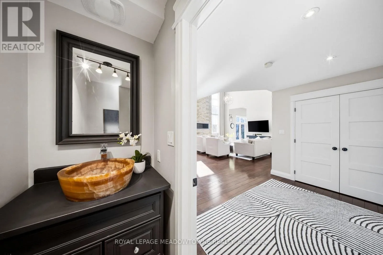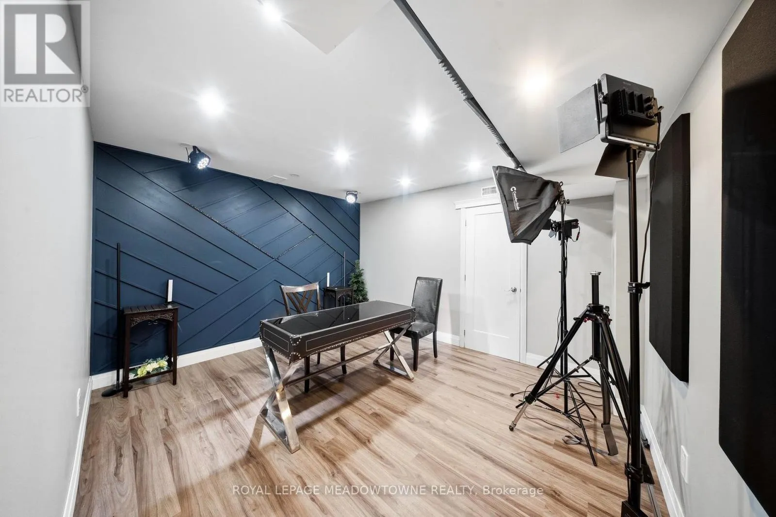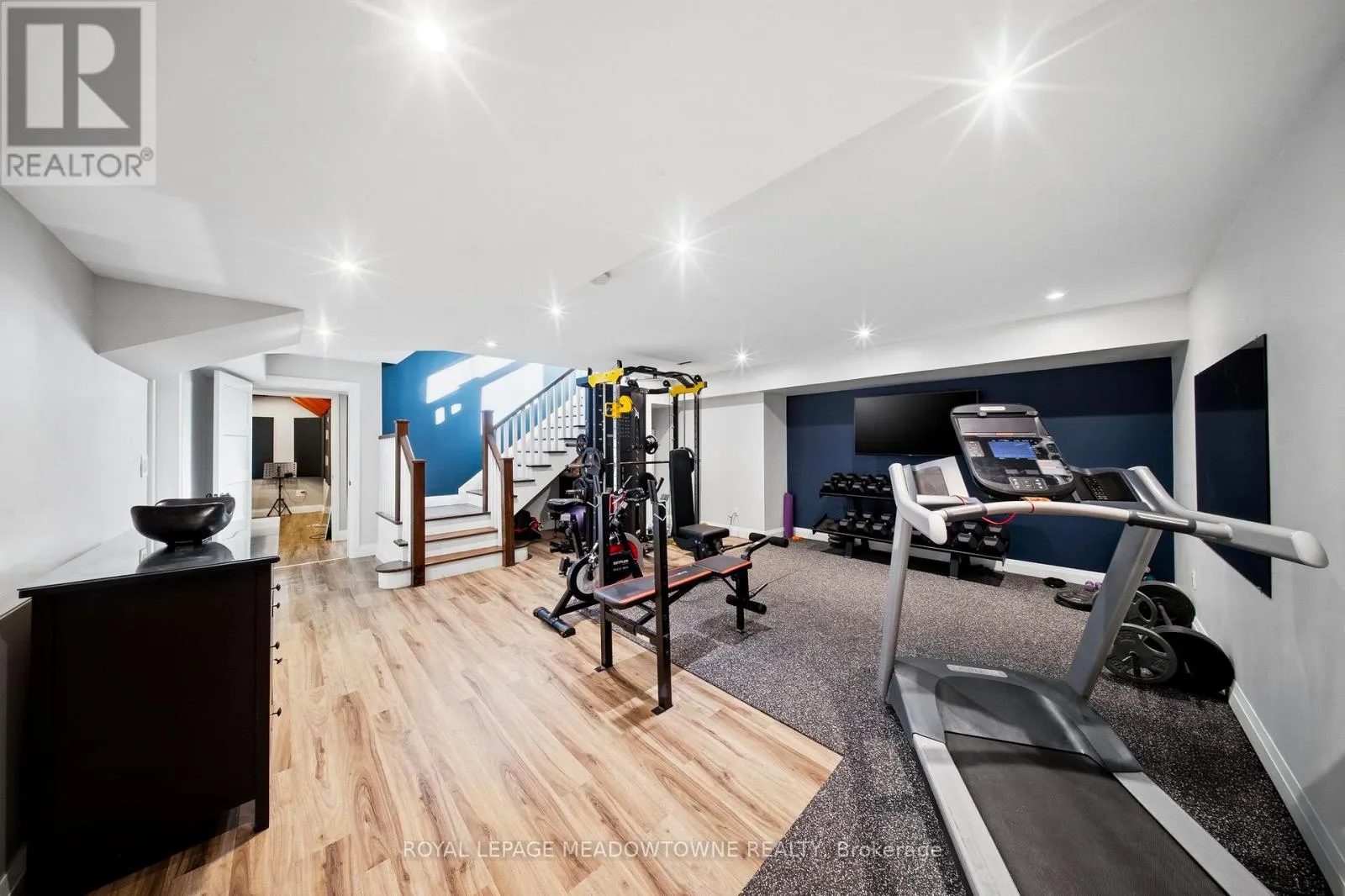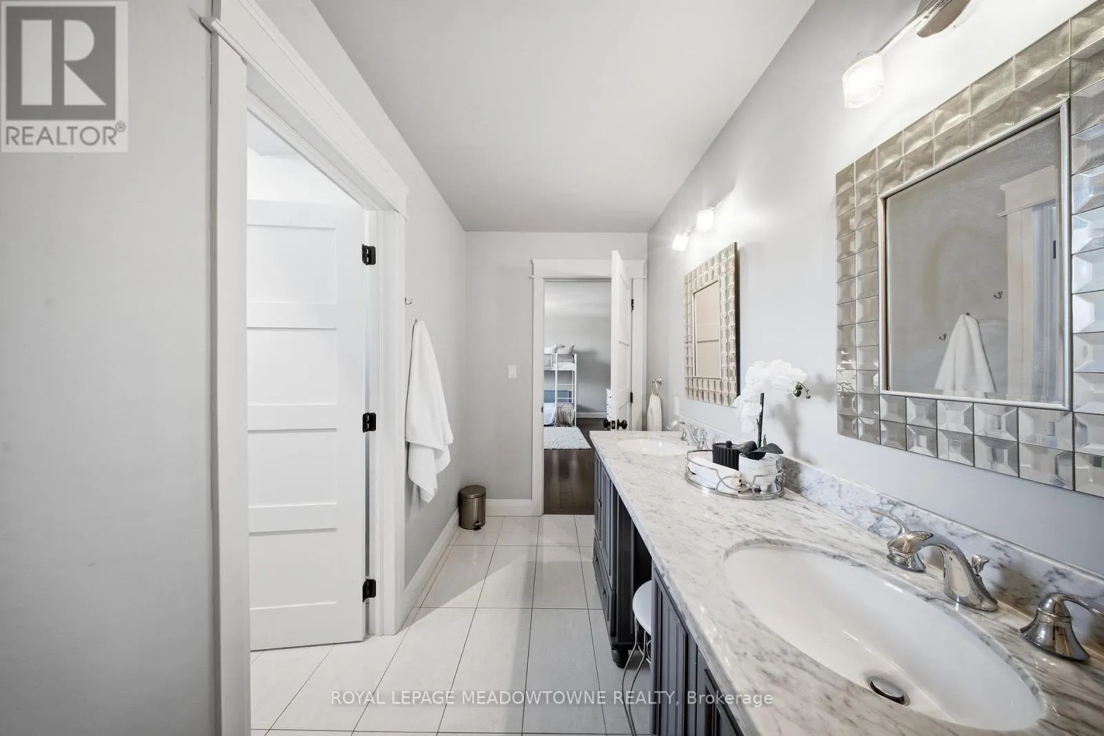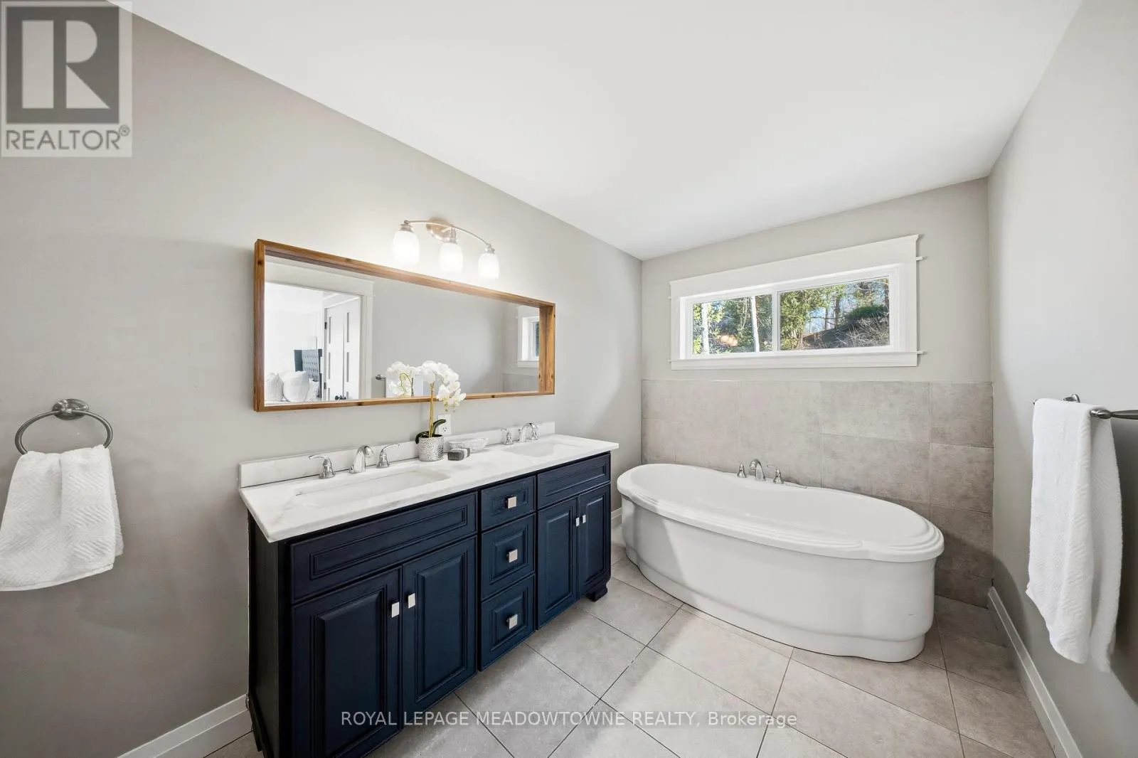 Main Street & Arborglen Drive Custom-built detached home set on a picturesque 1-acre lot backing onto conservation, offering exceptional privacy and natural views. A circular driveway provides ample parking and leads to a built-in two-car garage plus covered parking area. Welcoming covered front porch opens to a sunken foyer.The open-concept great room impresses with soaring 17-ft ceilings, a striking stone fireplace, and expansive windows that flood the space with natural light. The gourmet kitchen features high-end stainless steel appliances, a centre island with built-in wine rack and breakfast bar, and is combined with the dining area with walkout to a large raised deck-ideal for entertaining.Main floor highlights include a private office, perfect for working from home, and a spacious primary retreat with his and hers closets, a 5-piece ensuite, and serene ravine views. Above the garage, a separate living space offers a family room with cathedral ceiling, bedroom, and ensuite-perfect for guests or extended family.The second level is accessed by an open staircase overlooking the great room and features three additional bedrooms, all with ensuite access. A fully finished walk-out lower level includes an in-law suite with its own bedroom, kitchen, and bathroom, providing excellent multi-generational living potential.Ideally located in the heart of Georgetown, close to the hospital, fairgrounds, The Club at North Halton, and an abundance of scenic paths and trails. (id:27476)