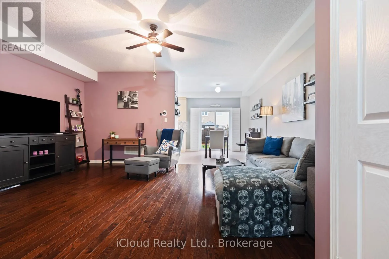 Cross Streets: Mountainview Rd S & #10 Side Road. ** Directions: Mountainview Rd S to Danby, East on Danby, Right on La Roche, Right on Goldham Way. Property is on the left. This cheerful townhome offers 3 bedrooms & 2 1/2 bathrooms with 1480 sq/ft ( as per Builder Plans ) in the desirable area of Georgetown South. It is close to shopping, banks, schools and all the amenities you could need and still provides quick access to #407 and #401 for commuters. The main floor is carpet free with hardwood in the Great Room and an upgraded Oak staircase with a runner leading to the upper level. Easy to care for Ceramic Tile flooring is in the entry way, the 2 pc powder room, upper level bathrooms and the kitchen with sliding patio doors. On the second level the generously sized Primary Bedroom has a 4 pc ensuite. Two additional bedrooms share the 3 pc bathroom. All the bedrooms have the comfort of broadloam and California Shutters. Access to the garage is in the front entry way and a door at the rear of the garage gives convenient access to a completely private fenced yard with a garden shed. The laundry area is located in the unspoiled basement which currently provides tons of storage space but could be finished to your needs. This home is well cared for by the original owner and looking for a new family. (id:27476)