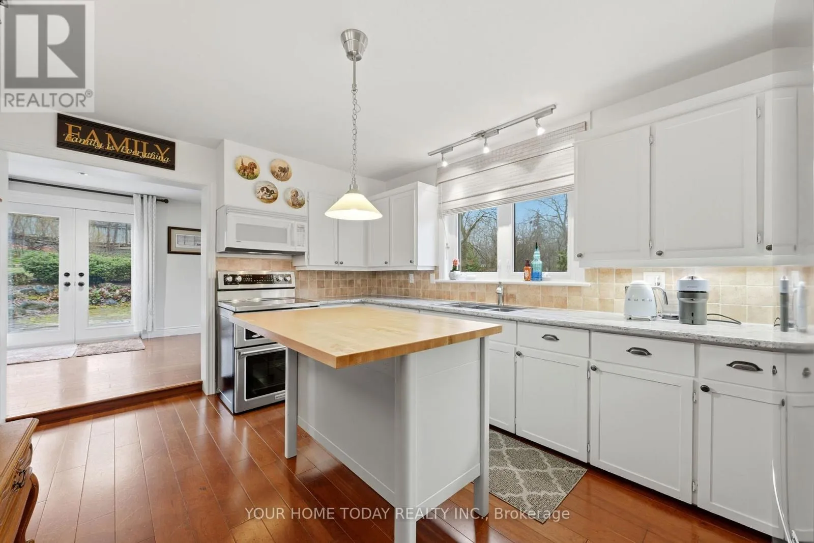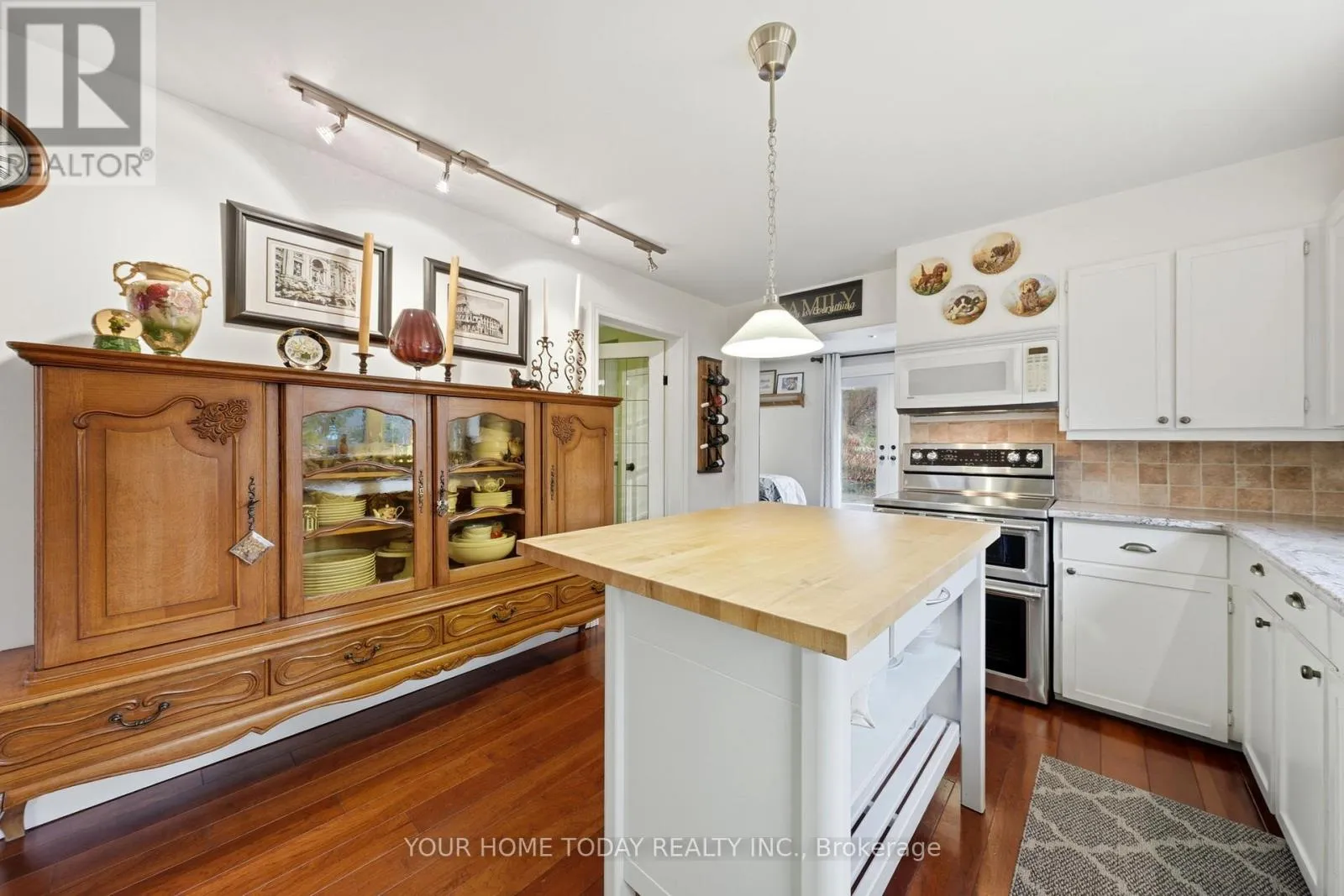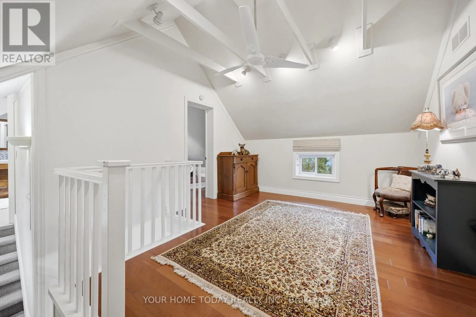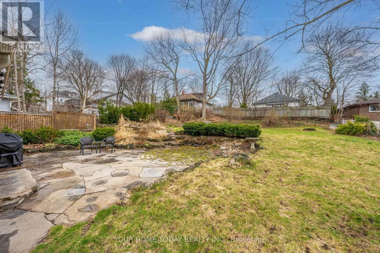 Highway 7 and Queen Century Charm, Huge Lot and Amazing Location - a Win, Win, Win! Set well back from the road on a huge mature lot of almost 1/3 of an acre, this charming and beautifully updated home offers privacy, character and an unbeatable location just steps to the GO. A large double driveway with parking for up to 6 cars adds rare convenience for the area. Enjoy easy access to downtown shops, seasonal farmers market, restaurants, library, fairgrounds, parks, schools and more. Inside, timeless charm meets thoughtful updates. The sun-filled living and dining room showcases original pine plank flooring and a striking gas fireplace with stone façade and mantle, beautifully anchored by built-in cabinets. The well-equipped kitchen features white shaker-style cabinetry and an island with seating, making it both functional and inviting. The main level also offers a bedroom with a distressed wood barn door and garden door walkout to the incredible private backyard - a true outdoor retreat with flagstone patio, fabulous perennial gardens and plenty of space to relax, entertain or let kids and pets roam. A combined laundry and 3-piece bathroom complete the level. Upstairs, you'll find two character-filled bedrooms, a lovely 3-piece bathroom, and a unique family room with vaulted beamed ceiling, adding warmth and personality you just don't get in a cookie-cutter house. The unfinished basement provides additional storage and utility space. (id:27476)