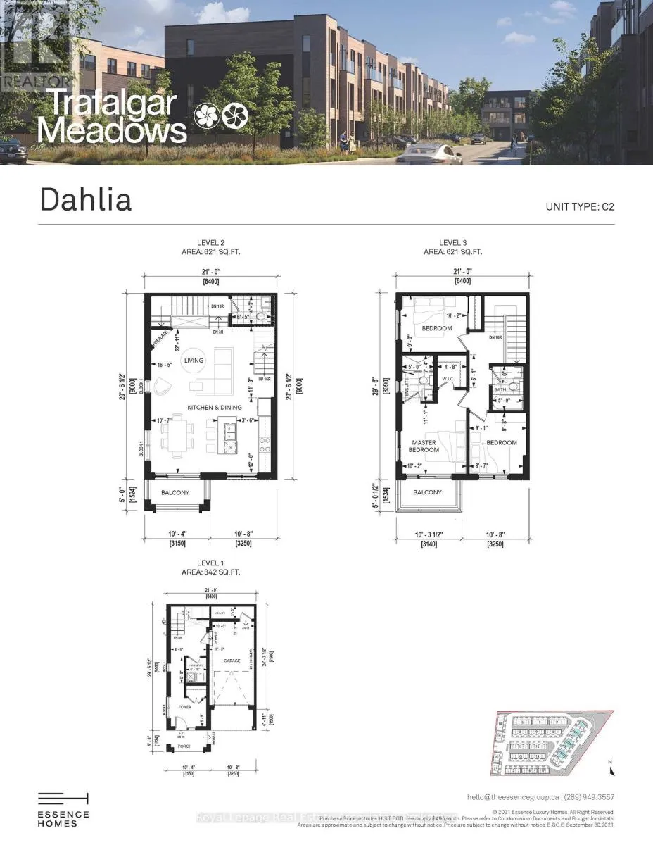 Cross Streets: TRFALGAR RD/SIDEROAD 17. ** Directions: TRAFALGAR RD/SIDEROAD 17. Move in this summer to Trafalgar Meadows, a brand-new community in the heart of Georgetown where modern design meets everyday convenience. This stylish 3-bedroom, 2.5-bathroom end-unit townhome offers 1,583 sq. ft. of thoughtfully designed living space, with a bright, open-concept layout that connects the kitchen, dining, and living areas for comfortable everyday living and entertaining. Approx. 9-ft ceilings, large windows, a fireplace, a balcony off the dining area, and clean contemporary finishes give the home a fresh, elevated feel. Upstairs, you'll find three generously sized bedrooms, including a primary retreat with a walk-in closet, 4-piece ensuite, and private balcony, plus an additional 4-piece bathroom. A concrete front porch and parking for two vehicles add to the home's comfort and practicality. Ideally situated in Georgetown, this home is moments from downtown shops, restaurants, and the seasonal farmers' market, and steps to The Club at North Halton and Trafalgar Sports Park. Enjoy nearby trails, green space, the Gellert Community Centre, excellent schools, shopping at Toronto Premium Outlets, and quick access to Highway 401. A rare opportunity to own a brand-new home in a growing community that offers the perfect balance of small-town charm and modern living. (id:27476)