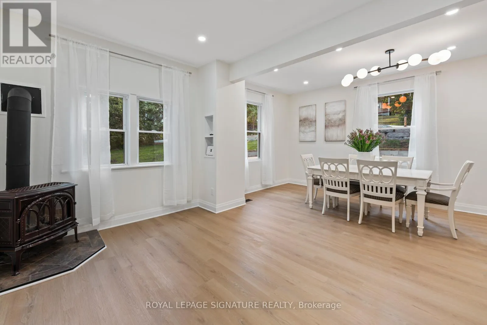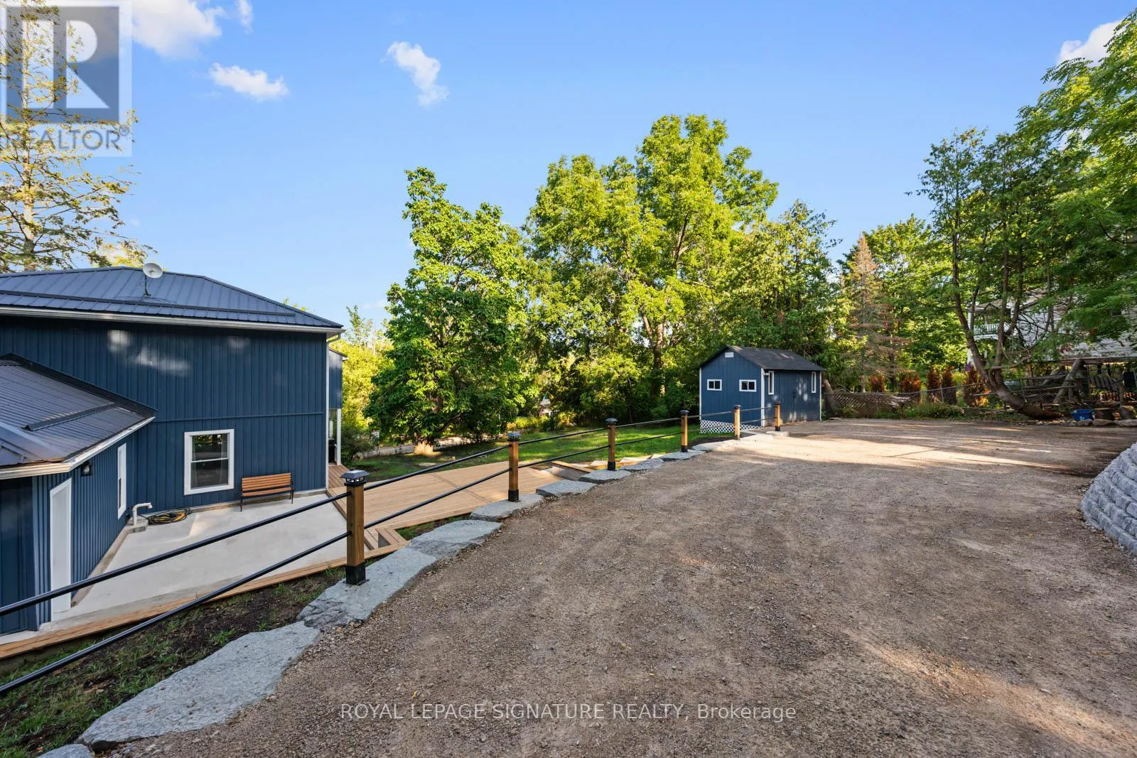 Plank Rd/ Kelly Rd Location, Location, Location! This fully renovated modern 2-storey century home in the charming village of Gores Landing blends timeless character with contemporary style - inside and out. Featuring a sleek white glossy kitchen with stone backsplash,wooden countertops, and Whirlpool stainless steel appliances, this home offers a bright and open main floor with 9' ceilings,top-quality 9mm vinyl flooring, 5.5" baseboards, pot lights, and modern doors, hardware, and closets.Enjoy contemporary bathrooms, a cozy covered front porch, and an entertainer's dream 20' x 22' wooden deck plus 20' x 14'cement patio. Major upgrades include a metal roof, reinforced foundation with steel posts,all new siding and skirting (2025), 50"blown-in attic insulation, updated plumbing, custom-built blue shed 10 FT x 16 FT, Armour stone retaining wall supporting driveway (2025-$30K)7-car driveway, high-speed LTE internet & more(See List Of Upgrades Attached.)Set on a large, private, fully fenced treed lot with seasonal lake, marina & islands views, this property fronts on both Plank Rd and Kelly Rd with a park zone on one side. Just a short stroll to the water's edge of Rice Lake, Gores Landing boat launch, and the marina. Incredible value in a sought-after lakeside community! (id:27476)