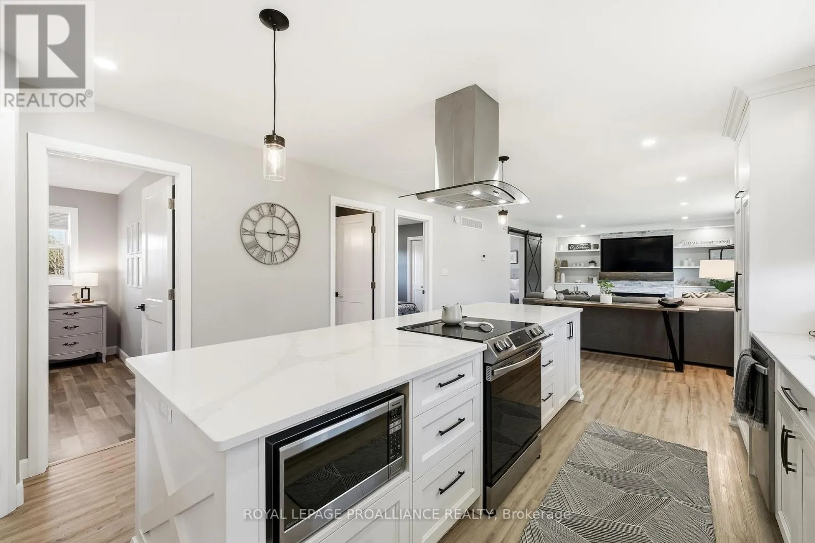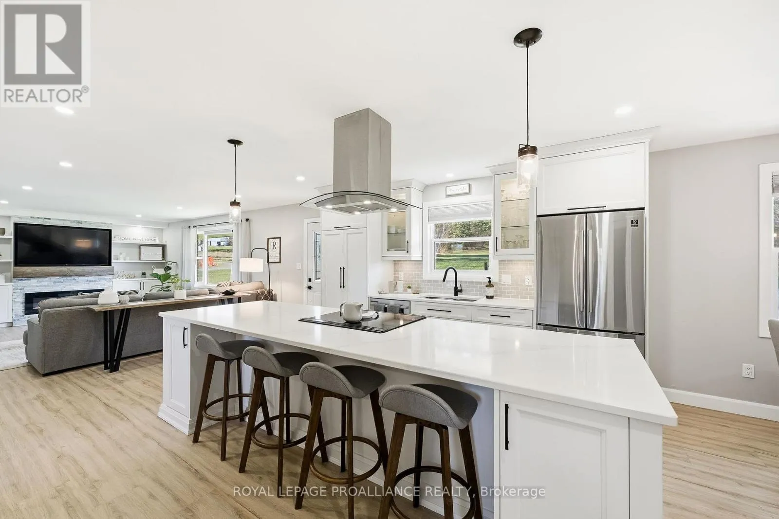 Cross Streets: Burnham St N & Wallace Jibb Rd. ** Directions: Head North on Burnham St N from Dale Rd. Welcome to 3810 Burnham St N, a beautifully updated bungalow that blends the peace of country living with the convenience of being just minutes from town in a highly sought-after community. This impressive 3+1 bedroom, 2-bath home with an attached 1-car garage sits on a well maintained 1-acre lot, offering an abundance of usable outdoor space to relax, play and enjoy. Step inside to a stunning open-concept main floor designed with both comfort and entertaining in mind. At the heart of the home is a dream kitchen, anchored by a 11ft island with breakfast bar, quartz countertops, custom cabinetry, stainless steel appliances, and pantry. The adjoining living room is equally impressive, featuring a striking media wall with stone and wood accents, a cozy fireplace, and built-in cabinetry for additional storage. The primary bedroom offers his and hers closets and a walkout to a private deck overlooking the green space behind making it an ideal spot to enjoy your morning coffee. Two additional bedrooms and a tastefully designed bath with a double-sink vanity and tiled shower complete the main level. The fully finished basement provides a generous extension of living space, including a large rec room warmed by a cozy and effective wood stove, a full bath, laundry room, home gym, and an additional bedroom, perfect for guests or a home office. The attached garage easily accommodates a vehicle while still providing extra storage. Outside, hobbyists and professionals alike will appreciate the opportunities with the approximately 38ft x 17ft detached shop, complete with its own driveway and hydro meter. (id:27476)