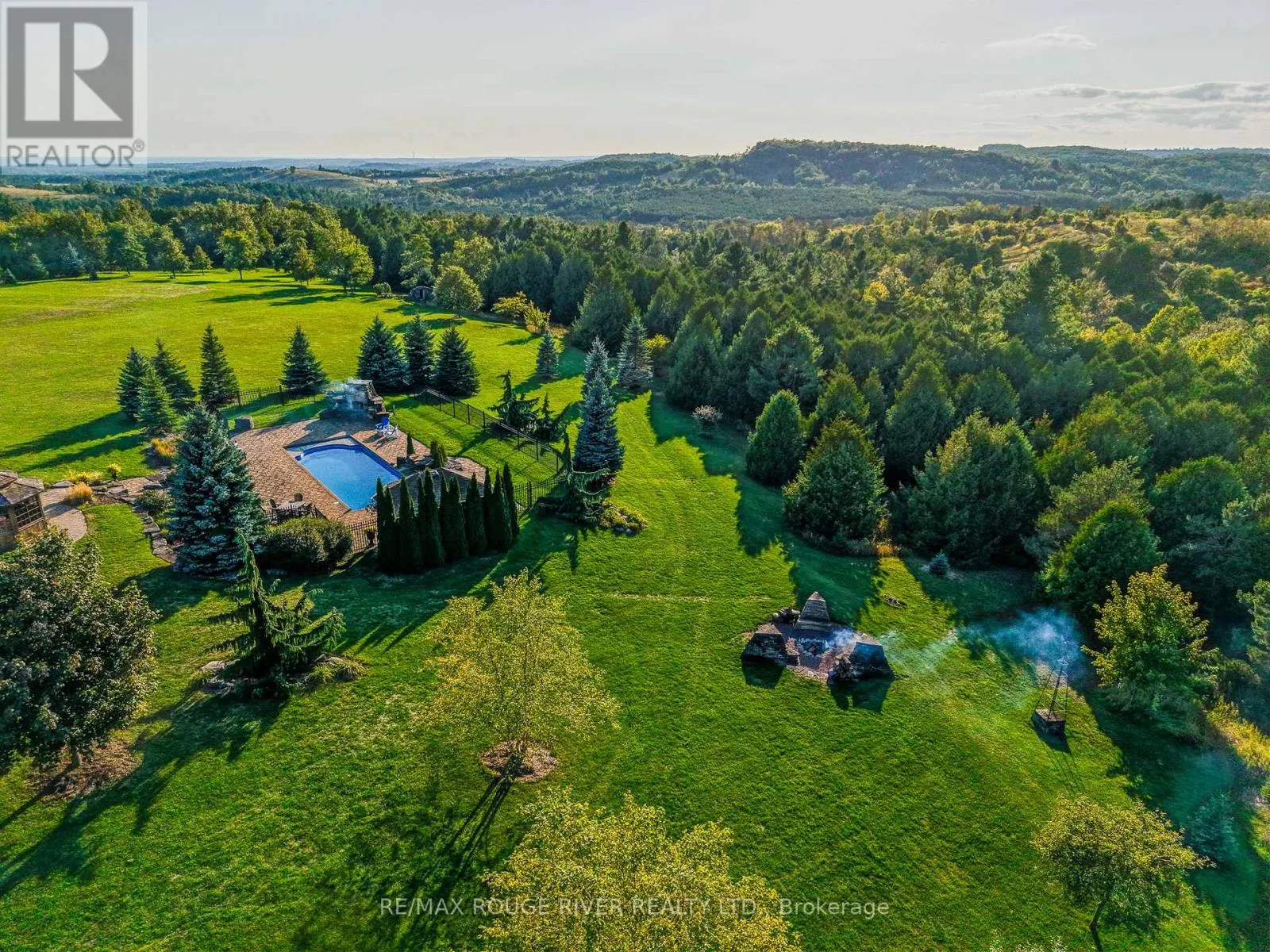 Cross Streets: Harwood Rd. ** Directions: Off of Harwood Rd. An Exceptional Country Estate in Northumberland County. Set on 24 acres of rolling countryside with uninterrupted 360-degree views, this distinguished estate offers a rare balance of architectural refinement and natural beauty, just minutes north of Cobourg and within comfortable reach of Toronto. Thoughtfully designed and built to exacting standards, the 11,000 sq. ft. residence (7,500 sq. ft. above grade) blends timeless proportions with modern comfort. The arrival unfolds across manicured grounds featuring orchards, curated stonework, and landscape installations by renowned artisan John Shaw-Rimmington, creating a setting that feels both composed and serene. Expansive stone terraces surround a resort-style pool, ideal for entertaining or quiet retreat. A private trail network winds through the property, leading to a hilltop vantage point with sweeping views toward Lake Ontario. Inside, the home is defined by volume and balance. A dramatic great room with 16-foot ceilings, marble columns, and a statement fireplace anchors the principal living spaces, complemented by more intimate rooms for everyday living. A Downsview-designed chef's kitchen, butler's pantry, and adj0oining family room offer a seamless blend of form and function. Seven bedrooms and six baths include a private two-bedroom suite with its own garage-ideal for guests or extended family. The primary suite features a dressing room, spa-inspired ensuite with heated floors. Geothermal heating and cooling, a heated three-car attached garage, a separate two-car garage/workshop, and curated designer finishes complete this quietly exceptional estate-well suited as a refined full-time residence or an elegant country retreat for local, GTA and international buyers seeking privacy, space, and distinction. (id:27476)