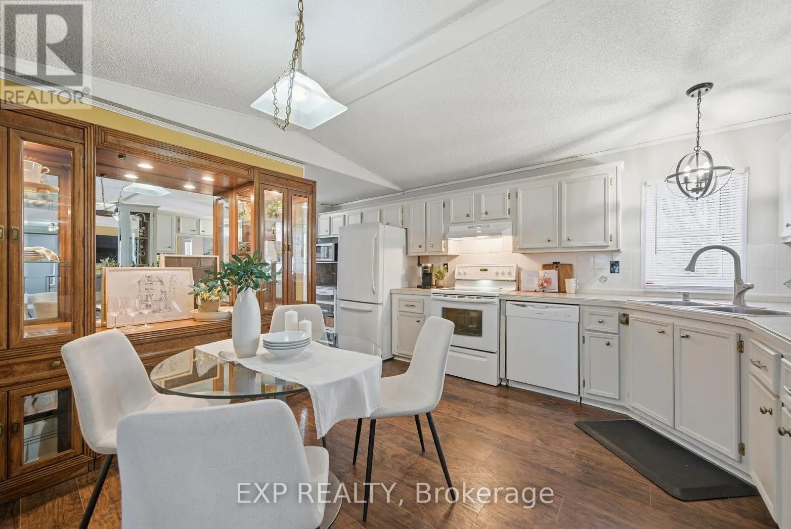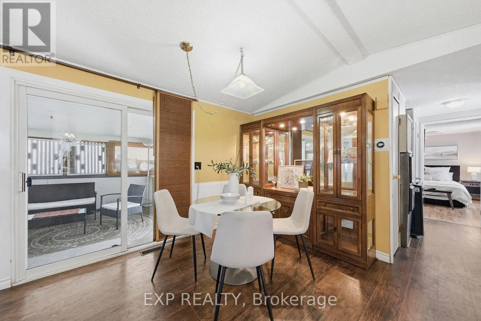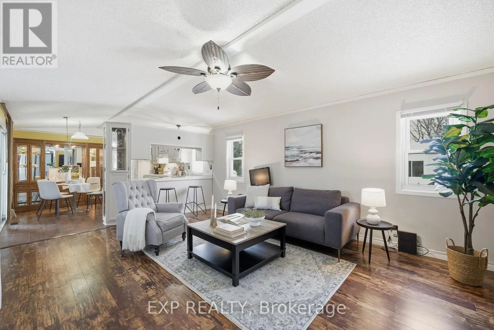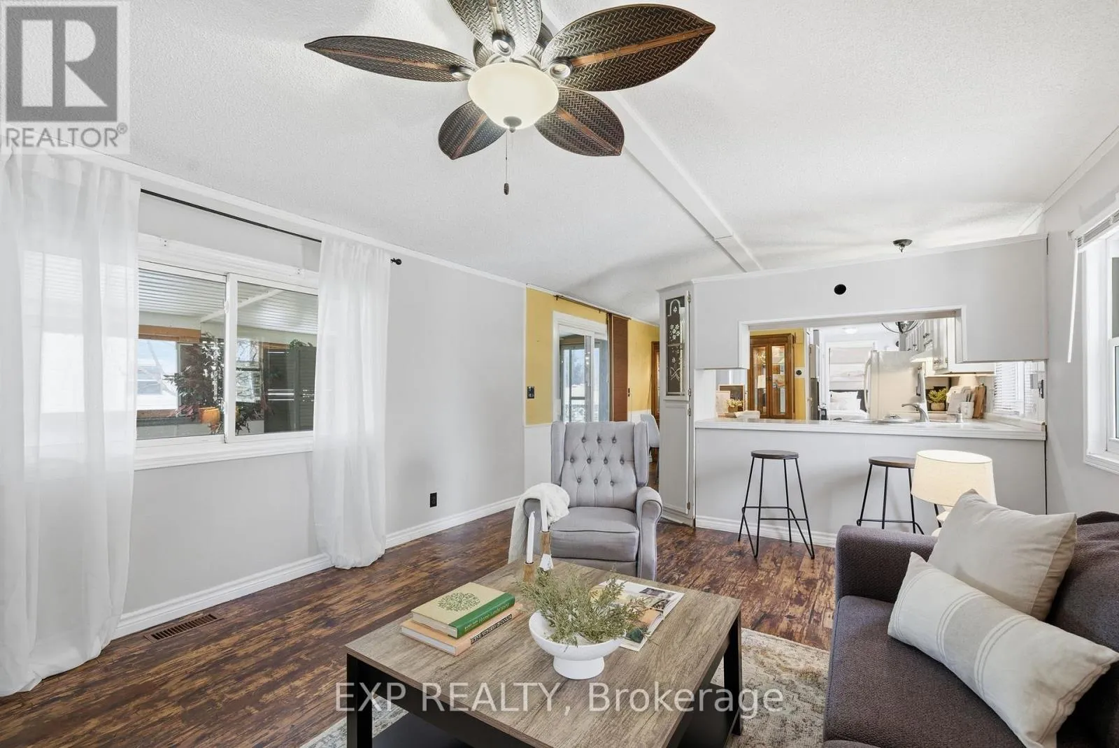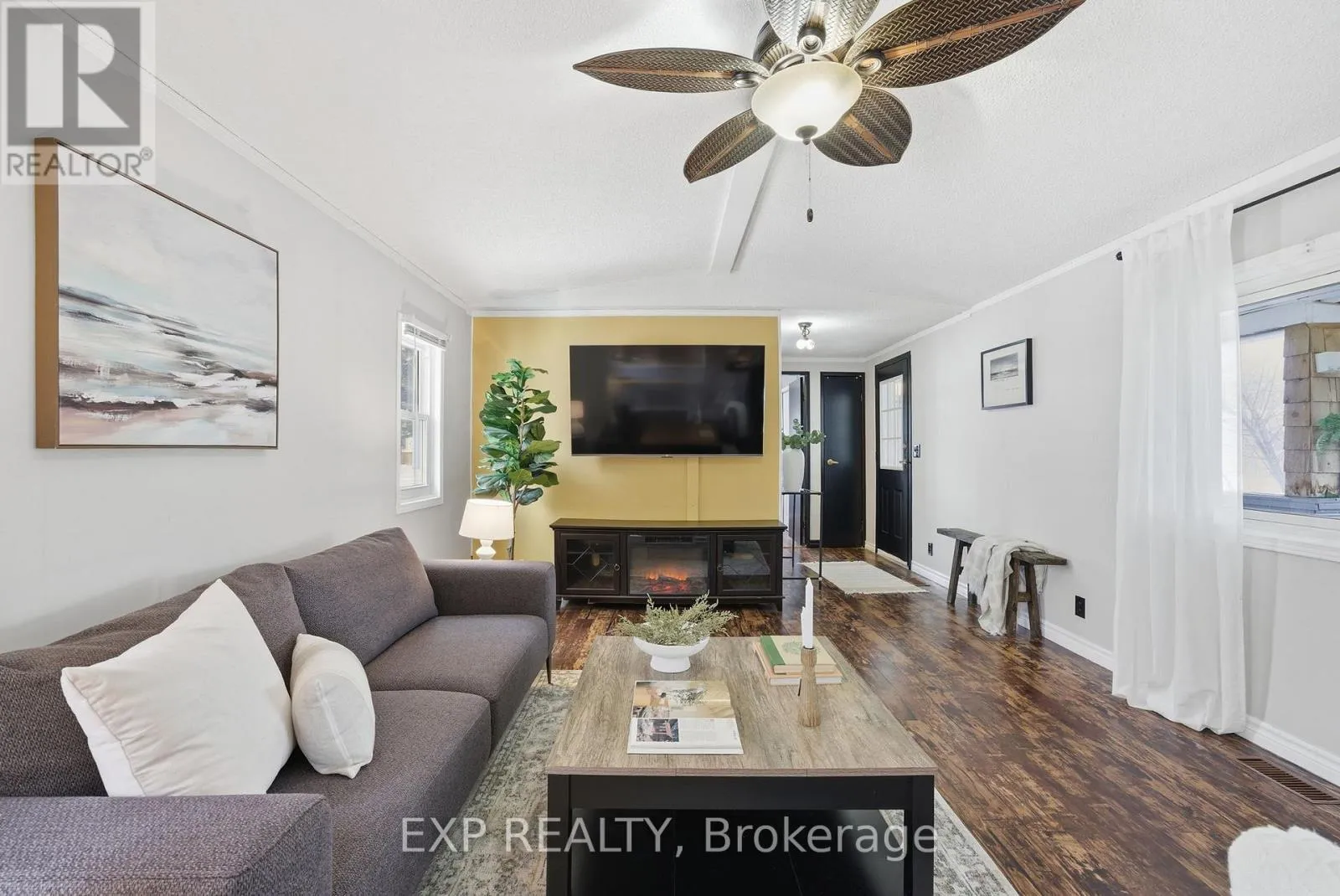Cross Streets: Basher Dr. ** Directions: From HWY. 401, exit north onto Burnham St. Turn left onto Telephone Rd. Turn right onto Basher Dr. Follow until you reach the property. Welcome to 509 Cunningham Crescent, a well-maintained bungalow-style mobile home offering over 900 sq. ft. of comfortable living space in a quiet, friendly neighbourhood just minutes from the amenities of Cobourg and Port Hope. This 2-bedroom, 2-bathroom home features a thoughtful layout designed for everyday living and entertaining. Walk in through the large screened-in porch before entering the bright, open-concept living area, where the spacious living room flows effortlessly into the eat-in kitchen, creating a warm and inviting central hub of the home. Set on one of the most private lots in the neighbourhood, the property is surrounded by mature trees and beautifully maintained gardens, offering peaceful views and exceptional outdoor enjoyment. The fully fenced yard is ideal for pets, while the fully enclosed three-season deck provides an additional space to relax and unwind. Two additional sheds offer excellent storage solutions, including one insulated shed finished with drywall, perfect for a workshop, hobby space, or extra storage. With its functional layout, private setting, and close proximity to shopping, services, and downtown Cobourg and Port Hope, this home presents an excellent opportunity for those seeking an affordable, low-maintenance lifestyle in a desirable location. (id:27476)