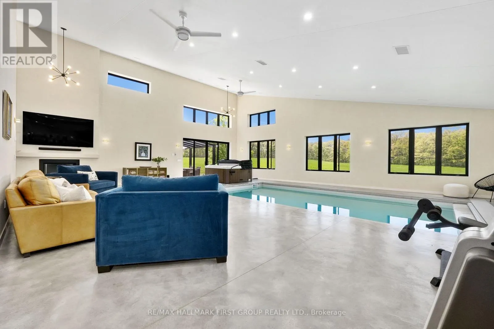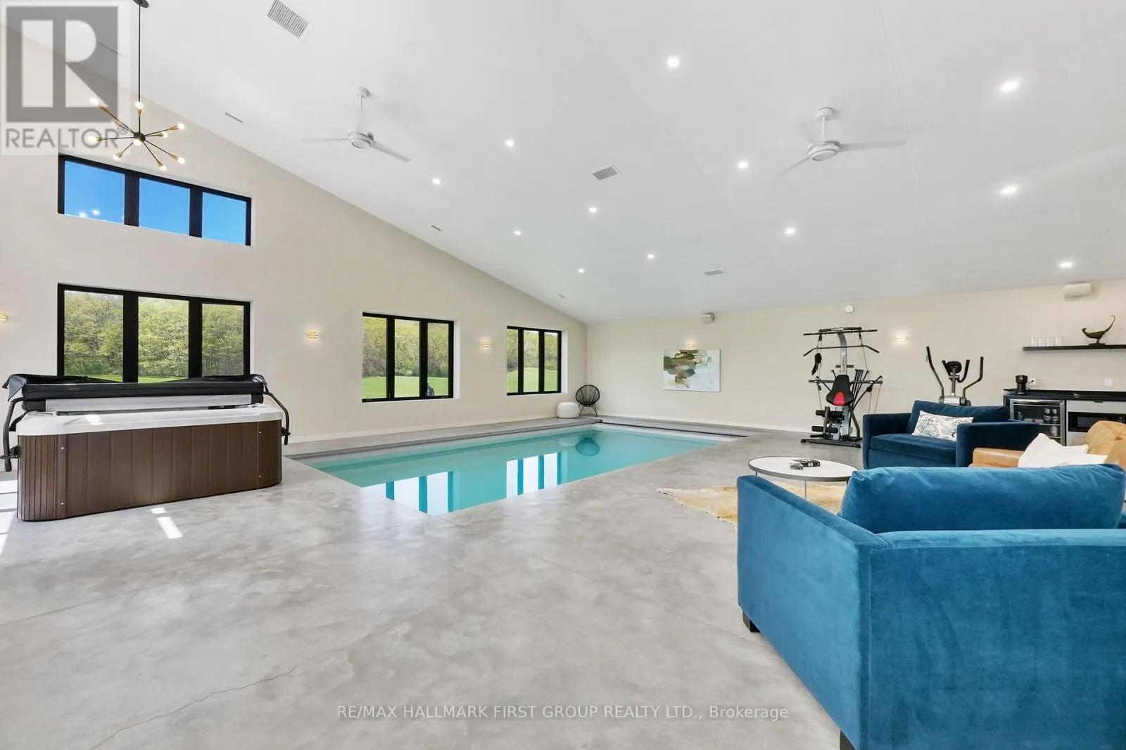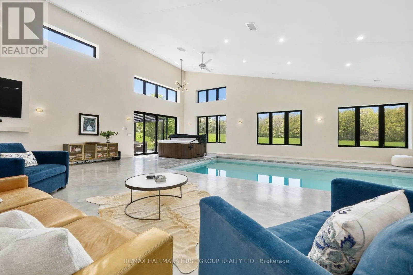Cross Streets: Harwood Rd & Oak Ridges Dr. ** Directions: Burnham St N, Right onto Beaver Meadow Rd, Left onto Harwood Rd. Set on a sprawling 23-acre estate, this striking modern residence exemplifies the perfect balance between contemporary elegance and rural serenity. Every detail has been thoughtfully curated, blending sleek architectural design with high-performance construction, including efficient ICF walls and radiant heated concrete flooring. Step into a grand, open-concept living area defined by cathedral ceilings and a dramatic wall of windows. A double-sided Napoleon propane fireplace anchors the space, connecting the living room to a sophisticated dining area adorned with modern lighting and walkout to the second-level deck ideal for outdoor entertaining. Sunlight pours into the kitchen through oversized windows and skylights, offering breathtaking views of the rolling countryside beyond and showcasing top-tier Jenn-Air appliances, striking Dekton countertops and a waterfall island with a breakfast bar. Resort-style living awaits in the private attached oasis. A 14x24 heated indoor saltwater pool, soaring 20-foot ceilings, expansive windows, a hot tub, and space for a lounge or home gym create an oasis-like experience, ideal for year-round relaxation and entertaining. The primary suite is a tranquil retreat featuring a walk-in closet and spa-inspired ensuite with dual vanity, freestanding soaker tub, and glass shower enclosure with steam shower. An additional bedroom and two bathrooms round out the level. The finished lower level adds flexible living space, including a sprawling bedroom suite with sitting area, semi-ensuite bath, and walkout to a covered patio. A massive recreation room with a walk-in closet offers potential for a future fourth bedroom. Enjoy a lower covered patio area, fenced yard, and firepit area, perfect for summer nights under the stars. Additional highlights include a radiant heated 4-car garage and a 16x24 barn for versatile use. This one-of-a-kind property is the pinnacle of modern rural luxury. Just under 15 minutes to Cobourg and Highway 401. (id:27476)