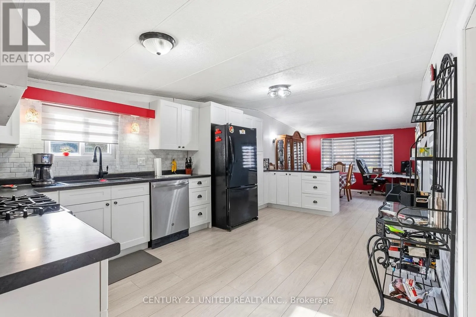 Cross Streets: Telephone Road. ** Directions: Telephone Road in between Cobourg and Port Hope. Sandown Park is the second park heading west. 2 bedroom Northlander mobile. Original mobile built in 1975 and has had a newer familyroom addition 11.8x22.5. Open concept kitchen, dining and living room. Separate laundry with utility room. Appliances as well of the gas furnace have been replaced. Private backyard backing onto a farmers field. Move in condition. Good neighbours on either side. All Buyers need to be approved by Compass Communities. The monthly park fees are: $712.13: $680 for land lease + $32.13 for 1/ 12 of taxes = $712.13 There is a $45 monthly water charge also payable on top of park fees. (id:27476)