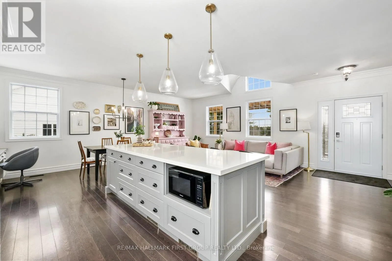 Cross Streets: CR2 & Pentecostal Rd. ** Directions: CR2 heading East, property on Left after Pentecostal Rd. Perched atop a scenic hill just outside Cobourg, this family home captures breathtaking panoramic views of the rolling hills of Northumberland County and Lake Ontario. Set close to town, with the added privacy of out-of-town living, this home offers the perfect balance of convenience and peaceful country living. Overflowing with curb appeal, the property makes a striking first impression. A spacious front deck with a charming wooded pergola offers an incredible vantage point for taking in the sweeping views. Inside, bright natural light fills every room, enhancing the open-concept layout with soaring ceilings and a sun-soaked atmosphere, highlighted by a dramatic second-storey window. The well-appointed living and dining areas feature a carpet-free layout, ideal for both everyday living and entertaining. The kitchen stands out as a true centrepiece, spacious and thoughtfully designed with a large island offering prep space and storage, contemporary pendant lighting, matching appliances, ample counter and cabinet space, and a convenient built-in desk area. Just off the kitchen, a versatile mudroom or office includes walkouts to the backyard. Upstairs, three well-appointed bedrooms are complemented by a full bathroom with a double vanity and an offset subway-tile wall detail. The lower levels provide exceptional additional living space, including a bright and spacious family room with walkout, play nook, and office or games area. A further level offers a generous bedroom, full bathroom, media room, and laundry. Outdoors, the sprawling, tree-lined property is designed for enjoyment, featuring a large deck with both open and covered areas, a fire pit, and ample green space, all perfectly positioned to take in the stunning surroundings. A double-car garage, built in 2020, adds modern convenience and functionality. Easy access to amenities along Highway 2 completes this exceptional offering - privacy, space, and incredible views, all just minutes from town. (id:27476)