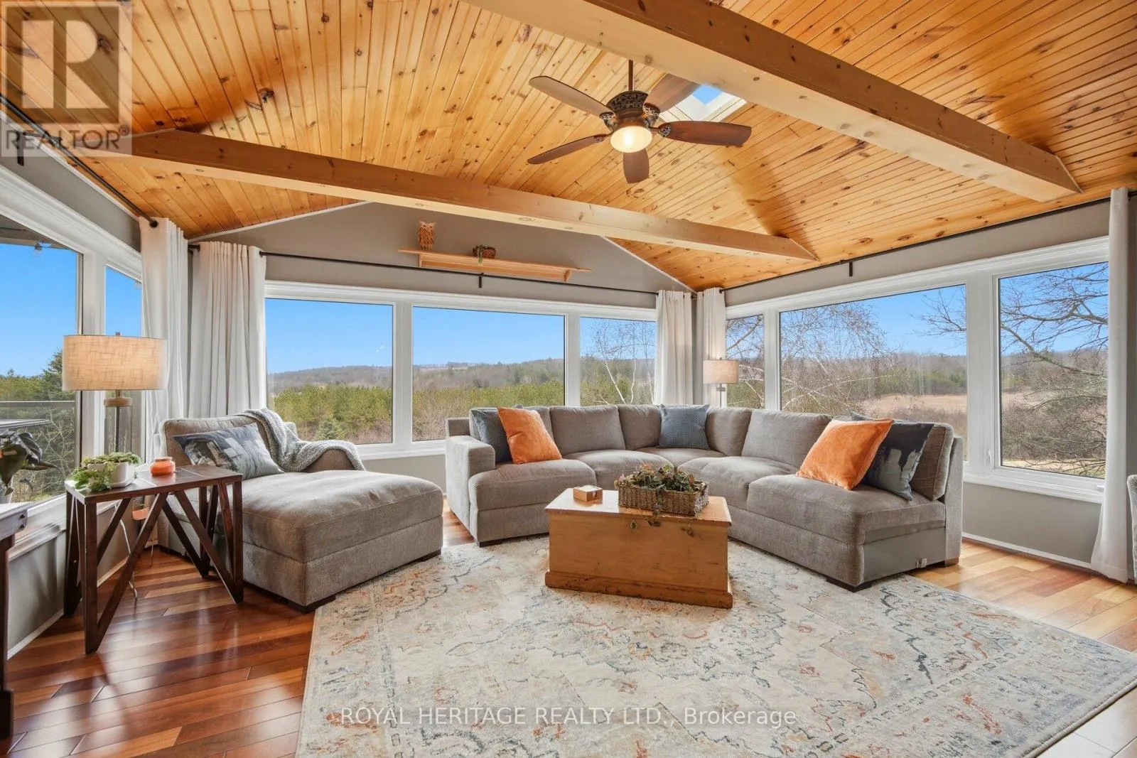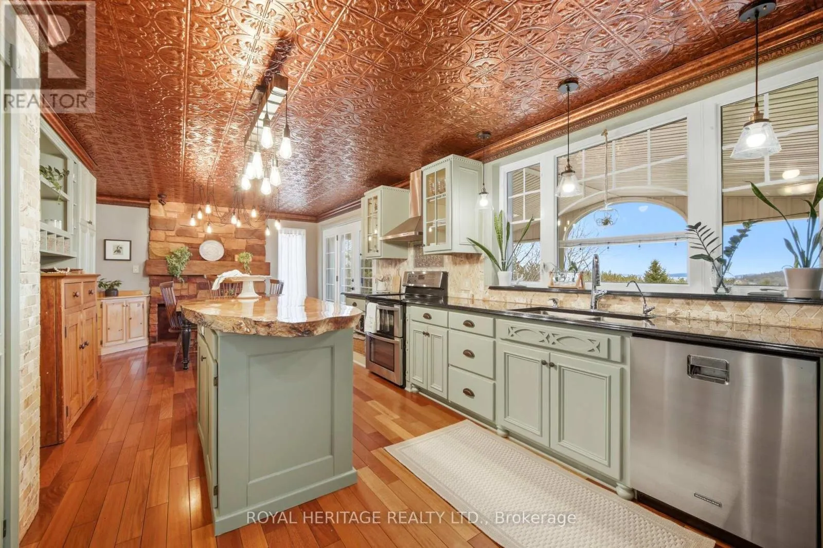 Cross Streets: Durham Reg Road 9 (Ganaraska Rd) & Oak Hills Rd. ** Directions: Ganaraska Rd (Durham Reg Rd 9) East of County Rd 28, then North on Oak Hills Rd. You will fall in love with the views of this gorgeous hillside home with easterly views over Rice Lake. The home has many unique design features which contribute to the warmth and beauty of the home. The large eat in kitchen features a custom live edge island, stainless steel appliances (incl. a double oven), beautiful ceiling detail and a walk out to a large second storey covered deck - the perfect place to take in the stunning vistas. The adjacent dining room continues the stunning ceiling detail from the kitchen. The family room has vaulted ceilings and is surrounded with windows to enjoy the lake views. The living room features a stone fireplace and cathedral ceilings. The main floor also has a powder room, mudroom and garage access. The principle suite on the 2nd floor has a gorgeous semi- ensuite washroom, walk in closet with laundry and a sitting area. There is additional bedrooms on the 2nd floor & basement. Lower level features a walk out to the large fenced in yard with fruit trees and a gate that accesses walking trails. The recreation area features a WETT certified wood stove and a wood detail on the walls that creates a warm, cabin feel that perfectly fits the surroundings. You will find a built in insulated workshop/shed outside the lower level patio great for storage of bikes/ATVs, etc.. This home also has shared deeded access To Rice Lake off of Bamsey Dr. and is close to local boat launches and the Rice Lake conservation area. (id:27476)