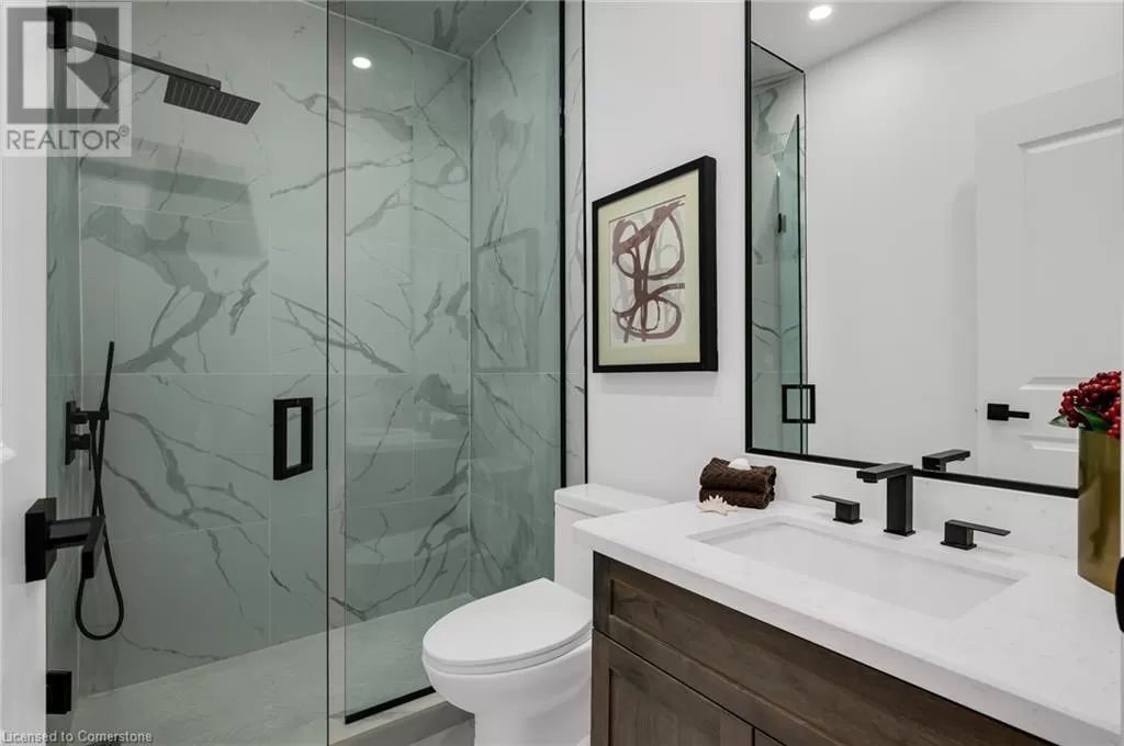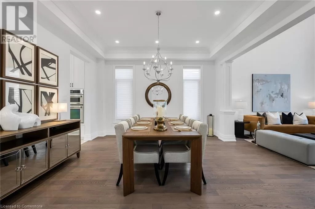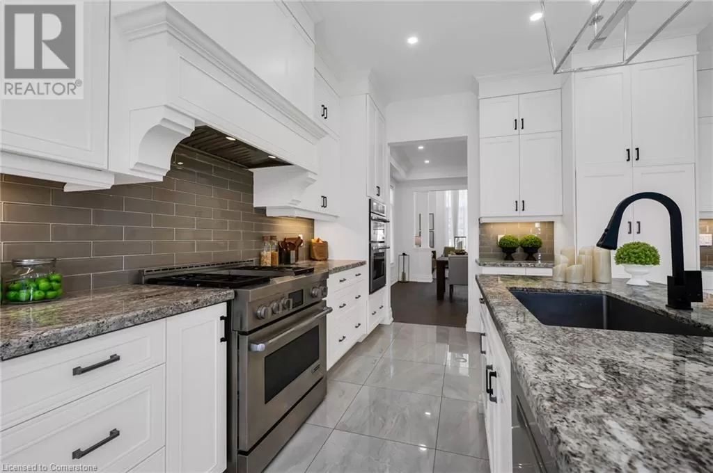 Mohawk Road to Green Ravine Drive, right turn on Legacy Lane A gem in Ancaster, the most prestigious and established neighbourhood built by Carriage Gate in 2017. Loaded with tasteful upgrades from the ceilings down to the flooring. Extra long driveway with three cars garage. Custom kitchen with high-end appliances. Hardwood flooring throughout, including the second floor. Upper level with four bedrooms, each with access to one of the three full bathrooms. Tasteful front and back landscaping includes a built-in BBQ and seating area with a fireplace. Great playground area. Garden with wifi-controlled sprinkler system and auto lighting. A high-ceiling basement gives you many potentials. Must see and Shows AAA+ (id:27476)