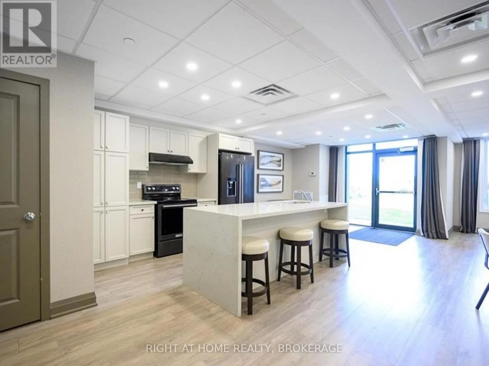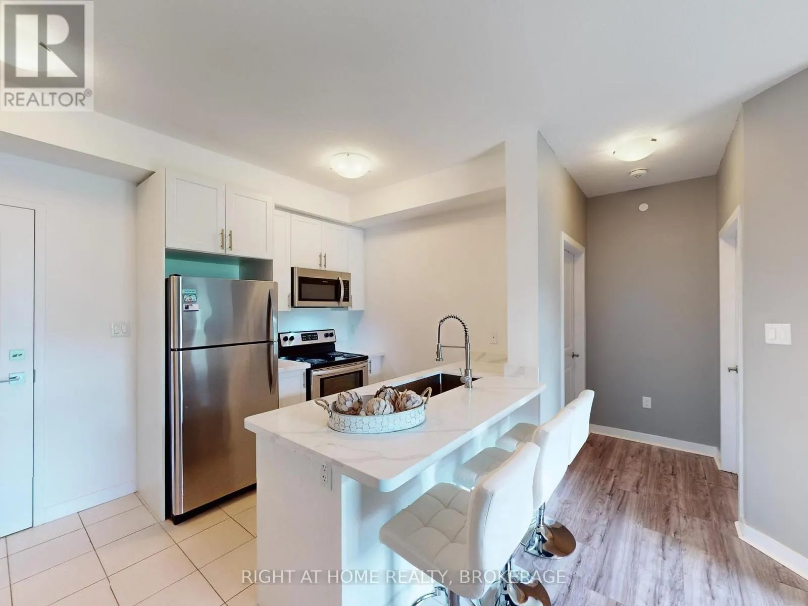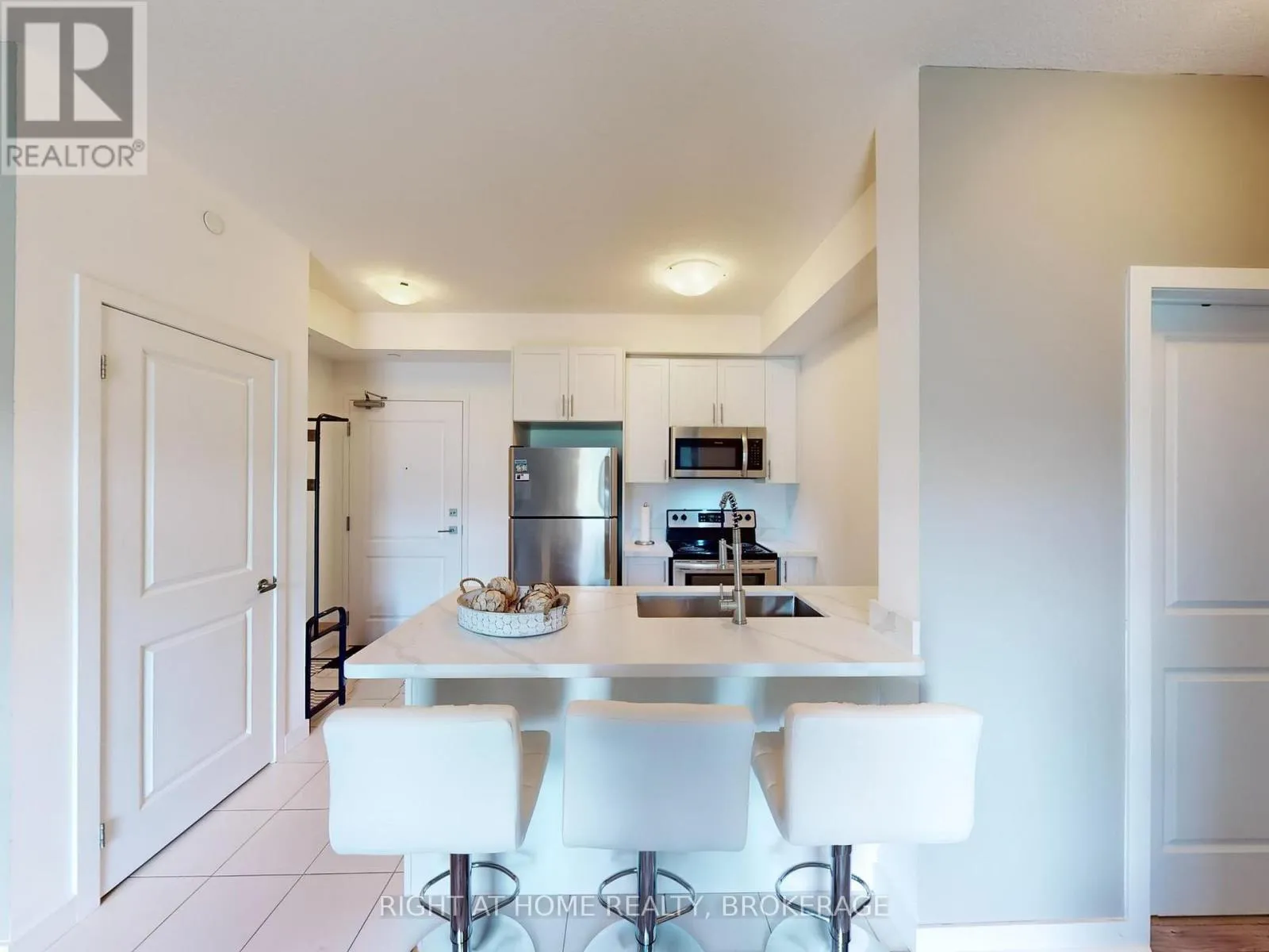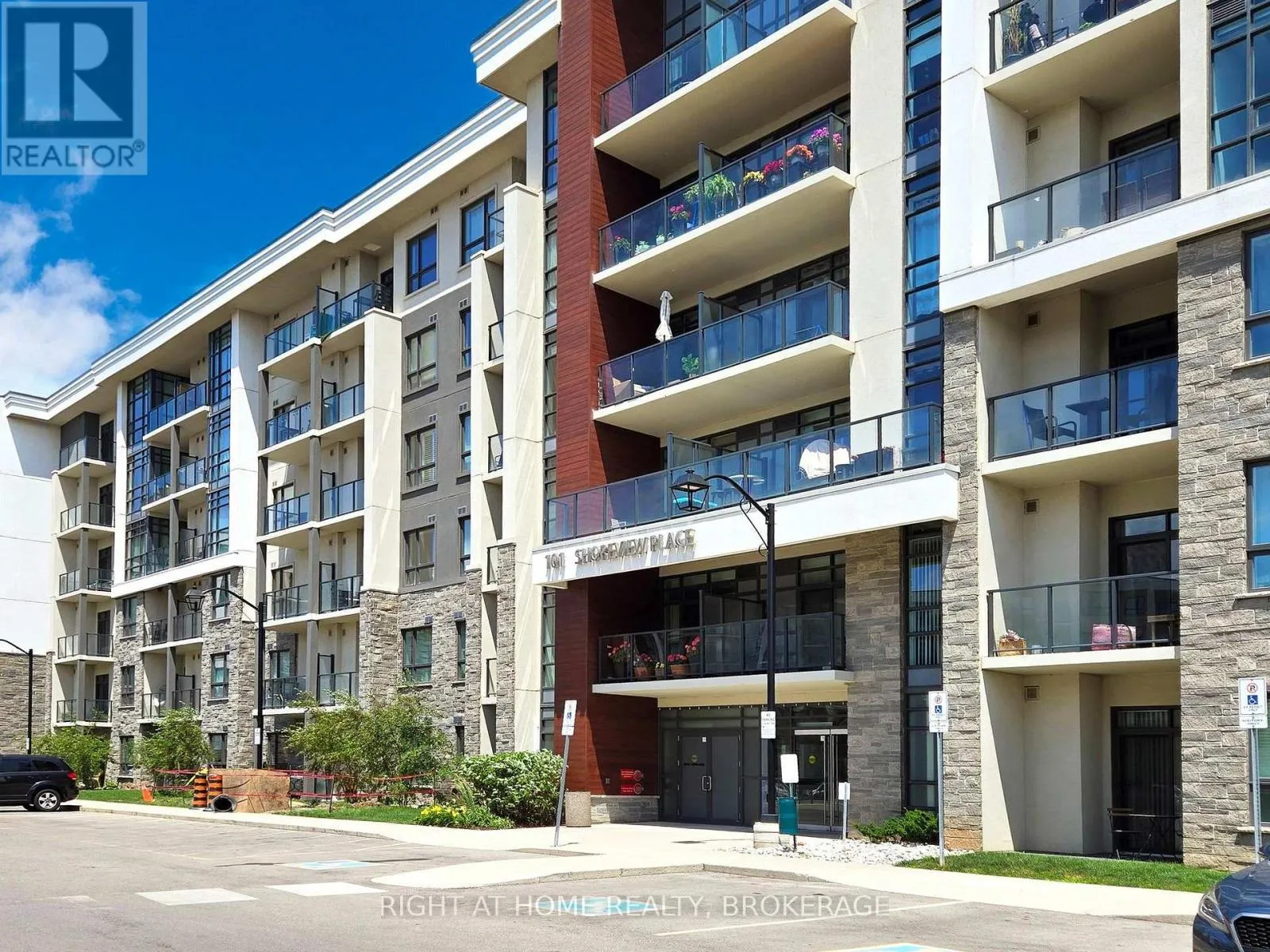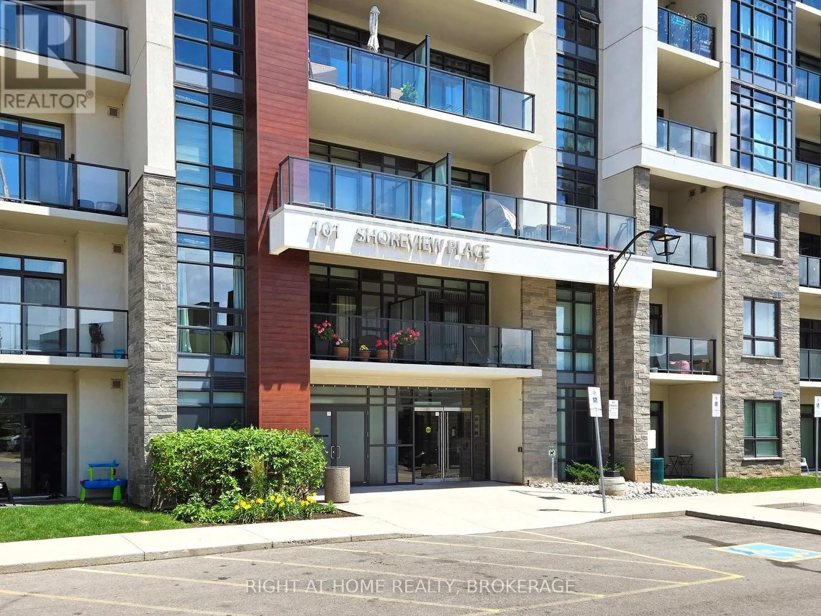 Cross Streets: North Service Rd & Fruitland. ** Directions: Take Millen Road North to Lake Ontario turn left onto Shoreview Place. Amazing 1 bed/1 bath ground floor corner unit condo with terrace located on the shore of Lake Ontario. This modern one bedroom condo features 9ft ceilings, Geo-Thermal heating and cooling, a sleek kitchen that boasts stainless steel appliances, including a fridge, stove, built-in dishwasher, and microwave, and luxurious quartz countertops gracing both the kitchen (complete with a breakfast bar) and the 4-pc bathroom. The spacious primary bedroom boasts floor-to-ceiling windows, filling the space with natural light. This unit also includes ensuite laundry, 1 private locker and 1 underground parking spot. This sleek building provides a host of amenities, including a fitness center, a welcoming party room, a rooftop terrace with stunning views, secure bike storage. All within steps from the beach and a waterfront trail for an active lifestyle including leisurely walks, runs or bike rides. Perfect for nature lovers and those seeking an active lifestyle while enjoying the conveniences of city living. Ideal Location For Commuters, Only Minutes To Qew And Confederation Go Station. Don't miss out this place. (id:27476)
