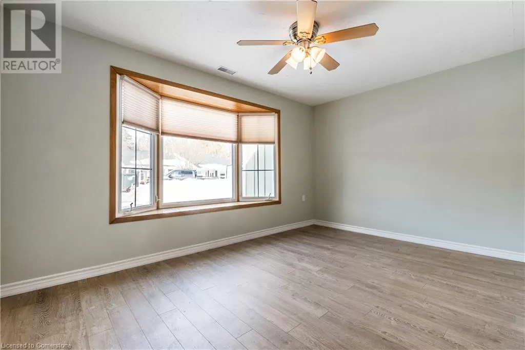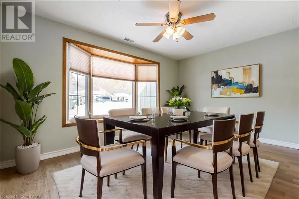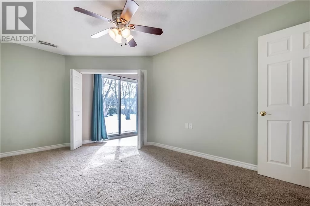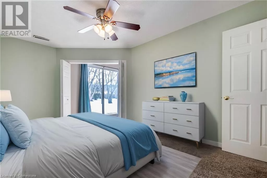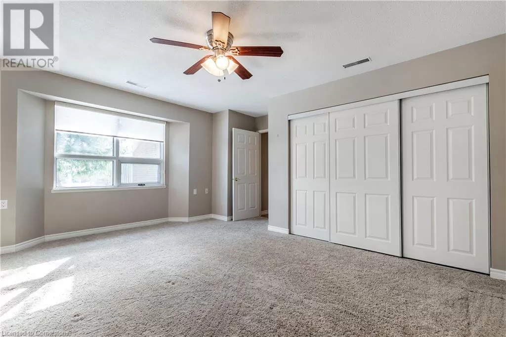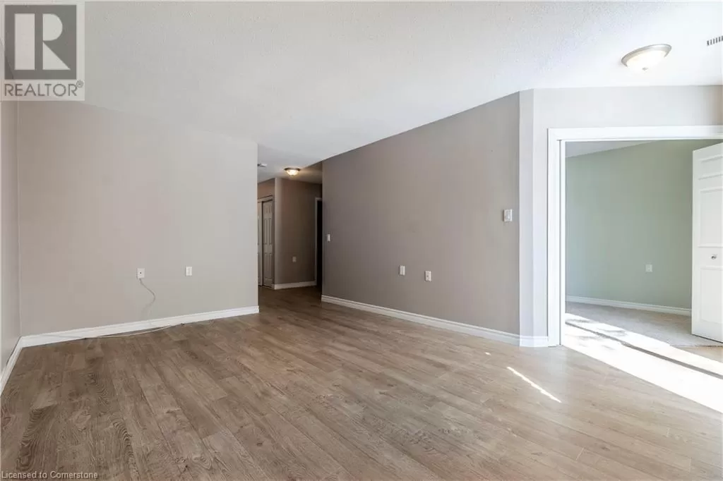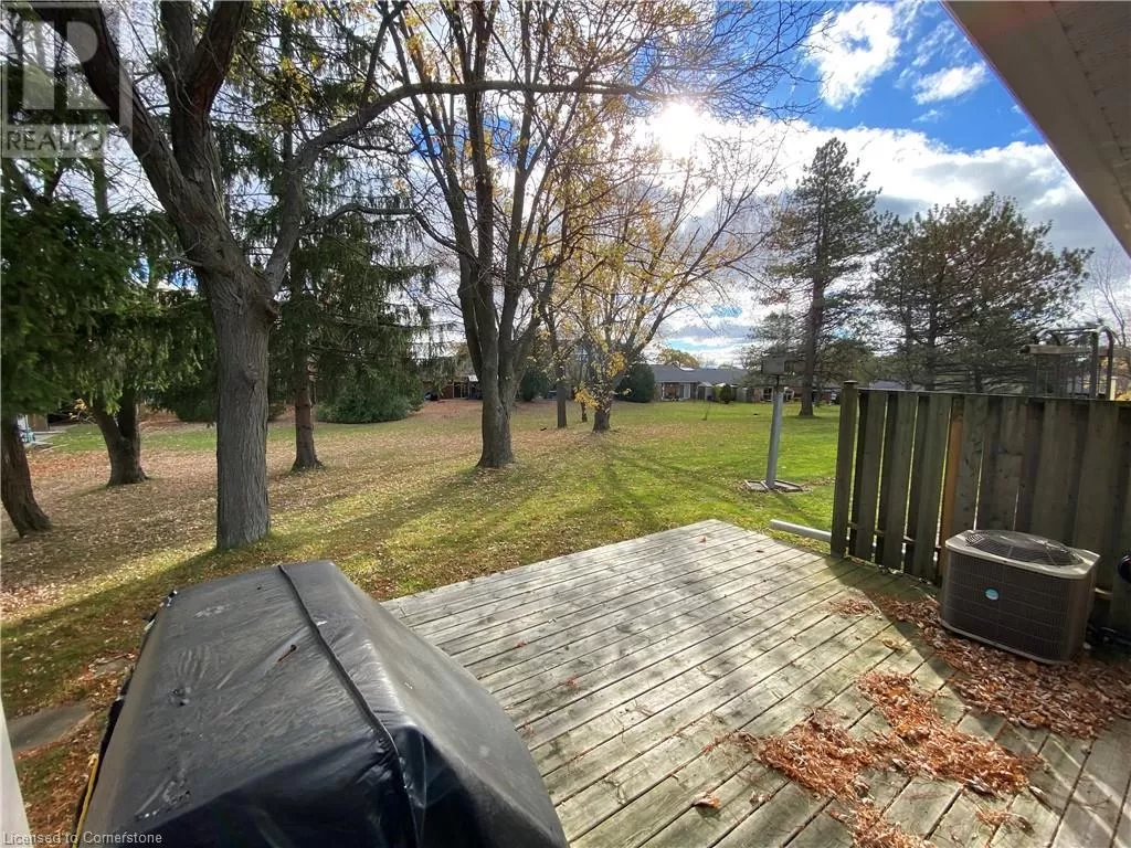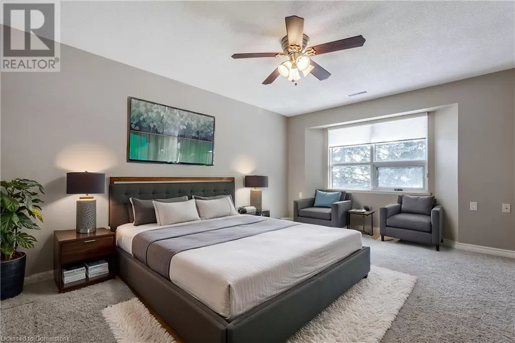 South East Corner of Garth Street & Rymal Road West Welcome to this charming 1,221 sq. ft. bungalow in the sought-after 55+ gated community of St. Elizabeth Village. This 2-bedroom plus den home offers a spacious and versatile layout designed for comfort and ease. The den can be used as an office, sitting area, or additional living space, adapting to your needs. Wake up to the morning sun in the primary bedroom, which features an east-facing window, filling the room with natural light. The bathroom features a step-in tub/shower combo with grab bars for added safety and convenience. Enjoy the peaceful backyard, complete with a deck that overlooks a beautiful green space filled with mature trees, offering a perfect spot for relaxation or entertaining. This home is ideally located close to the clubhouse, where you can take part in social activities and events. The nearby health club offers excellent amenities, including a gym, movement room, indoor heated pool, saunas, hot tub, and golf simulator. With its ideal location, thoughtful layout, and beautiful outdoor space, this home provides both comfort and community living. Donât miss your opportunity to make it yours! Property taxes, water, and all exterior maintenance are included in the monthly fees. (id:27476)