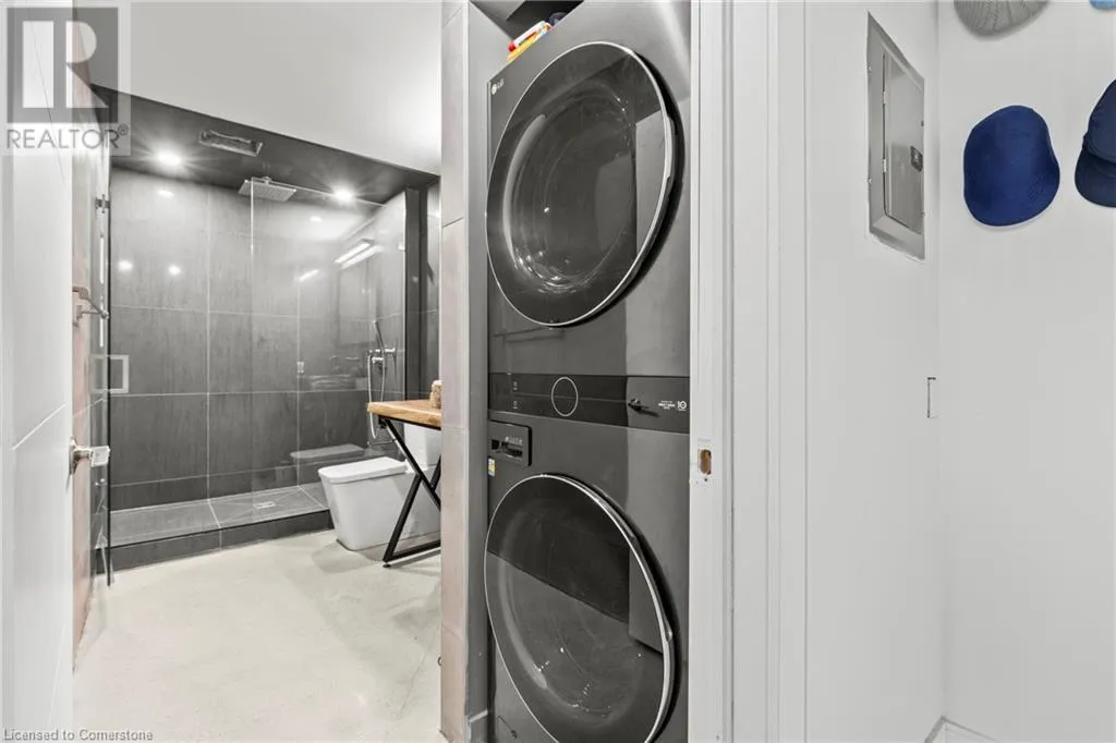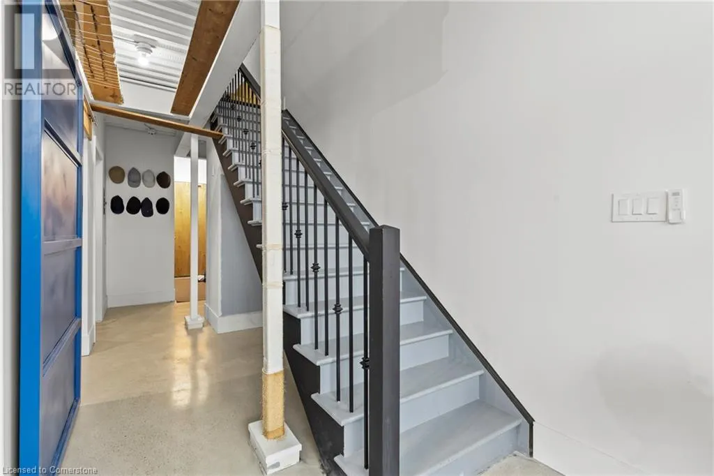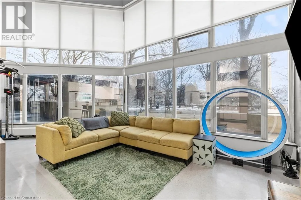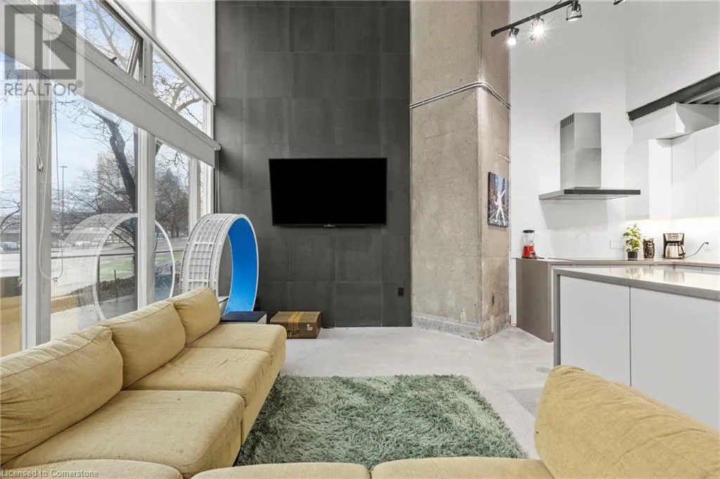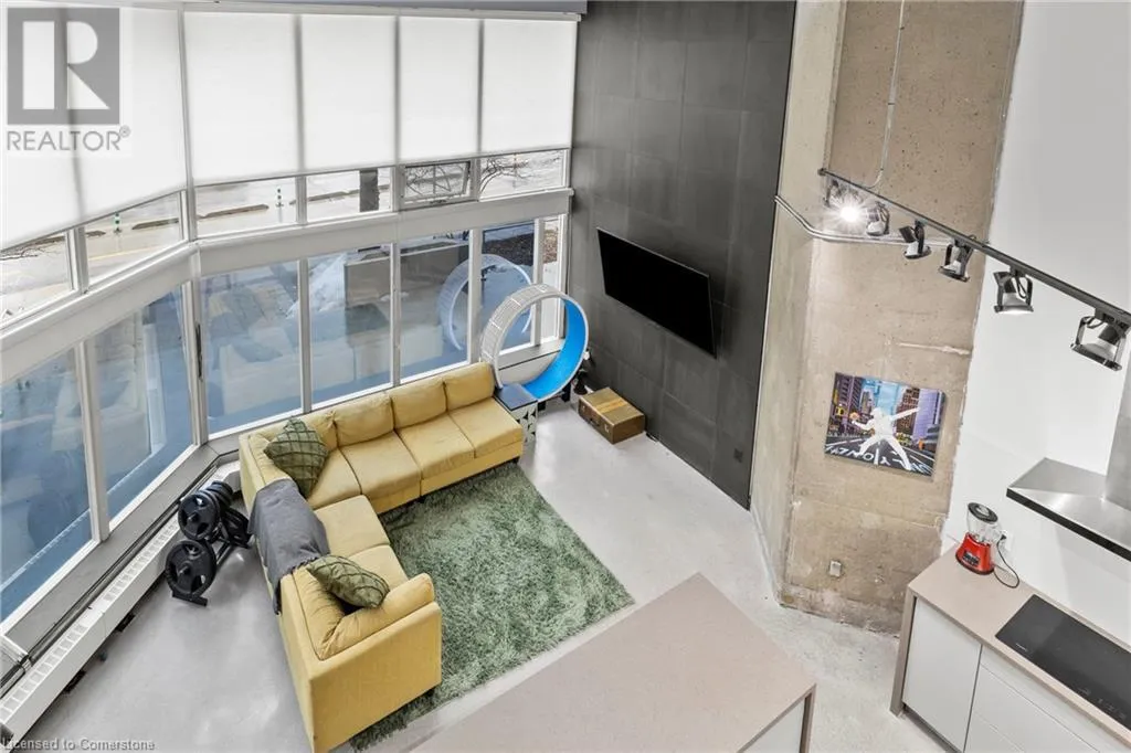Fronts Bay Street South located at the south west corner of Bay Street South and Jackson Street A Truly Unique Loft Experience! Originally a communications building, The Core Lofts were transformed in 2005 into one-of-a-kind residences. This stunning two-story unit retains some of the best industrial features, with soaring 20+ ft ceilings, polished concrete floors, and exposed beams that define its character. Floor-to-ceiling east-facing windows flood the space with natural light, offering breathtaking views of City Hall's green space and morning sunrises. The private second-floor master suite overlooks the living area and includes a walk-in closet and 3-piece ensuite. The main floorâs open-concept design is perfect for entertaining, featuring a second bedroom, 3-piece bathroom, and a sleek kitchen with granite countertops. Over $100,000 in upgrades! Renovated in 2023 Additional highlights include: Radiant heating (with optional forced air for extra warmth) Private underground parkingâno elevators needed! Second-floor locker for extra storage Key fob access to the exercise room, party room, and rooftop terrace with stunning views of downtown, the escarpment, and the waterfront Just minutes from Nations Market, the Art Gallery, public transit, hospitals, the Bayfront, and moreâthis is urban living at its finest! (id:27476)