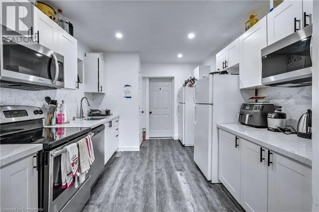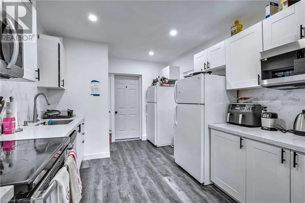 Hwy 403 to Main St West. Turn left on Main, turn right on Haddon, turn left on King West. Excellently located within walking distance to McMaster University, McMaster Hospital, and the iconic Westdale Village shopping and restaurant district, this property offers an incredible opportunity for both investors and families alike. With 8 masterfully laid-out rooms, each renting for between $800 and $990 per month to McMaster students, it promises a solid return on investment. Yes, you read that correctly-8 rooms. This property is fully carpet-free and has been significantly updated, including electrical upgrades in 2023. The basement ceiling height has been increased by lowering the floor and underpinning the foundation. With 3 full bathrooms, an updated kitchen, new floors and doors, and a spacious living and dining area, this home offers comfort and convenience. The main floor also features a laundry area. Over the past 2 years, approximately $90K has been spent on renovations, ensuring the property is in excellent condition. The listed square footage of 1,021 sqft is the actual above-grade area, plus an additional 375 sqft in the finished basement. Whether you're looking for a smart investment or a wonderful family home, this property can serve both purposes. Investors will appreciate the rental potential, while families will enjoy the spacious living areas and prime location. Investors and homeowners alike, this is a rare opportunity-schedule a showing with 24 hours' notice and see for yourself the potential this property has to offer. (id:27476)