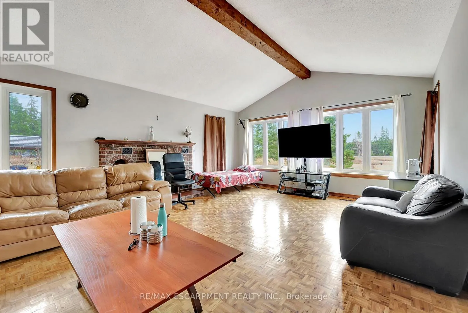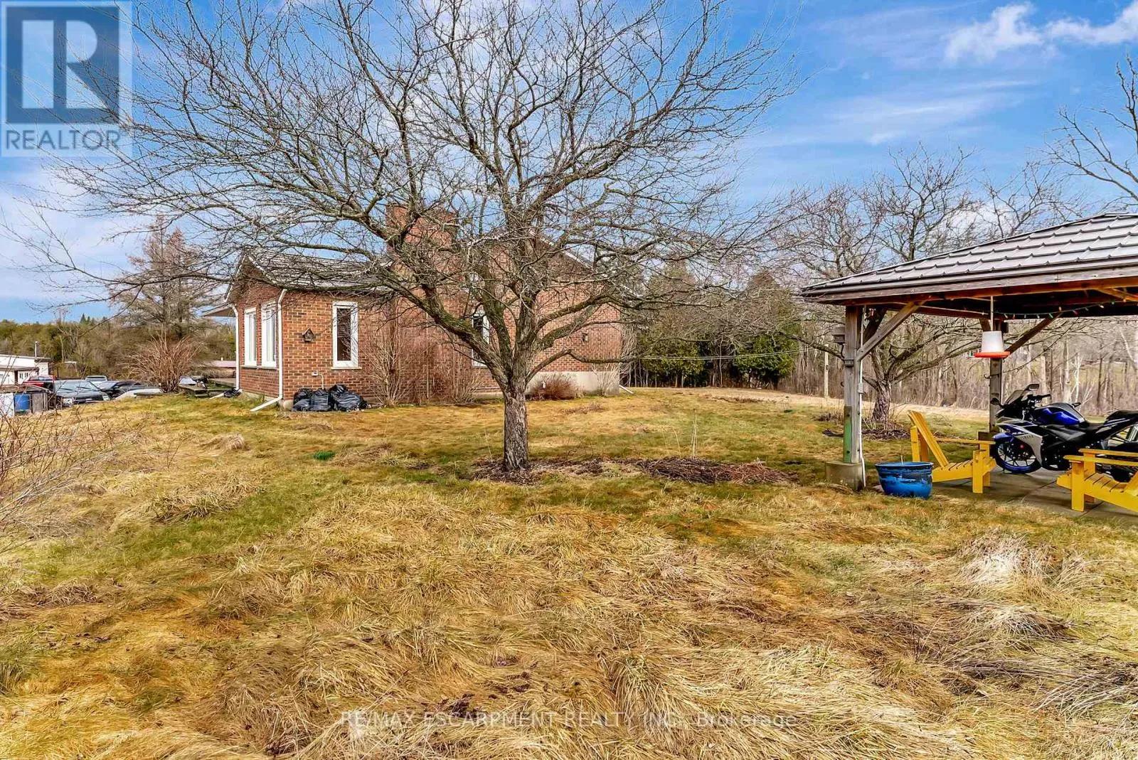 Drive South on Highway 6 from 401 This charming backsplit sits on a spacious 3.13-acre lot with two driveways and easy access to Hwy 401, ideal for commuters or anyone wanting a bit more space without losing convenience. The home features 3 bedrooms and 3 bathrooms, offering plenty of room for families or guests. The main living area has a vaulted ceiling with exposed wood beams and a wood-burning fireplace, giving it a warm and welcoming feel.The lower level has large windows that let in tons of natural light, plus a walkout to the backyard with beautiful forest views. Its a great space for a rec room, home office, or extra living area. The attached garage is oversized with 9-foot doors and inside entry, perfect for storing your vehicles, tools, or outdoor gear. Outside, youll find a gazebo for enjoying summer days. If you're looking for a home with privacy, space, and easy highway access, this home is for you. (id:27476)