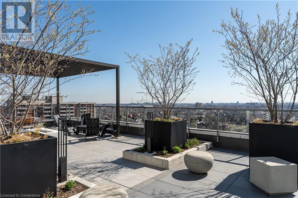 Ferguson to King William Beautiful, newly constructed condominium in walkable downtown Hamilton close to amenities. Fabulous Kings Cross model offers 658 square feet. Open kitchen with white cabinetry, backsplash and stainless steel appliances. Living room with walk out to incredible 100 square foot balcony. Desirable den for home office or entertainment space. Spacious primary bedroom and 4 piece bathroom. In-suite laundry, stainless steel appliances and owned locker for storage. Building amenities include roof top patio for entertaining and BBQ, party room, gym and a concierge. Freshly painted and ready to move in! You will love the spectacular roof top views! (id:27476)