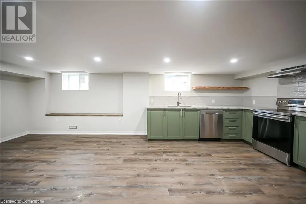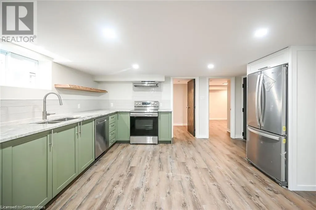 North of Barton st, off Parkdale ave N Stunning 2-Bedroom, 1 Bathroom Lower Level Unit with Ensuite Laundry & Parking! Discover the perfect blend of modern and rustic charm in this beautifully renovated 2-bedroom, 1 four-piece bathroom lower level unit. (just short of 7ft ceiling height) Conveniently located just minutes away from the highway, this gem offers both style and convenience. Step into a spacious living area adorned with modern finishes that create a cozy yet sophisticated atmosphere. The open-concept layout seamlessly connects the living, dining, and kitchen areas, making it perfect for entertaining. The well-appointed four-piece bathroom exudes elegance and functionality, while the en suite laundry adds a touch of convenience to your daily routine. Embrace the rustic charm of exposed brick walls, balanced perfectly with sleek, contemporary design elements. This unique combination creates an inviting space that you'll be proud to call home. Never worry about parking with your very own designated spot, ensuring hassle-free access to your unit. Plus, loads of street parking. Don't miss out on this incredible opportunity! Available June 1st (id:27476)