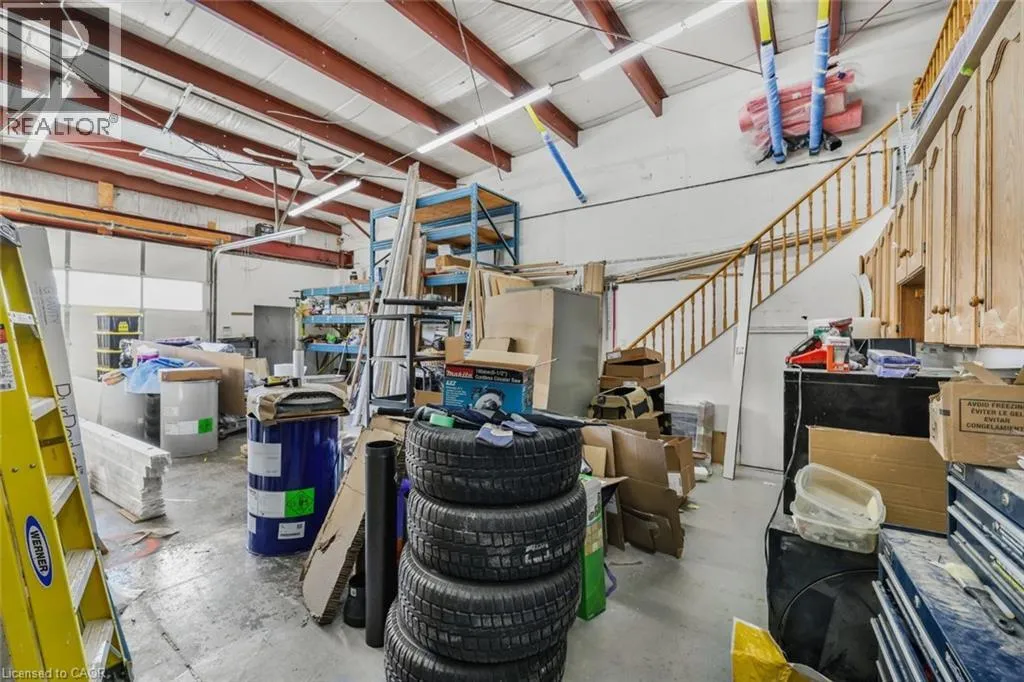 Bigwin Rd to Stone Church Rd E & Pritchard Rd This M3-zoned commercial unit seamlessly blends modern office space with a spacious industrial area, making it ideal for a wide range of uses. The office area is equipped with a 2-piece bathroom and a kitchenette for added convenience. The industrial section boasts a large bay door for easy loading and 14-16 foot clearance. Additionally, a mezzanine offers valuable extra storage space, not included in the listed square footage. The property offers quick access to the Red Hill Parkway and Alexander Parkway, ensuring excellent connectivity. (id:27476)