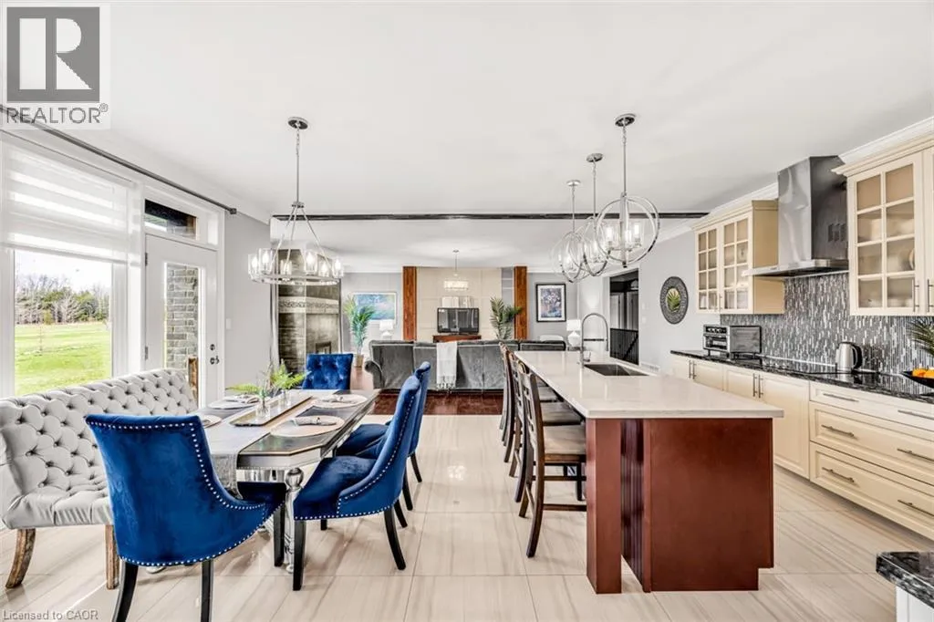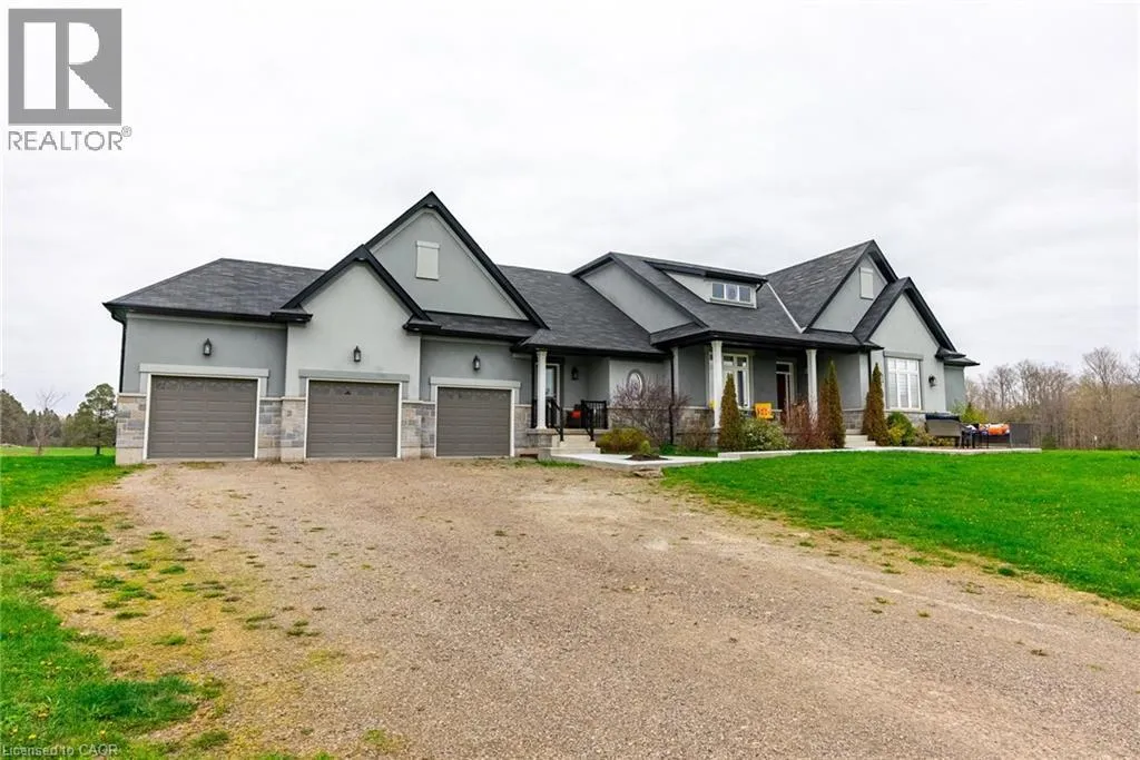 Hwy6 to Campbellville Rd to Chesswood Trail. Welcome to this stunning 3000-square-foot home, with the potential to finish an additional 3000-square-feet on the lower level, perfectly situated on a peaceful dead-end street and surrounded by equally exquisite homes. Step into the impressive foyer where the quality of craftsmanship is immediately evident. To your left, a generous formal dining room sets the tone for elegant entertaining, while straight ahead, a sprawling living room centered around a cozy propane fireplace flows seamlessly into the show-stopping open-concept kitchen. On the south side of the home are two bedrooms, including a guest bedroom with access to a private 3-piece bathroom and the luxurious primary suite featuring a spa-inspired 5-piece ensuite and a spacious walk-in closet. The north wing of the home offers thoughtful convenience with a secondary entrance, a walk-in pantry and a well-equipped main floor laundry room with direct access to the oversized 3-car garage. Further along, you'll find two generously sized bedrooms and a beautifully finished 5-piece bathroom. The finished staircase leads to a completed landing that opens into an expansive, unfinished basement. Here, you'll notice the impressive features already in place, including a state-of-the-art geothermal heating and cooling system, a water filtration system and large windows that flood the space with natural light. Stepping outside, you'll find a gravel driveway and a welcoming walkway that enhance the homeâs curb appeal, while the expansive 3.554-acre lot is ready for your personal touch. This incredible bungalow is sure to impress! Donât be TOO LATE*! *REG TM. RSA. (id:27476)