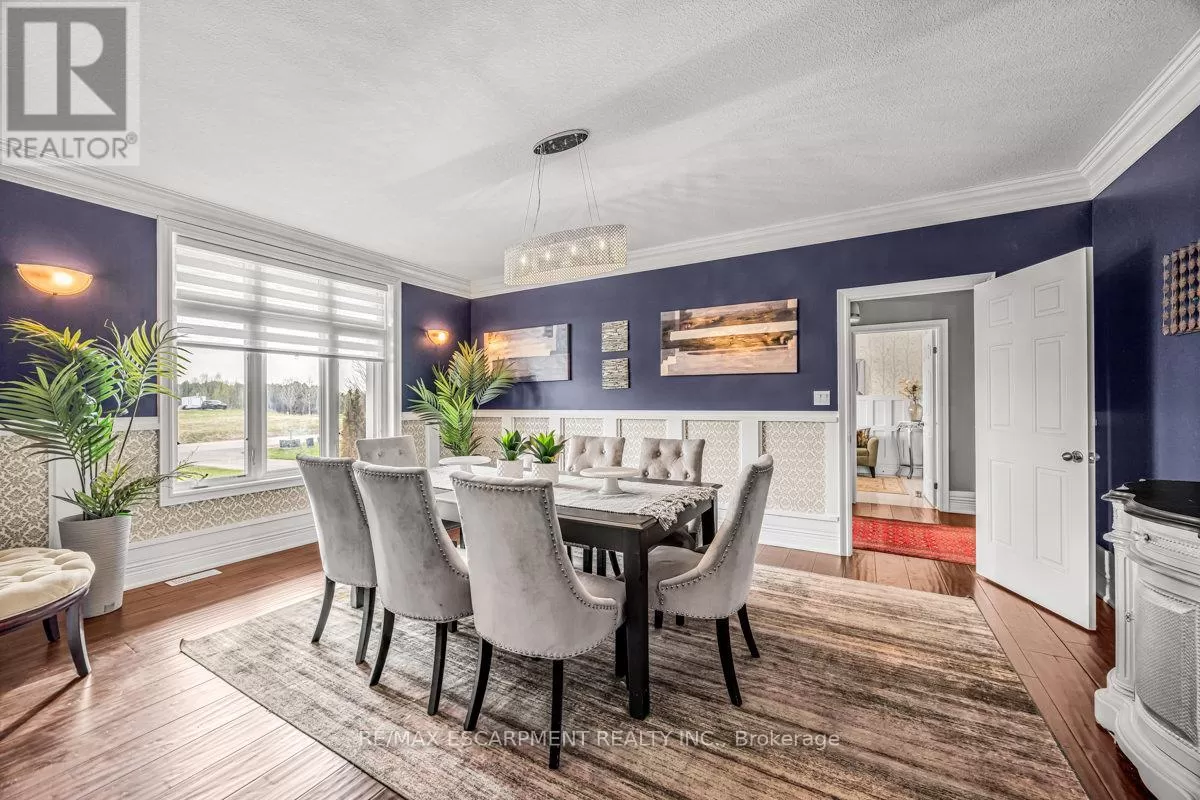 Hwy 6 to Campbellville Rd to Chesswood Trail Welcome to this stunning 3000-square-foot home, with the potential to finish an additional 3000-square-feet on the lower level, perfectly situated on a peaceful dead-end street and surrounded by equally exquisite homes. Step into the impressive foyer where the quality of craftsmanship is immediately evident. To your left, a generous formal dining room sets the tone for elegant entertaining, while straight ahead, a sprawling living room centered around a cozy propane fireplace flows seamlessly into the show-stopping open-concept kitchen. On the south side of the home are two bedrooms, including a guest bedroom with access to a private 3-piece bathroom and the luxurious primary suite featuring a spa-inspired 5-piece ensuite and a spacious walk-in closet. The north wing of the home offers thoughtful convenience with a secondary entrance, a walk-in pantry and a well-equipped main floor laundry room with direct access to the oversized 3-car garage. Further along, you'll find two generously sized bedrooms and a beautifully finished 5-piece bathroom. The finished staircase leads to a completed landing that opens into an expansive, unfinished basement. Here, you'll notice the impressive features already in place, including a state-of-the-art geothermal heating and cooling system, a water filtration system and large windows that flood the space with natural light. Stepping outside, you'll find a gravel driveway and a welcoming walkway that enhance the homes curb appeal, while the expansive 3.554-acre lot is ready for your personal touch. This incredible bungalow is sure to impress! RSA. (id:27476)