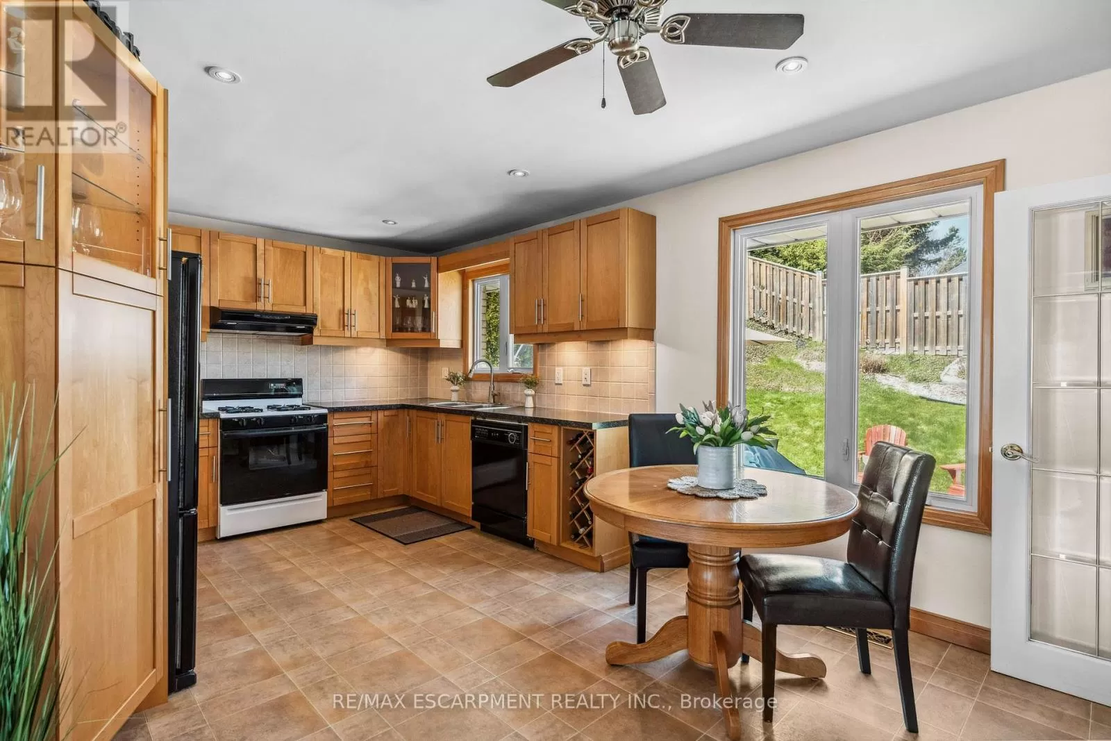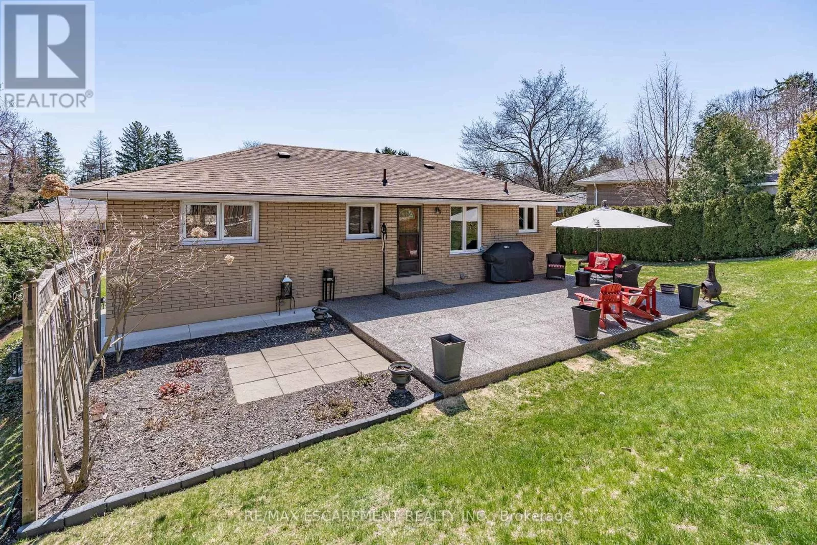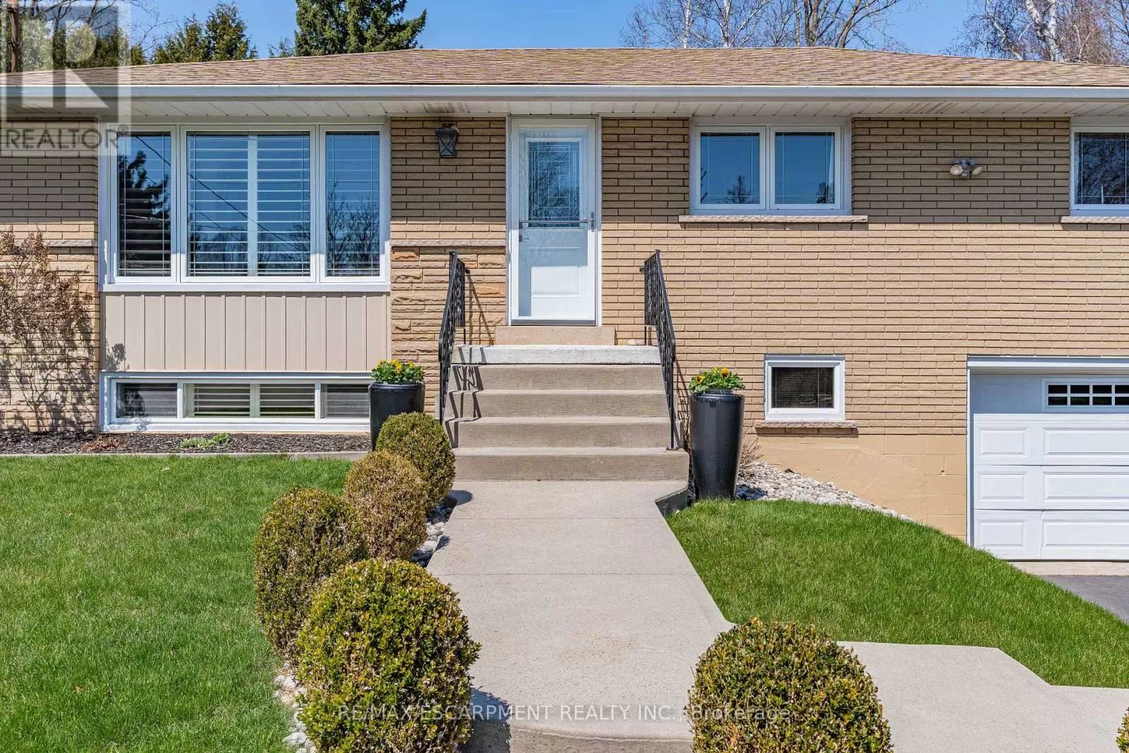 Clarendon to Hill Crest Lovely & well maintained 3 bdrm, 2 full bath all brick family home in the core of Ancaster with access to trails, shops, restaurants, public transportation and Hwy access. This lovingly maintained raised bungalow has been updated with refinished hardwood floors in the living room & bedrooms, maple cabinets in the kitchen, 4pc main bath, 3pc lower bath, furnace, A/C, HWT, roof & windows. The lower level features an inviting family room with generous windows & natural light, a newer 3 pc bath, laundry area, plenty of storage and a convenient mud room with inside entry from the garage. The backyard is accessible from the kitchen area and features a poured aggregate sealed patio for relaxing & entertaining, privacy fence, spacious garden area & shed. Private & sought after cul-de-sac location within walking distance to Tennis club, Library, Arts Centre, restaurants, caffe's and so much more. (id:27476)