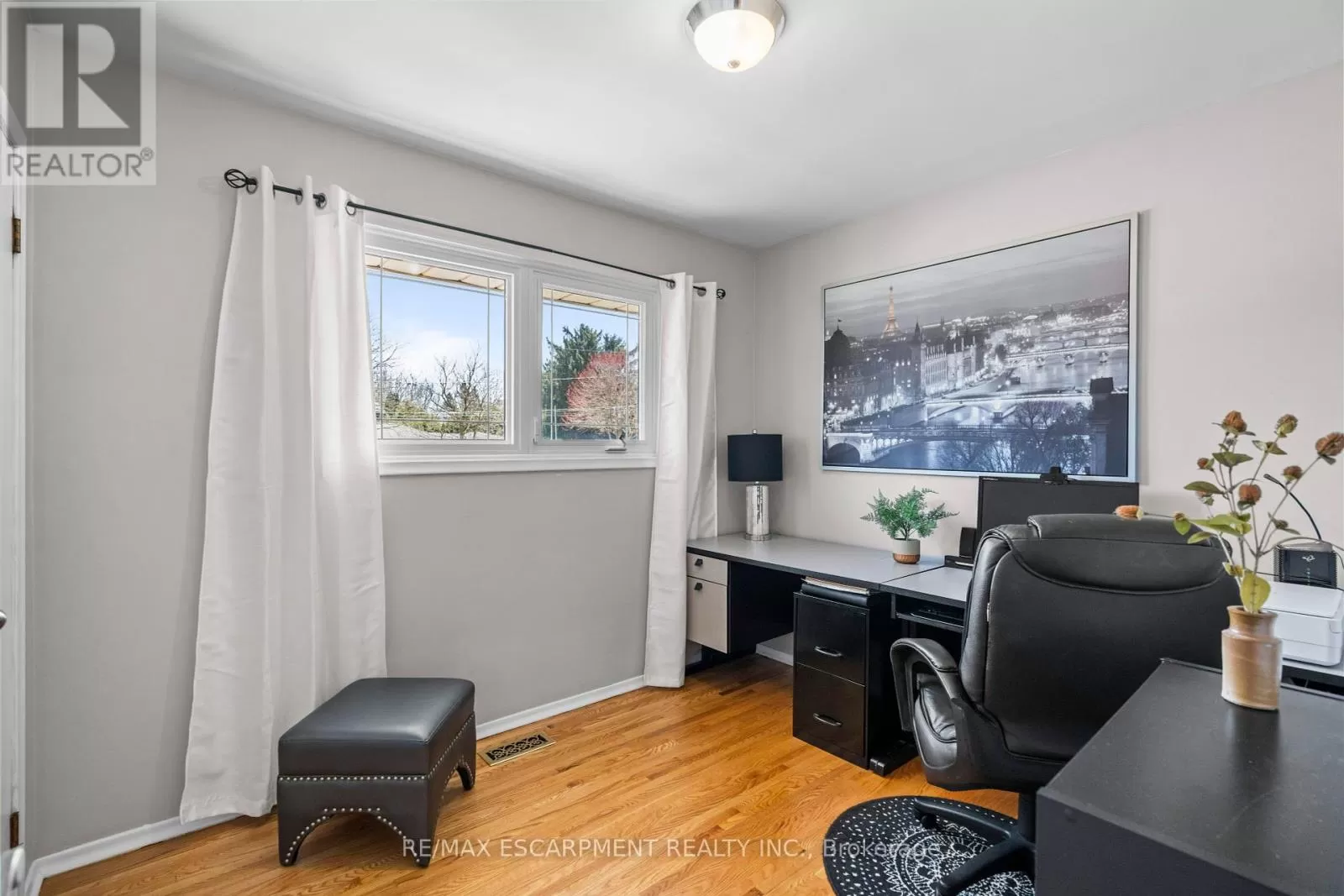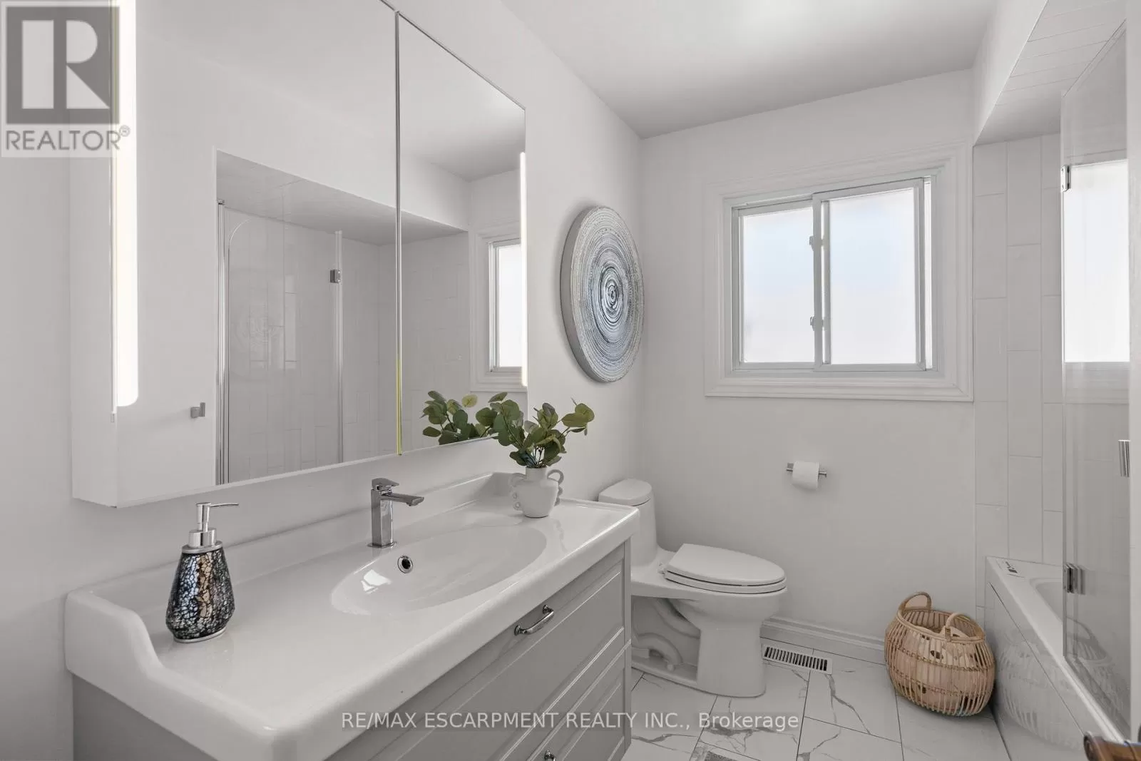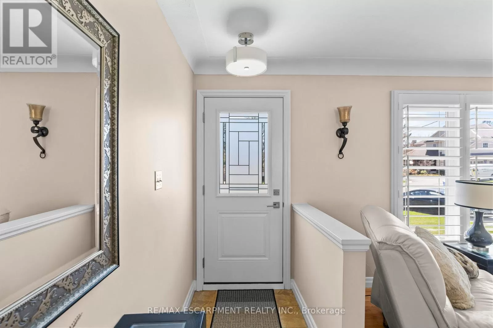 Clarendon to Hill Crest Lovely & well maintained 3 bdrm, 2 full bath all brick family home in the core of Ancaster with access to trails, shops, restaurants, public transportation and Hwy access. This lovingly maintained raised bungalow has been updated with refinished hardwood floors in the living room & bedrooms, maple cabinets in the kitchen, 4pc main bath, 3pc lower bath, furnace, A/C, HWT, roof & windows. The lower level features an inviting family room with generous windows & natural light, a newer 3 pc bath, laundry area, plenty of storage and a convenient mud room with inside entry from the garage. The backyard is accessible from the kitchen area and features a poured aggregate sealed patio for relaxing & entertaining, privacy fence, spacious garden area & shed. Private & sought after cul-de-sac location within walking distance to Tennis club, Library, Arts Centre, restaurants, caffe's and so much more. (id:27476)