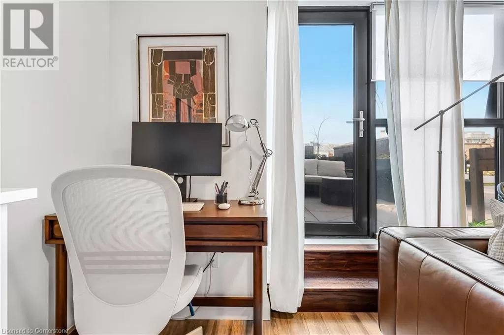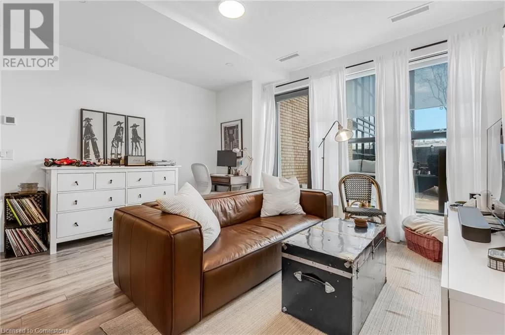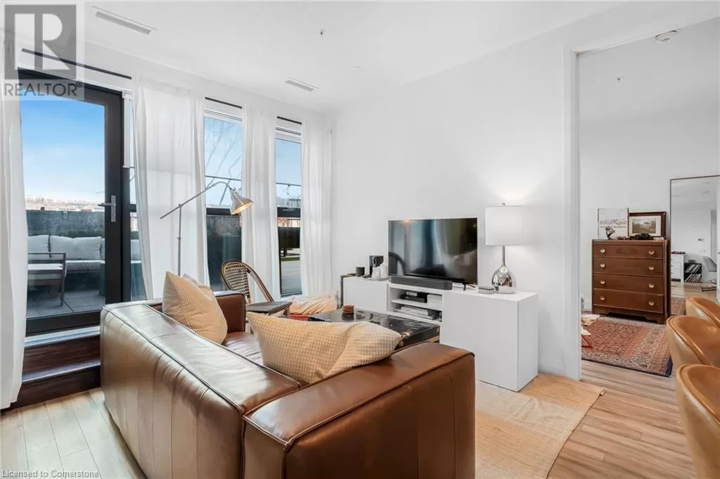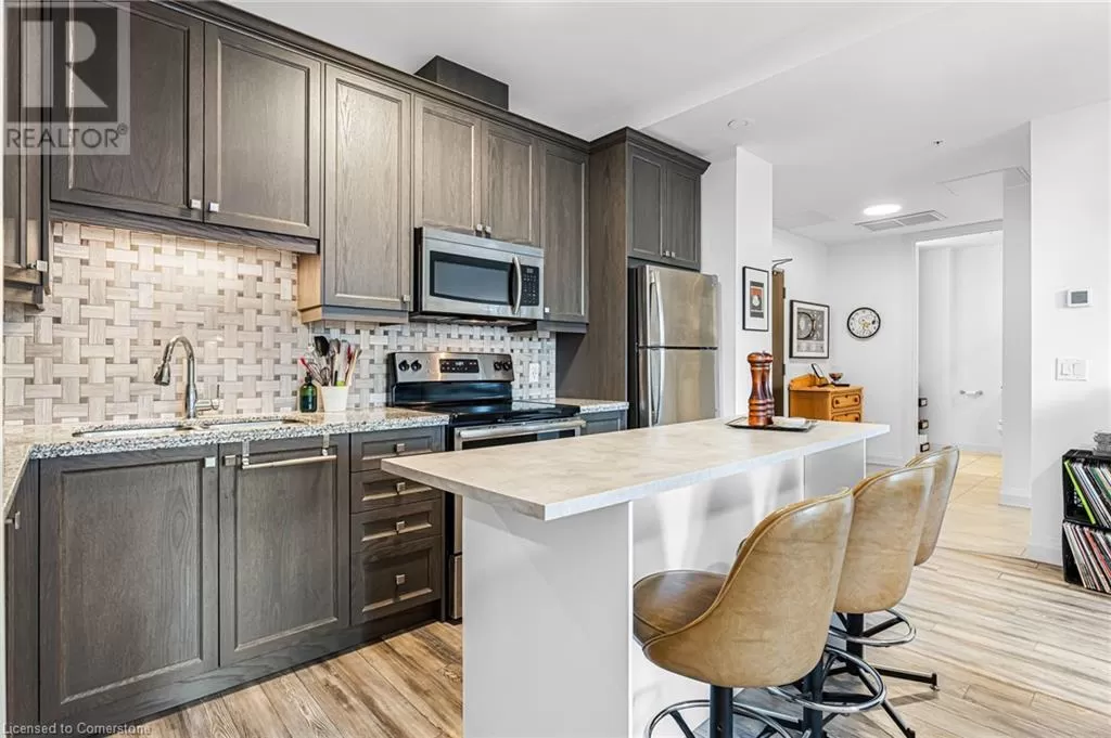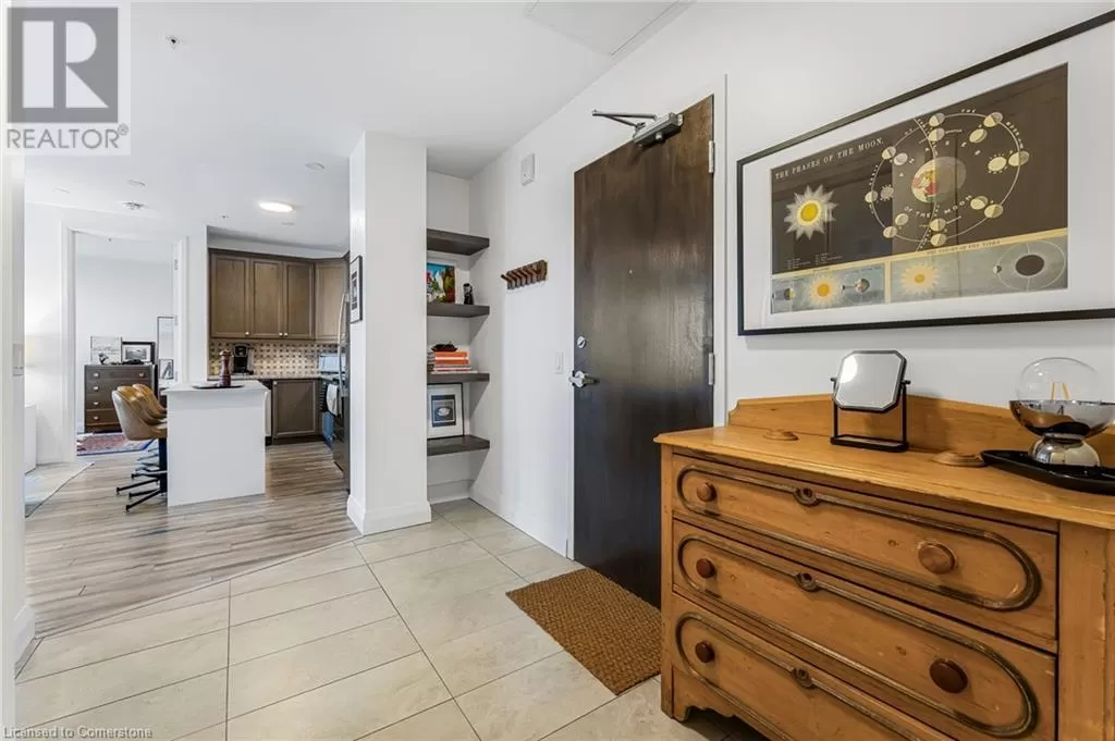 King Street East between Catherine and John Step out onto your private walk-out patio, one of the few in the entire building, and enjoy a perfect setting for outdoor relaxation or entertaining. This beautifully appointed, south/east-facing one-bedroom suite captures sweeping views of downtown Hamilton and the Escarpment. Inside, the open-concept design showcases a modern kitchen with granite countertops, extended-height cabinetry, and stainless steel appliances. Additional highlights include in-suite laundry, a spacious walk-in closet, one storage locker, and an owned parking spot. Set in the heart of the city, youâre just steps from Gore Park, Starbucks, the GO station, and the lively James Street North sceneâwith Bayfront Park and highway access only minutes away. (id:27476)