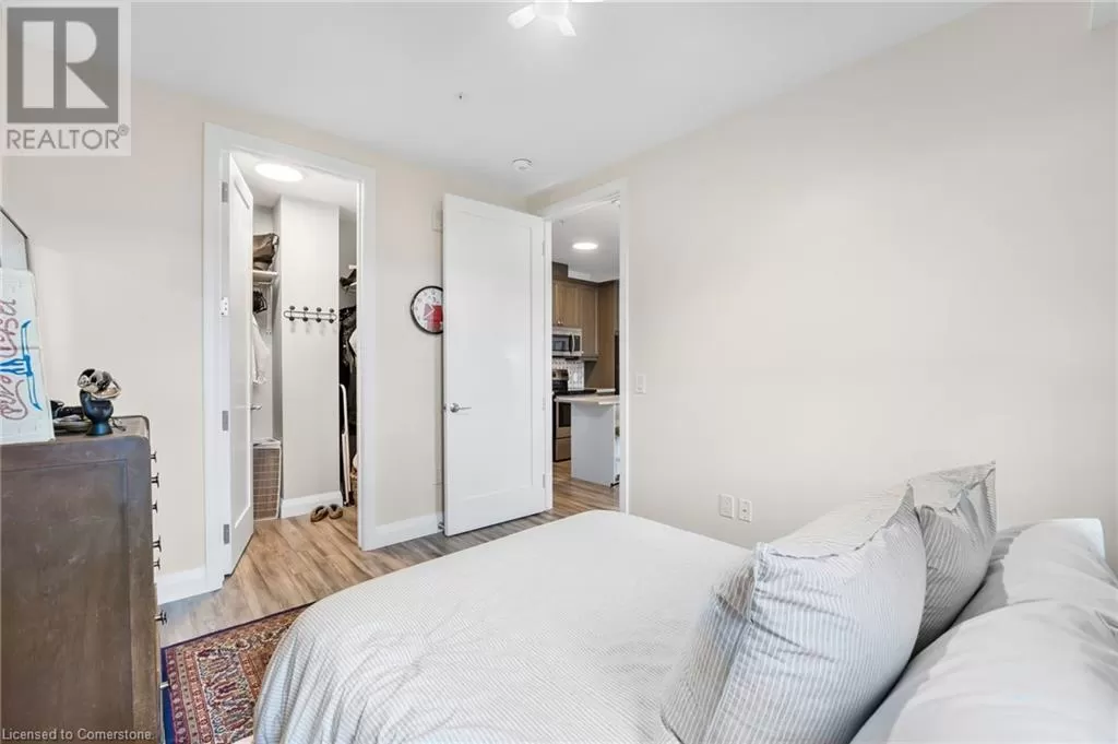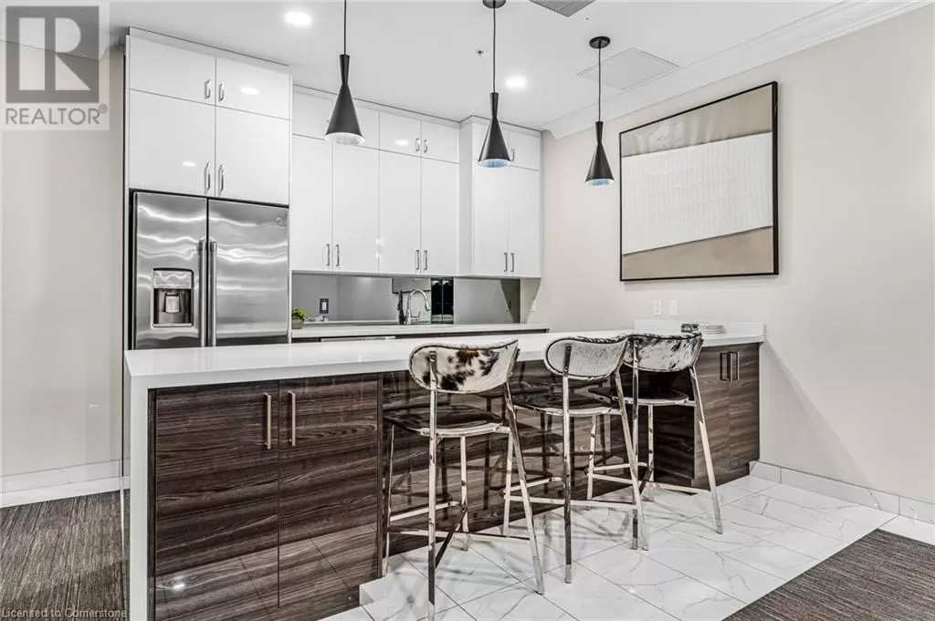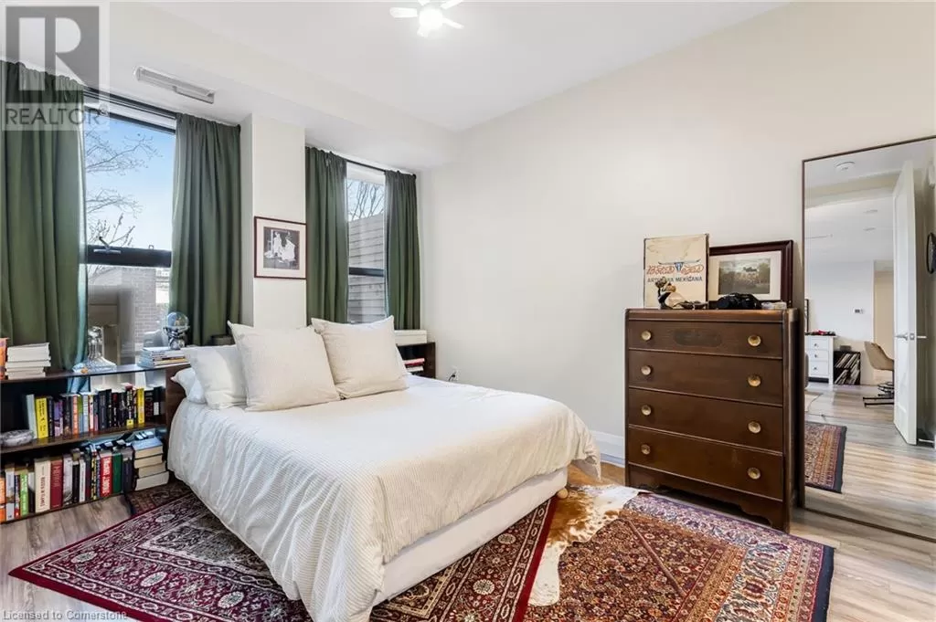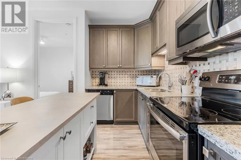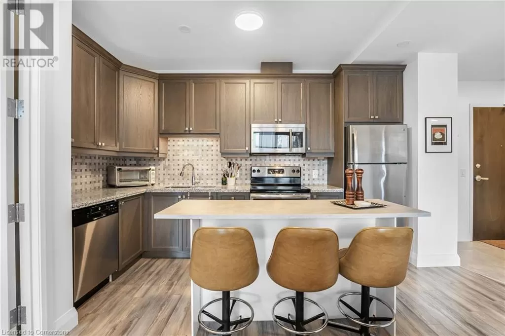 King Street East between Catherine and John Step out onto your private walk-out patio, one of the few in the entire building, and enjoy a perfect setting for outdoor relaxation or entertaining. This beautifully appointed, south/east-facing one-bedroom suite captures sweeping views of downtown Hamilton and the Escarpment. Inside, the open-concept design showcases a modern kitchen with granite countertops, extended-height cabinetry, and stainless steel appliances. Additional highlights include in-suite laundry, a spacious walk-in closet, one storage locker, and an owned parking spot. Set in the heart of the city, youâre just steps from Gore Park, Starbucks, the GO station, and the lively James Street North sceneâwith Bayfront Park and highway access only minutes away. (id:27476)