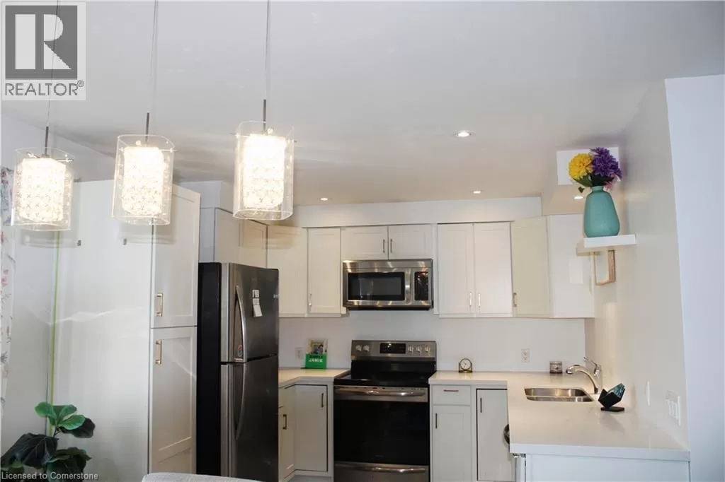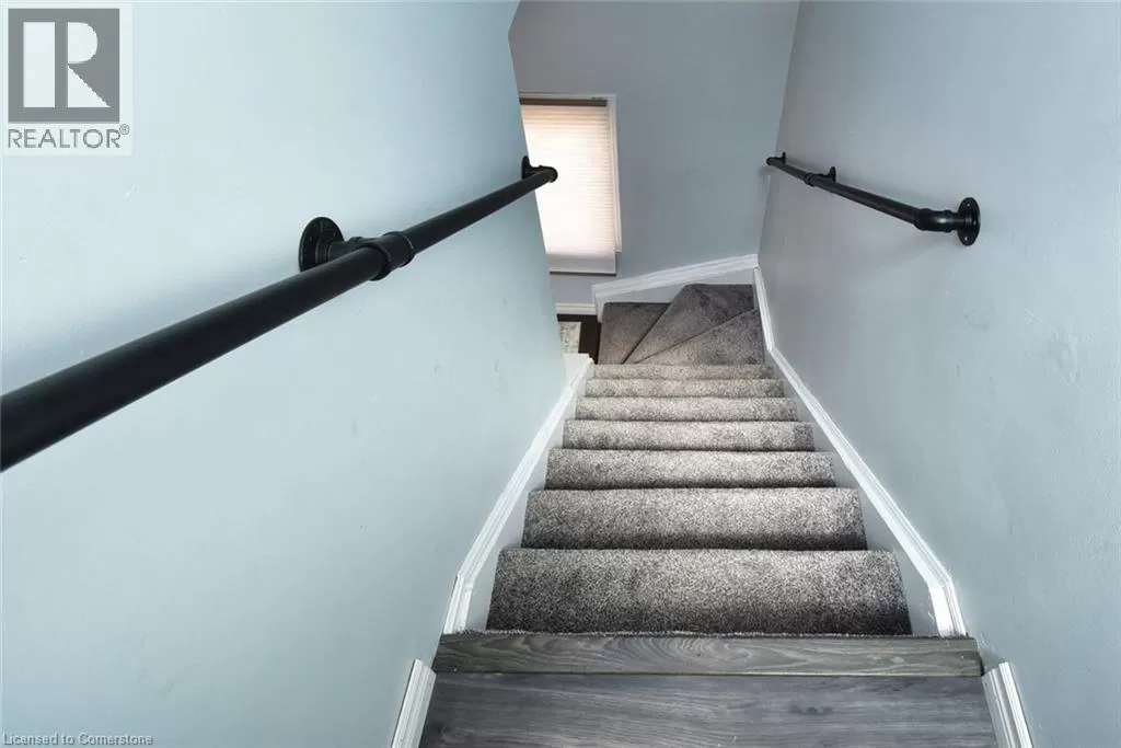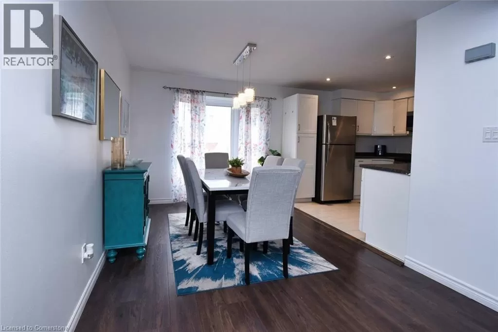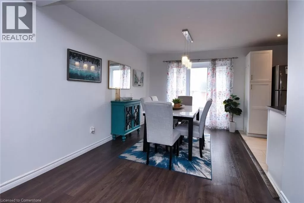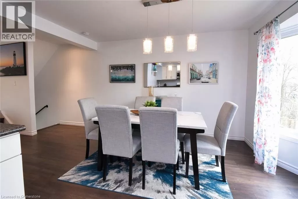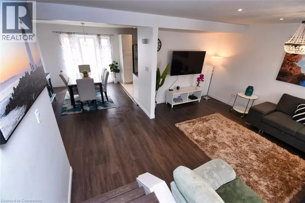 Lincoln Alexander Parkway to Upper Gage exit, South on Upper Gage, on East side of street Welcome to this beautifully updated 3 storey townhome, nestled in the heart of the highly desirable Hamilton mountain area. Offering 1,250 sqft of stylish and functional living space, this home perfectly blends comfort, convenience, and contemporary charm. Step inside to discover a freshly painted interior accented with gleaming floors, new light fixtures (2025), pot lights, and elegant modern finishes throughout. The bright and inviting main level features a convenient powder room and a spacious living area ideal for entertaining with a walkout leading to a spacious fenced in yard, perfect for gardening or simply relaxing. The second floor offers an open concept living area, with an eat in kitchen... A chefs dream with sleek cabinetry, brand new quartz countertops (August 2025), modern appliances and ample counter space. Upstairs, you will find generously sized bedrooms filled with natural light, including a customized walk in closet in the master bedroom. This move in ready home truly has it all. Close to schools, parks and all essential amenities. Adjacent to the Lincoln Alexander Parkway for effortless commuting, and public transit. Donât miss out on this gem! (id:27476)