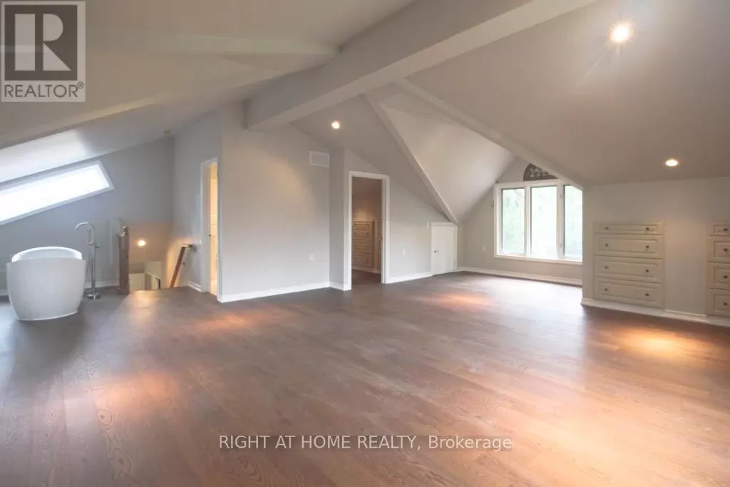 Cross Streets: Churchill Ave. ** Directions: The property is at the end of wellington street. Rare custom-built home with recent renovations, situated on nearly 5.77 acres of private forested land in Waterdown, at the end of a private road. The open-concept interior features a countryside-style kitchen with modern countertops, vaulted ceilings, skylights, and a formal dining room with views of the Grindstone Creek. The living room includes a cozy gas fireplace, and the main floor has two bedrooms sharing a 3-piece bath, plus a laundry room with newer appliances. The spacious master suite on the second floor offers privacy and stunning forest views, with a romantic tub and large 3-piece bath. The finished basement boasts a huge recreation room, full bath, and two separate walk-out entrances to the forest. Ample parking for up to 10 cars, a newer attached two-car garage, and walking distance to schools, parks, shops, and dining make this a perfect blend of seclusion and convenience. zoning is R1-6(H), CM. (id:27476)