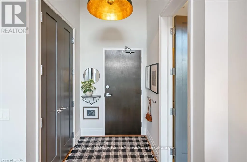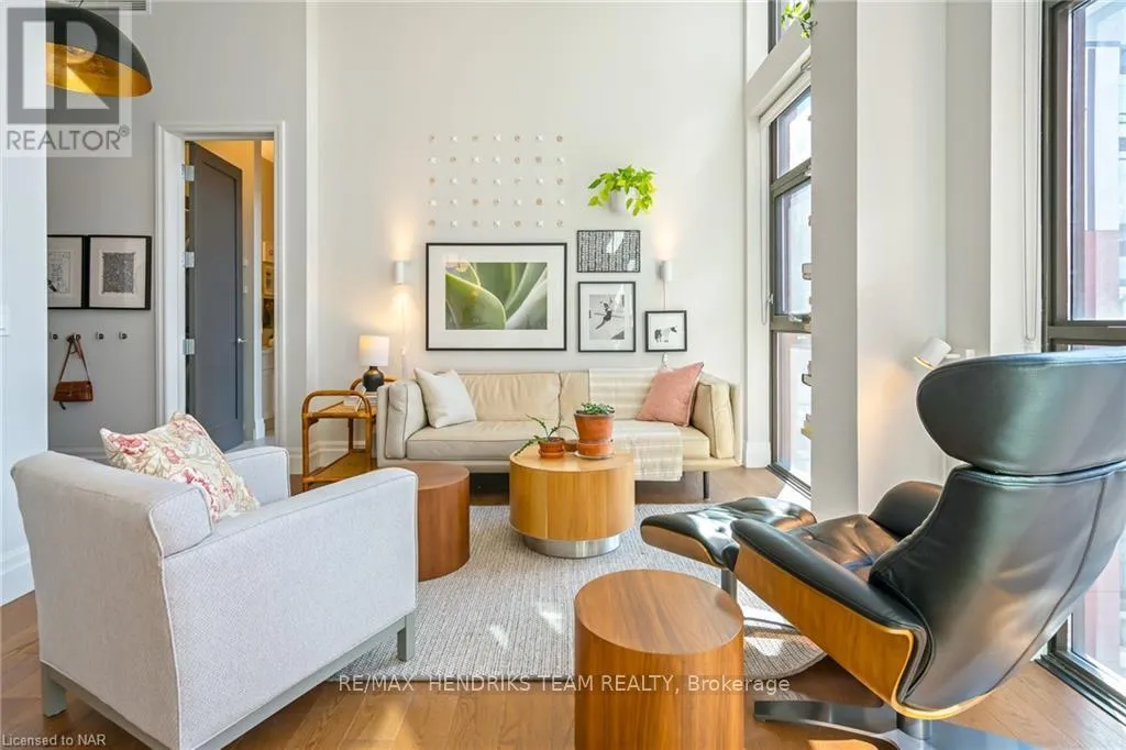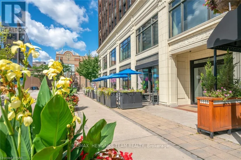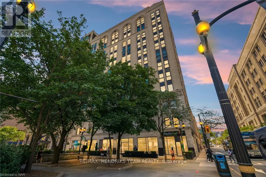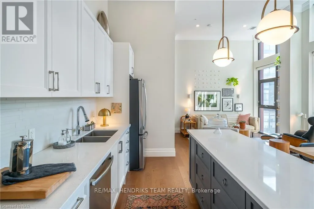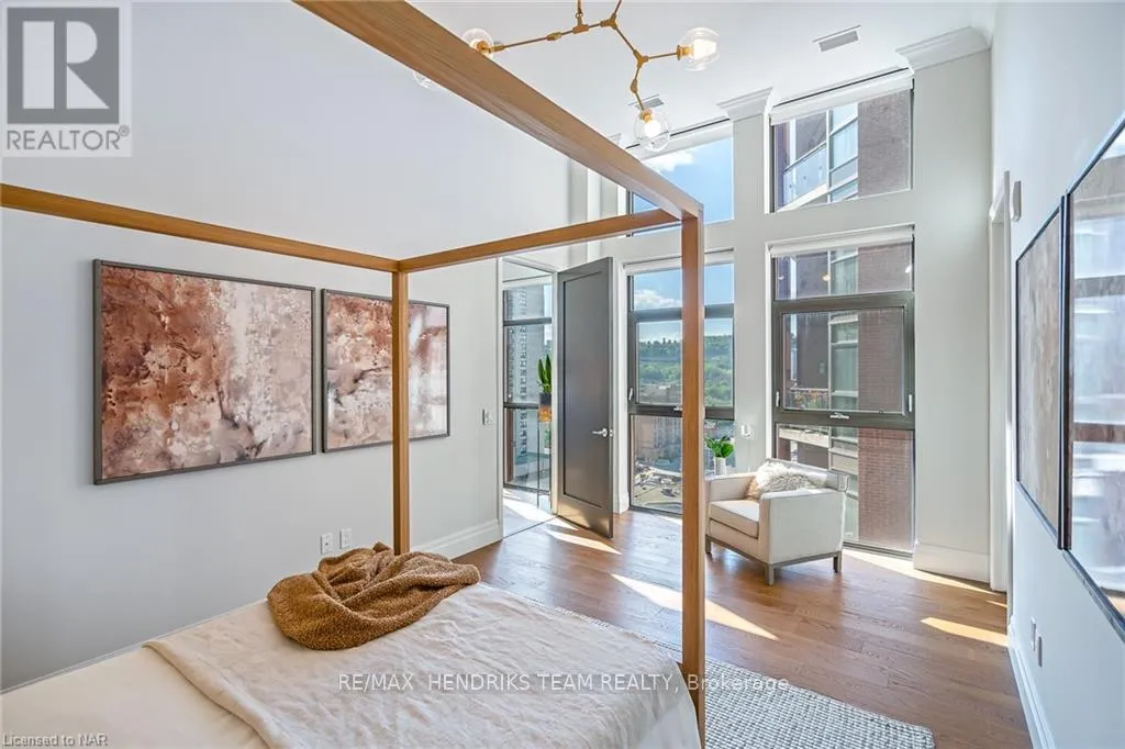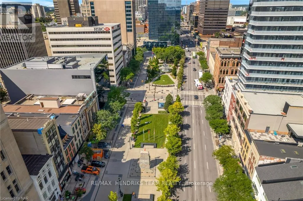 King Street and Catharine Street The best condo deal in all of Hamilton! Gorgeous Lower Penthouse unit - 2 bed, 2 bath and over 1,000 square feet! Situated in the heart of downtown at the residences of the Royal Connaught. Live where the new action in town is with cafe and dining options at your doorstep and around the corner from vibrant nightlife and great shopping. Convenient to transit, highway access, hospitals, and quick commutes to McMaster University and Mohawk College. Huge impressive front lobby with reception and lounge plus separate elevators for condos in the 112 King complex. This fabulous open concept design condo with extra high ceilings throughout make this Lower Penthouse unit really stand out - while tons of natural light shines in! A perfect space for quiet evenings to relax or for Saturday night entertaining. Features beautiful hardwood and tile flooring, floor-to-ceiling windows with Juliet balcony, upgraded light fixtures, built-in dining seating along with many high quality touches at every turn. Awesome kitchen with quartz counters, lots of cabinetry, beautiful high-end appliances and a long centre island/peninsula. Fall in love at first sight upon stepping into the primary bedroom with its soaring ceilings, gorgeous 3 piece ensuite with large shower plus walk-in closet. The second bedroom is its own perfect retreat with convenient access thru the semi-ensuite 4 piece bath that also includes a stackable washer and dryer. This unit includes two storage lockers - one on your floor and one by your underground parking space. The building offers a wonderful array of amenities and amazing architecture at this beautifully converted iconic hotel. Full gym, movie theatre, party room, rooftop terrace with lounge areas and BBQs. Stunning grand lobby that is sure to impress your guests and make you feel welcomed home everyday! Feel confident and at ease with the 24 hour onsite concierge security. Incredible Value! (id:27476)