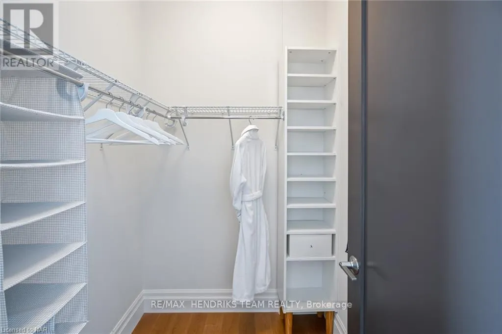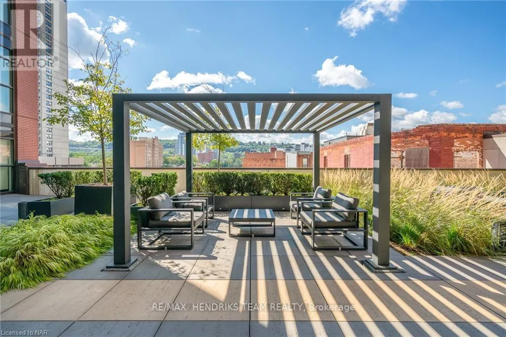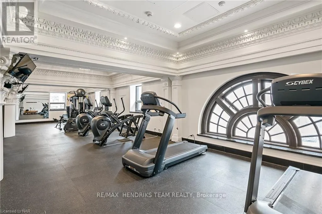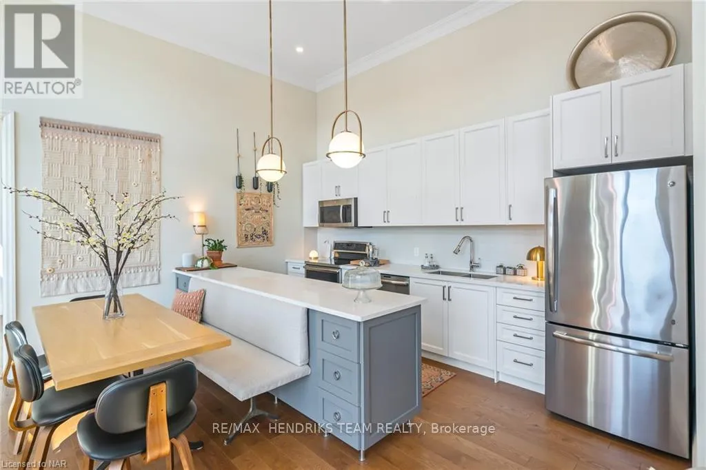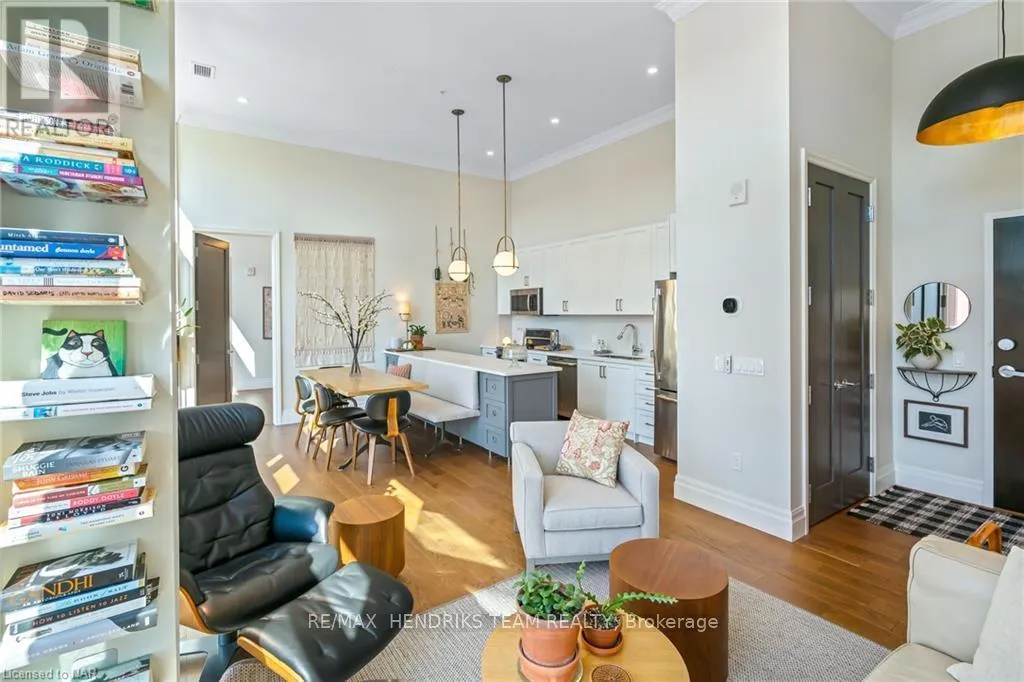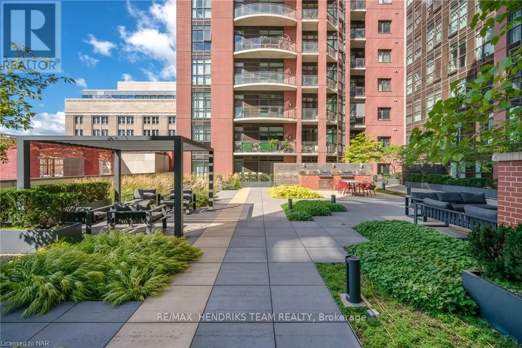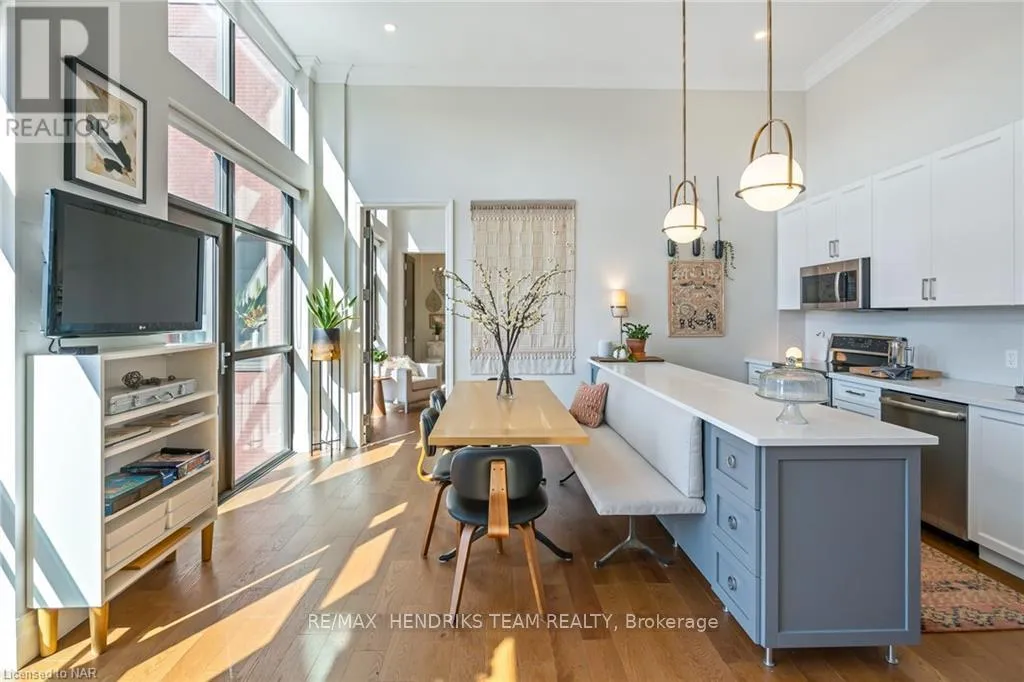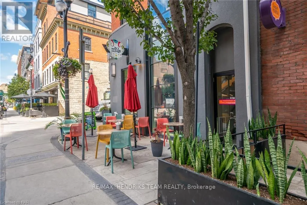 King Street and Catharine Street The best condo deal in all of Hamilton! Gorgeous Lower Penthouse unit - 2 bed, 2 bath and over 1,000 square feet! Situated in the heart of downtown at the residences of the Royal Connaught. Live where the new action in town is with cafe and dining options at your doorstep and around the corner from vibrant nightlife and great shopping. Convenient to transit, highway access, hospitals, and quick commutes to McMaster University and Mohawk College. Huge impressive front lobby with reception and lounge plus separate elevators for condos in the 112 King complex. This fabulous open concept design condo with extra high ceilings throughout make this Lower Penthouse unit really stand out - while tons of natural light shines in! A perfect space for quiet evenings to relax or for Saturday night entertaining. Features beautiful hardwood and tile flooring, floor-to-ceiling windows with Juliet balcony, upgraded light fixtures, built-in dining seating along with many high quality touches at every turn. Awesome kitchen with quartz counters, lots of cabinetry, beautiful high-end appliances and a long centre island/peninsula. Fall in love at first sight upon stepping into the primary bedroom with its soaring ceilings, gorgeous 3 piece ensuite with large shower plus walk-in closet. The second bedroom is its own perfect retreat with convenient access thru the semi-ensuite 4 piece bath that also includes a stackable washer and dryer. This unit includes two storage lockers - one on your floor and one by your underground parking space. The building offers a wonderful array of amenities and amazing architecture at this beautifully converted iconic hotel. Full gym, movie theatre, party room, rooftop terrace with lounge areas and BBQs. Stunning grand lobby that is sure to impress your guests and make you feel welcomed home everyday! Feel confident and at ease with the 24 hour onsite concierge security. Incredible Value! (id:27476)