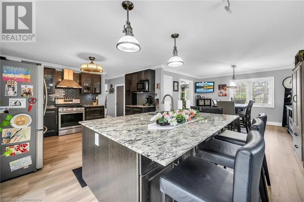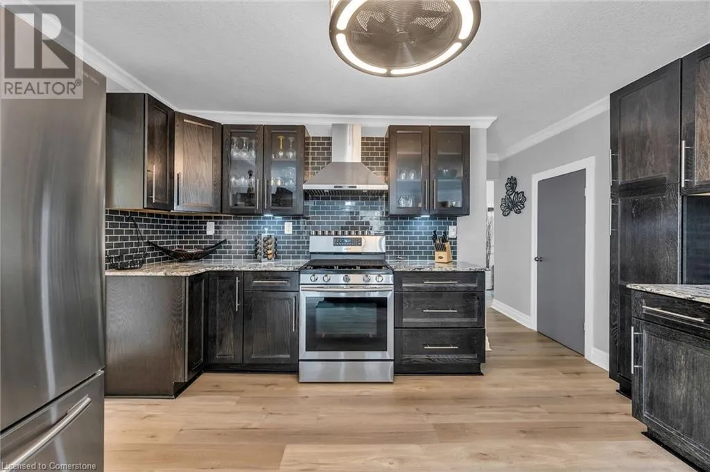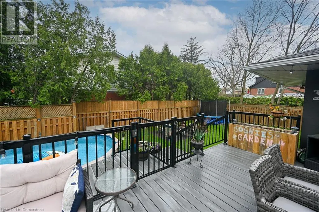 Garth and Sanatorium Rd, on the corner of Brenlyn Crt and Sanatorium Rd Welcome to 205 Sanatorium Rd! Located in the highly sought after Westcliffe family friendly neighbourhood, close to most amenities including nature trails, schools and Mohawk College, shopping (Meadowlands Plaza and Upper James shops), public transit plus a short drive to downtown Hamilton, Go Station and McMaster University, quick access to Linc, 403 and QEW! This home is impressive, sitting on a rare and oversized corner lot with 80 ft frontage, featuring large and well-appointed rooms. As you enter you will find a welcoming foyer leading you to the living room with large picture window and linear fireplace. There is a âchefs dreamâ kitchen, with stainless steel appliances including a gas stove, granite countertops, tons of modern cabinetry and a huge centre island measuring 5â x 7â, this kitchen is not only for cooking but for family and friends to gather! There is a large and bright dining room, two main floor bedrooms, laundry room, a two piece bathroom and a four piece bathroom with walk in shower and free-standing tub. Upstairs you will find two more bedrooms, a perfect teenage retreat or home office! The lower level features a self contained inlaw suite with a modern kitchen, two bedrooms with lots of closet space, three piece bathroom and separate laundry. The rear yard oasis is stunning and is extremely private and peaceful; multi level decks, above ground heated swimming pool, fire pit patio area, newer fencing. Other features and updates include; mature lot with extensive landscaping, newer garden walls and concrete walkways, recently paved driveway to park approximately 5 cars, attached garage, roof approx. 4 yrs, forced air furnace and A/C unit 2 yrs, almost all windows approx. 5 yrs, 200 amp service. BONUS: City approved for a 500 SF main floor addition blueprints available. Donât miss this opportunity to own this beautiful home! (id:27476)